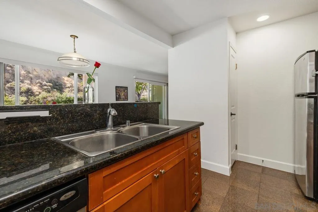 Live the La Jolla lifestyle in this bright, first-floor Villa La Jolla 2B2B home, just minutes from the beach and UCSD. Enjoy the convenience of walking to Trader Joe’s, Whole Foods, restaurants, and transit. Inside, you’ll find a thoughtfully updated space with granite countertops, stainless steel appliances, crown molding, and a newer heater. Both bedrooms facing to quiet courtyard—perfect for rest and privacy. Step outside the large family room to your spacious private patio surrounded by lush greenery—ideal for morning coffee or evening unwinding. The community offers a pool, spa, fitness center, clubhouse, BBQ and more, with water included in HOA. Laundry facility is right around the corner, possible installation of in suite laundry machine per HOA approval. Move-in ready and perfectly positioned—this is easy coastal living at its best.