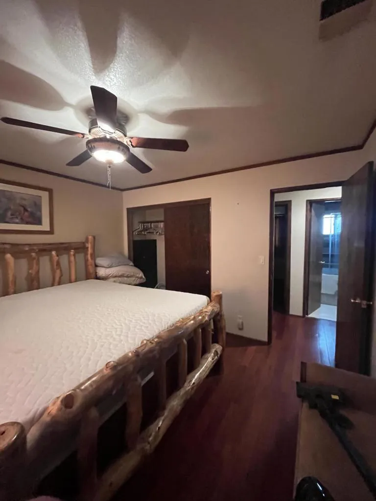 3 Bedroom 2 Ba house plus a helper unit 1 Bedroom 1Ba apartment with fireplace above the garage. Great for rental fully furnished upstairs. Over a two car garage. Two stories fireplace upstairs and down stairs near ski slopes and Lake . Plus room to park Rv. Main house has deck large yard with surrounded beautiful tall pine trees2 bedroom 1 ba located on second floor and bedroom one bath down stairs must see close to ski slopes and lake.