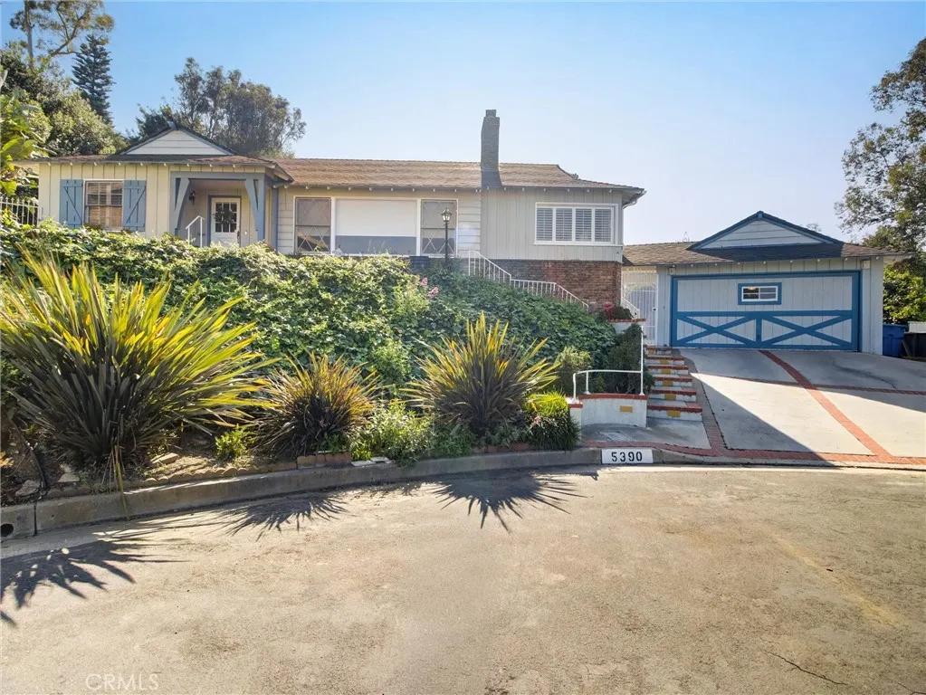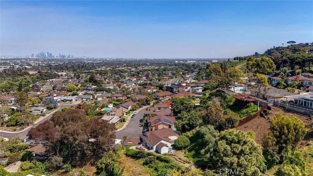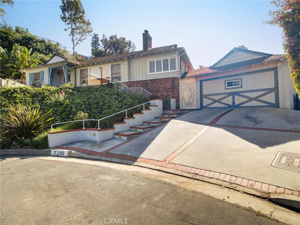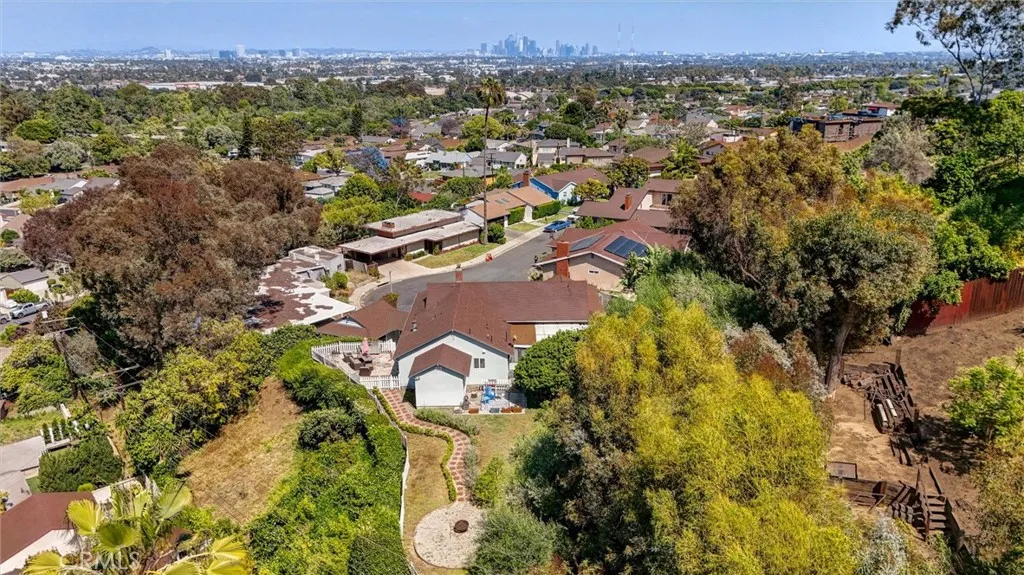 Commanding breathtaking, unobstructed views of the Downtown Los Angeles skyline, this 3-bedroom, 3-bathroom residence at 5390 Stillwater Drive is a rare offering in the coveted Baldwin Hills enclave. Set on an expansive 19,000+ square foot lot, the property delivers exceptional scale, privacy, and outstanding potential for expansion, including the possible addition of an accessory dwelling unit (ADU) (buyer to verify). Sunlight fills the main living and dining areas, where walls of windows showcase dramatic city vistas, creating an unforgettable backdrop for both everyday living and entertaining. Rich original hardwood floors, refined track lighting, and a classic wood-burning fireplace add warmth and timeless character to the space. The thoughtfully designed kitchen features granite countertops, a deep basin sink, and ample cabinetry, offering both functionality and enduring style. Seamless transitions between living spaces enhance the home’s open yet comfortable flow. Private quarters include three well-appointed bedrooms with hardwood flooring, plantation shutters, and abundant closet space throughout. Storage is a standout feature of the home, with multiple closets and built-in solutions providing exceptional functionality. The primary suite serves as a true retreat, complete with sweeping skyline views, its own fireplace, and an en-suite bath featuring a separate soaking tub and shower. Additional flexible spaces include a den with built-in shelving, a dedicated study/office area, and an unpermitted bonus room ideal for a gym, studio, or creative retreat. Outdoor living is equally impressive, featuring a view-oriented patio, expansive grounds, lush garden areas, stone pathways, and a fire pit—all designed to maximize the property’s extraordinary setting. The oversized lot offers rare versatility and significant future potential in this premier hillside location. Additional amenities include central air conditioning, a separate laundry area, pantry storage, a three-quarter bathroom, and a two-car garage. Moments from parks, dining, and major thoroughfares, this exceptional property delivers iconic views, generous land, and exceptional storage and expansion potential—an opportunity not to be missed.