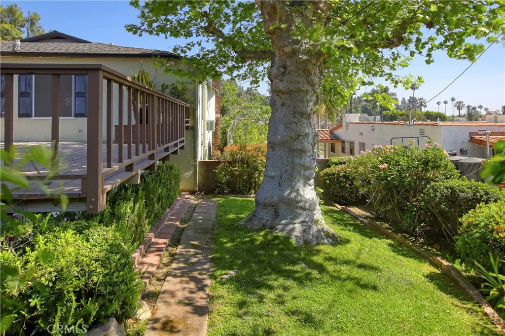 In 1936, Leslie Hope selected this large parcel of just under 12,000sf on which to build this elegant one-story traditional just a short perambulation from Leslie Brand’s home and park. With that rare combination of location and design quality, it is no wonder the current Owners have enjoyed living here for over 50 years. The inviting front door opens to a grand formal living room with a raised ceiling, large windows, and a warm fireplace hearth. The large dining room is formal as well. The central hall leads to each of the three bedrooms and two baths. The kitchen is at the center of the home and opens to a huge family room that was added with permits in the 70’s and provides such a flexible floor plan of over 2,300sf for the next very fortunate Owner of this special home. The rear grounds enjoy a covered outdoor entertaining area, mature trees, gardens, and more open space. There is also a walk-in basement space on the south side of the property that provides so much extra storage and convenience. Just a few of the features include an updated roof, a massive front yard, and an attached two car garage.