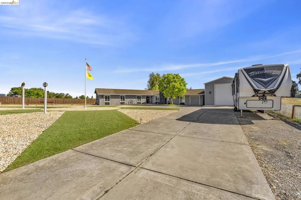 ONE OF KIND IN SO MANY WAYS...SINGLE STORY RANCH AT END OF CUL DE SAC WITH U DRIVEWAY AND HORSE CORRAL...HOME UPGRADED AND REMODELED...OVER 5 ACRES IN TOTAL...HOME SITS ON OVER 1 ACRE AND IS COMPLETELY SEPARATED FROM INCOME PRODUCING 4 ACRES.. TOO MANY SPECIAL AND UNIQUE DETAILS TO DESCRIBE...THIS IS A MUST SEE FOR YOUR OWNER-USER-INNOVATIVE BUSINESS MINDED BUYER... CALL FOR APPT