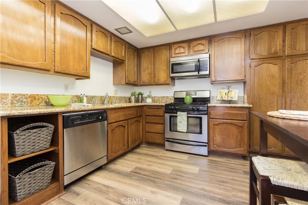 This 2 bedroom/2 bath townhouse boasts a HUGE LOFT which can be used as a 3rd bedroom, office, or den, whatever are your needs. Lots of great living space at 1739 sq ft. Freshly painted in a soft neutral, updated wood style floors throughout main living area makes for easy care and a stylish environment. Carpet in both bedrooms and loft. Architecturally interesting floor plan with lots of light catching windows and vaulted ceilings create an open and spacious living space. Kitchen features granite counters and stainless steel appliances. La Mancha community is filled with many mature trees, open greenbelt spaces, walking paths and two swimming pools. The community is conveniently located close to the I5, 241 toll road, Saddleback College, Trader Joe's, the Shops at Mission Viejo and Mission Hospital. A great place to call home.