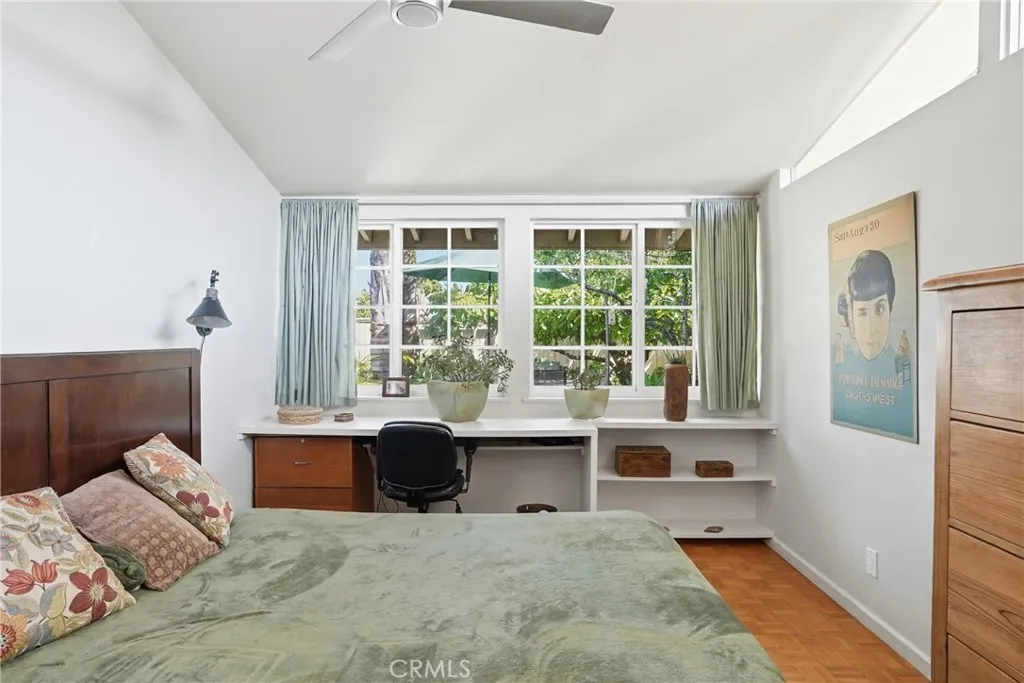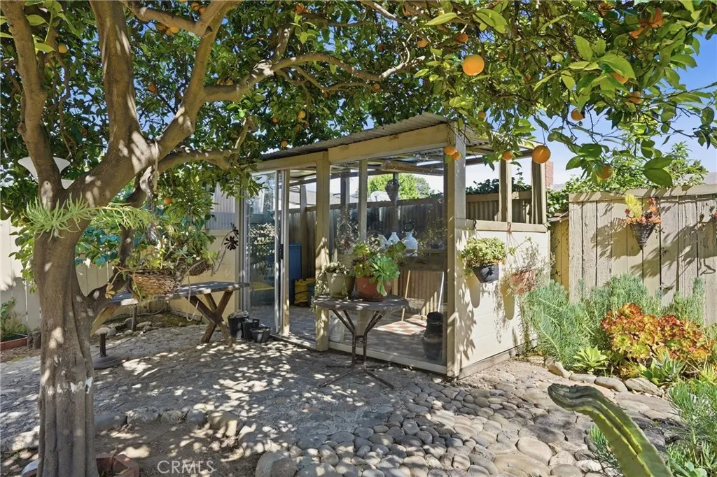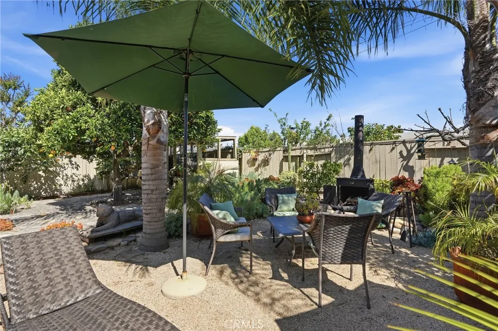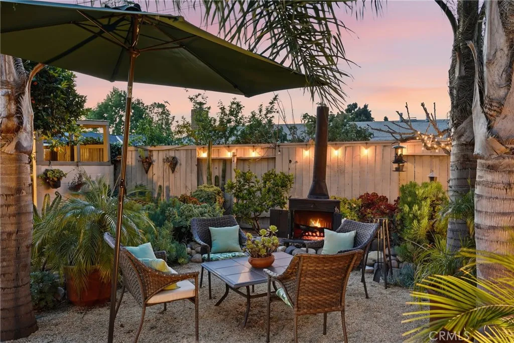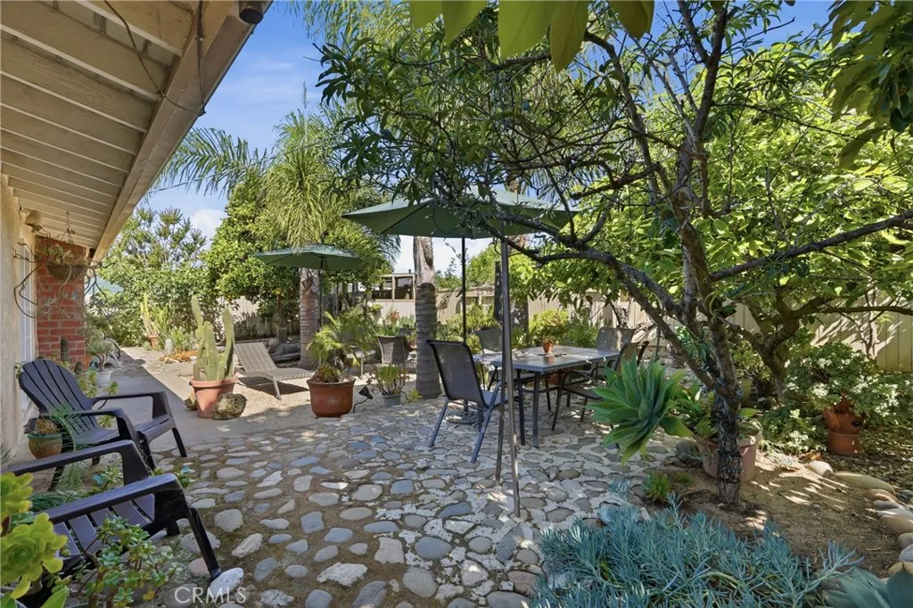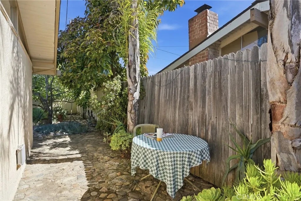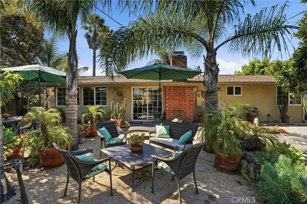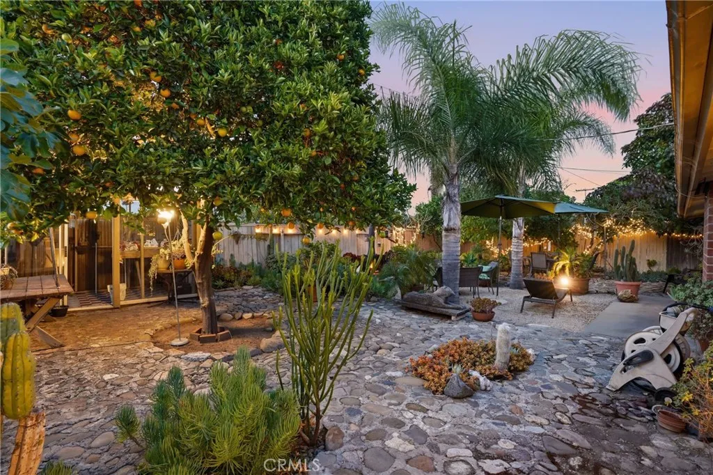 Step into this inviting single-level 3-bedroom, 2-bath home, where a distinct Palm Springs–inspired 1960s aesthetic meets classic midcentury modern design. Clean lines, an open layout, defines the main living spaces, creating an airy, light-filled atmosphere. At the heart of the home, a sleek, understated fireplace anchors the living room with a striking architectural focal point. Sliding glass doors extend the living space outdoors, opening to a backyard and patio designed for effortless indoor-outdoor living, whether relaxing quietly or entertaining guests. The bright kitchen blends style and function with granite countertops, while travertine flooring adds texture and character through the kitchen, dining area, hallway, and one bathroom. Parquet flooring flows through the main living areas and bedrooms, bringing warmth and timeless midcentury appeal. The sunny dining area continues the home’s seamless connection to the outdoors, while the backyard offers a peaceful retreat with mature fruit trees, including a vibrant orange tree, avocado, peach, fig, to name a few, and a charming potting shed perfect for gardening or creative use. A detached two-car garage is complemented by a connecting patio, adding both convenience and another welcoming space to gather. Set in a desirable neighborhood with sidewalks and close to shopping, dining, schools, and everyday amenities, this home offers a rare opportunity to enjoy classic midcentury character while making it your own. Showing start 4/29th.