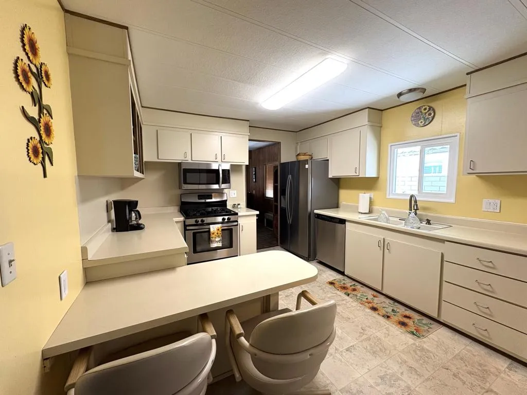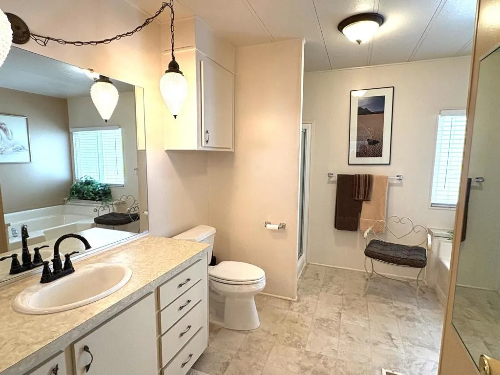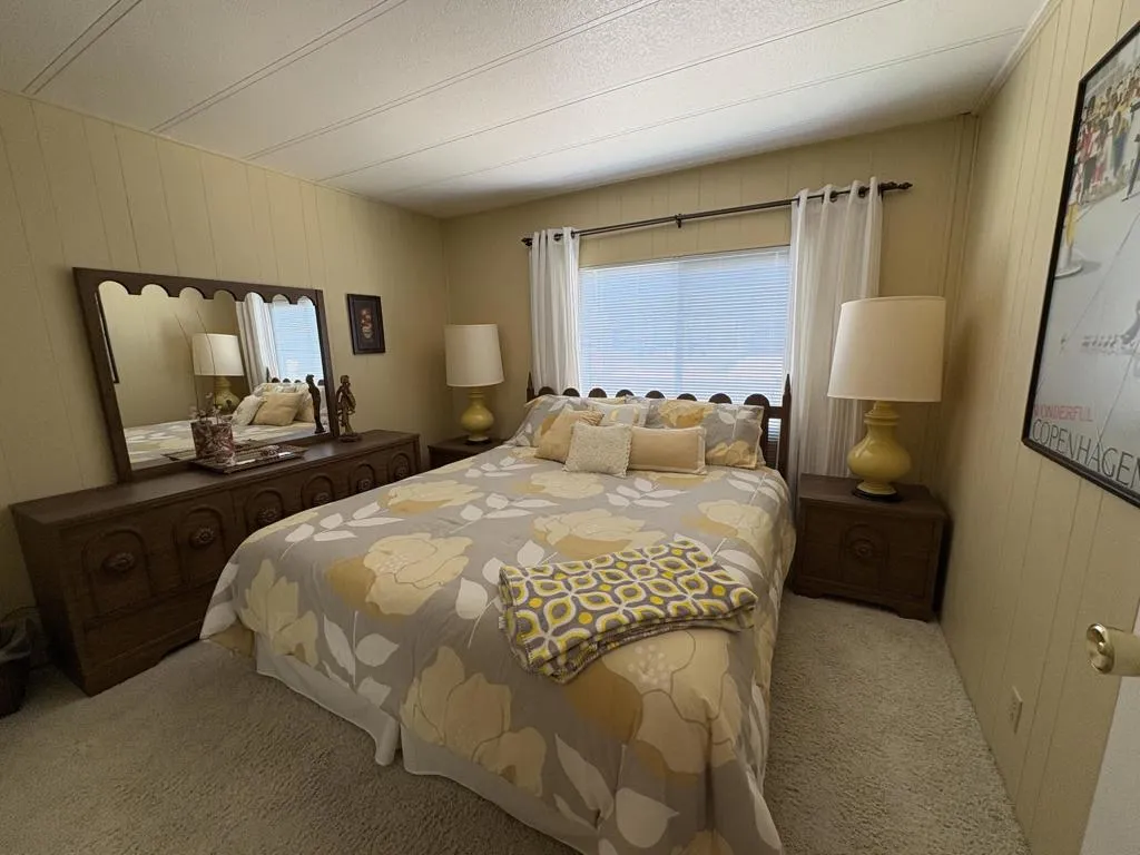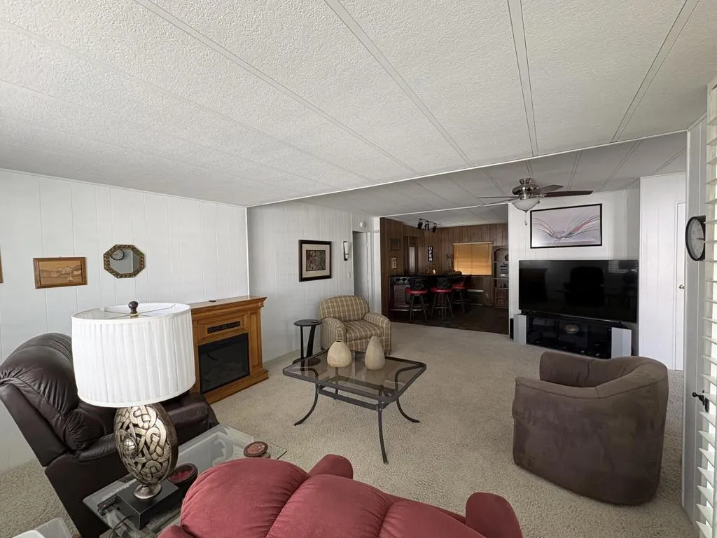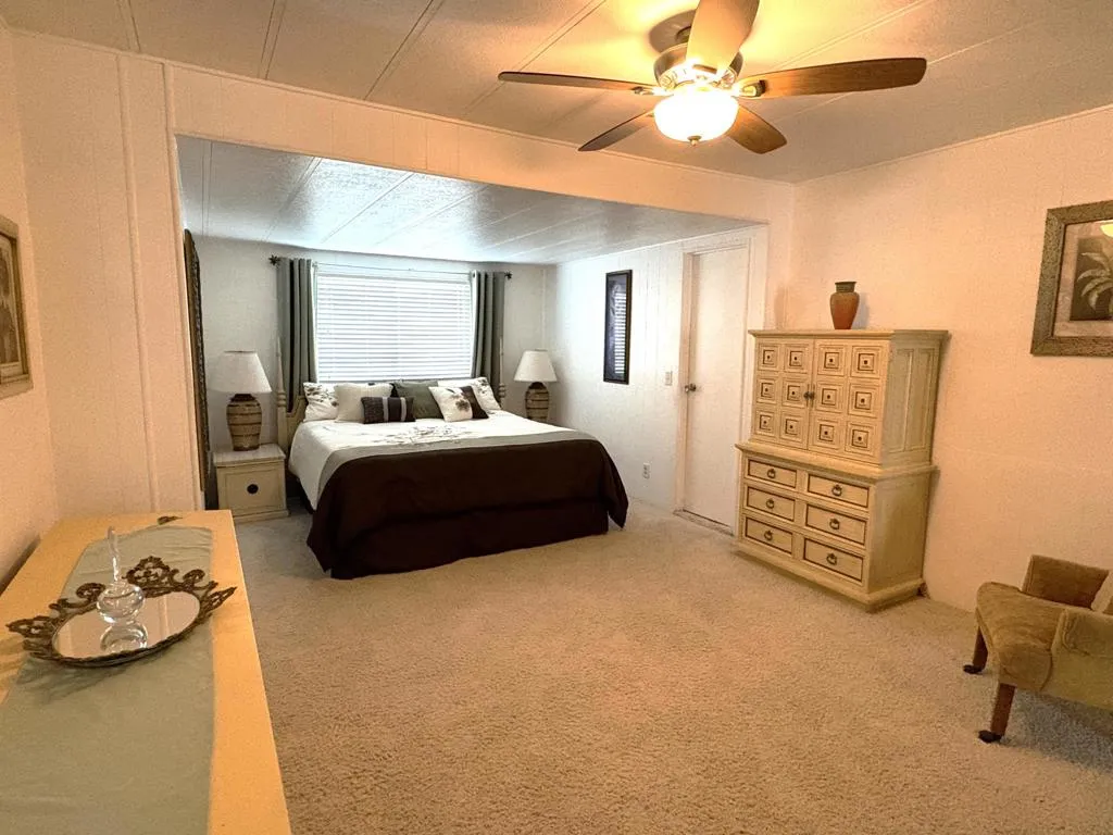 This rare split 3 bedroom home is the perfect home waiting for you to bring your personal touches. Featuring large bedrooms with walk in closets in the premier bedroom. In addition, if you are looking for extra space for a craft room or just extra living space, there is an added room for that luxury. This home comes completely furnished and is move in ready. The roof has the protective coating for maintaining longevity to the the roof. Golf Cart is included in the sale of the home. Side by side parking, and a carport area offers plenty of parking space. This home is a must see. Palm Desert Greens is a 55+ senior community. Offering a pro shop, restaurant, bar and banquet room on site. There are numerous clubs to be as active as you like. Pickleball, tennis, bocce ball, and indoor shuffleboard to name a few. Saltwater pools for water aerobics, a gym for working out. Come see this home today. Buyer to verify the square footage of the home. Buyer to pay a one time RRA (reserve replenishment Assessment fee of $2,400 equal to 6 months HOA dues.)