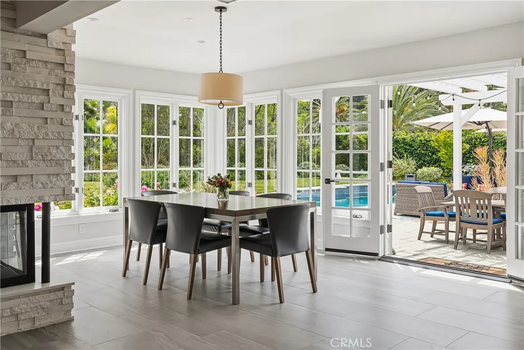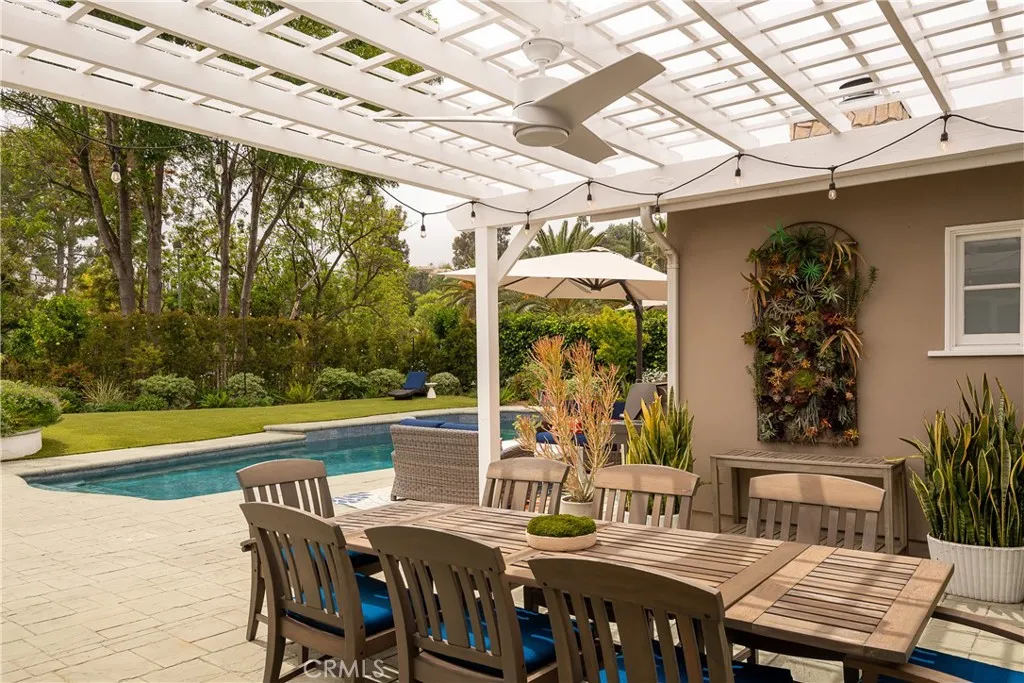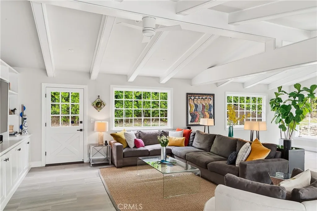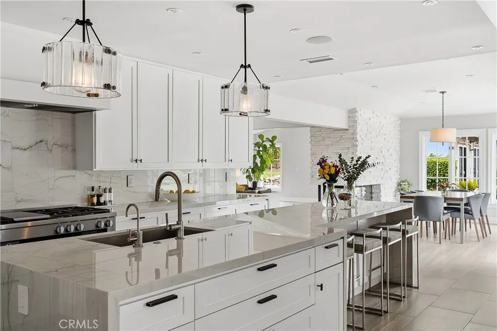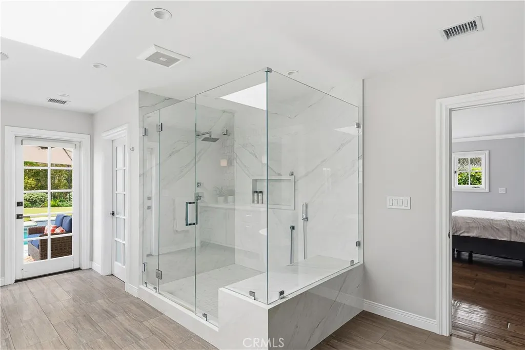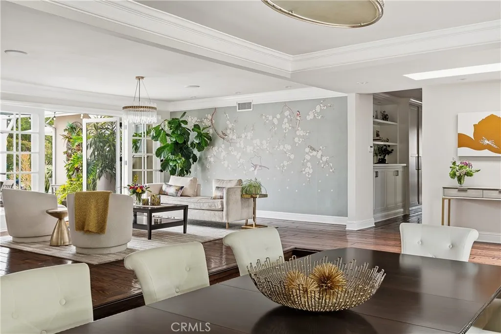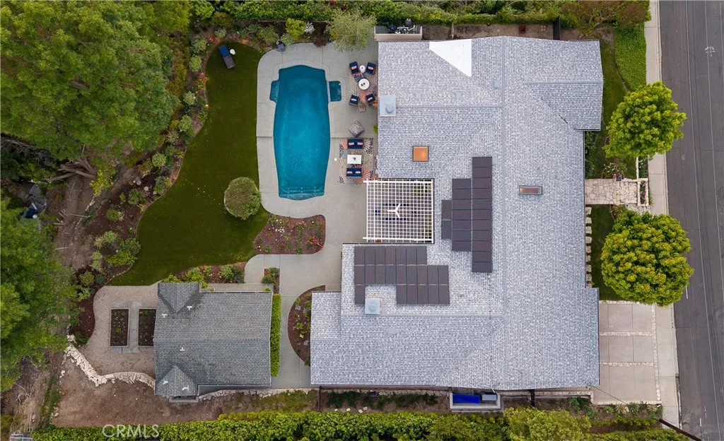 Set on a quiet Encino street, this expansive single-story estate offers approximately 4,600 sq ft including a 584 sq ft detached guest house. Positioned on a rare, flat lot of nearly 18,000 sq ft, the property offers privacy and hillside views. Light-filled interiors feature skylights and French doors that open directly to the backyard, creating a natural connection between indoor and outdoor spaces. Formal living and dining rooms flow into an open kitchen and family room centered around a double-sided fireplace, making the layout especially well suited for both everyday living and entertaining. The kitchen is updated with quartzite waterfall countertops and backsplash, custom cabinetry, a large island, and a full suite of Miele appliances. The primary bedroom suite includes a sitting area, fireplace, and direct outdoor access, along with a spacious bath featuring a soaking tub, dual vanities, and custom closets. Additional bedrooms offer en-suite baths. The backyard is a highlight of the property, private and well laid out, with a pool and spa, grassy yard, pergola-covered patio, and multiple seating areas. The detached guest house offers added flexibility, complete with a kitchenette, its own HVAC, and space well suited for guests, a home office, or extended living. Additional features include a solar system, newly installed roof (2026), dual-zone HVAC, integrated Sonos audio, a monitored security system, and a well-equipped guest house with updated systems. Located just minutes from Ventura Blvd dining and shopping, and close to award winning and highly coveted private and public schools.