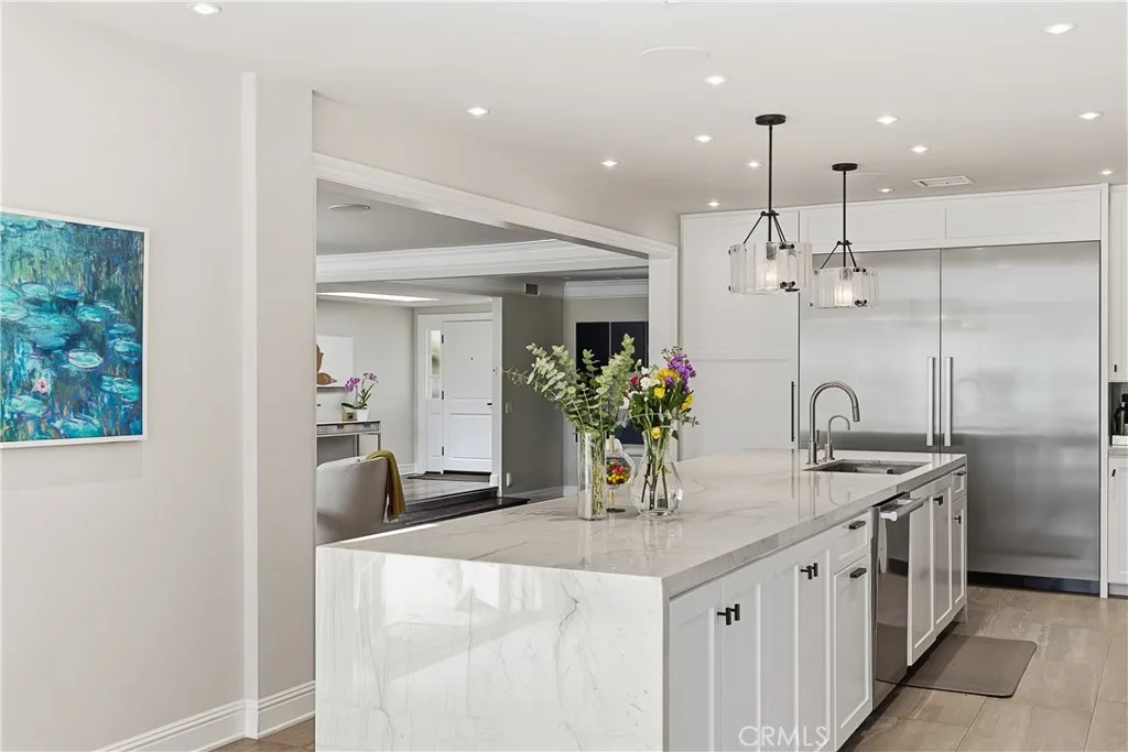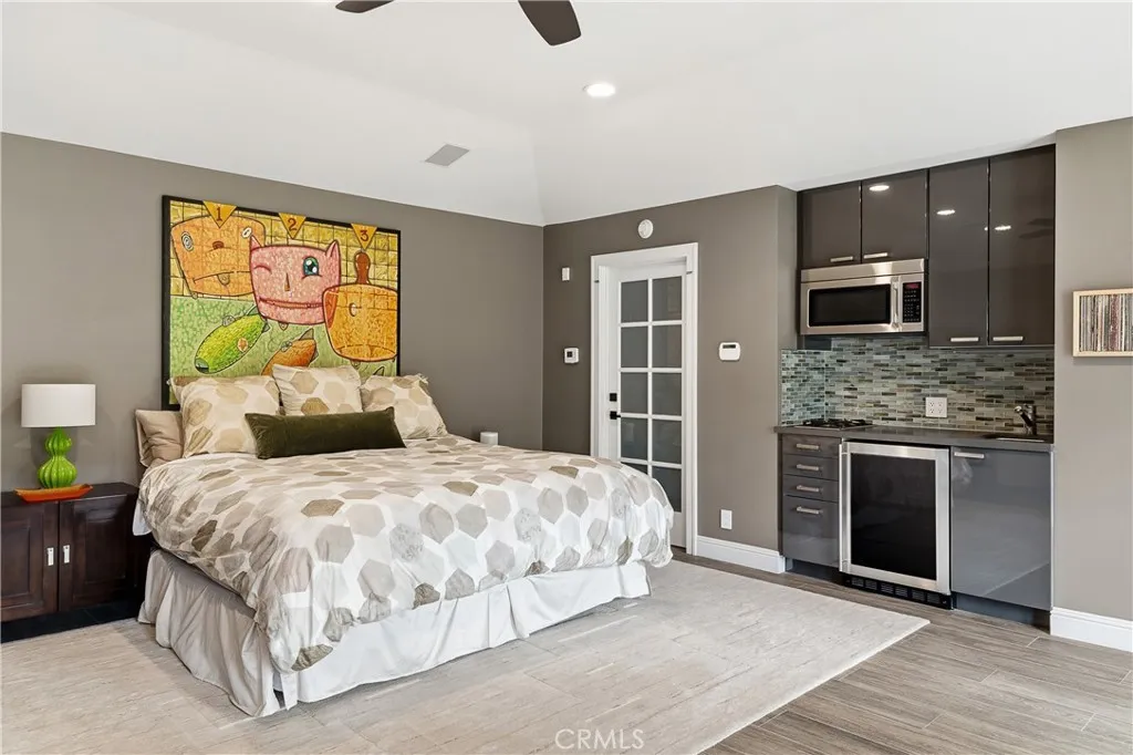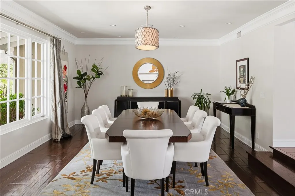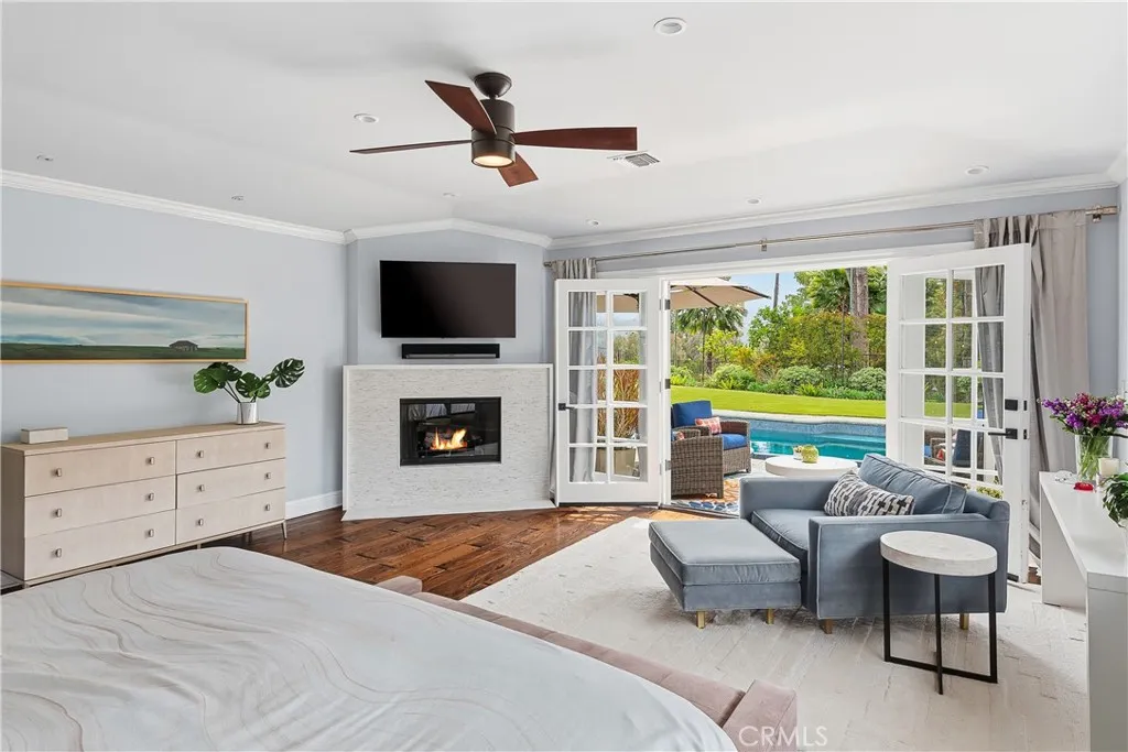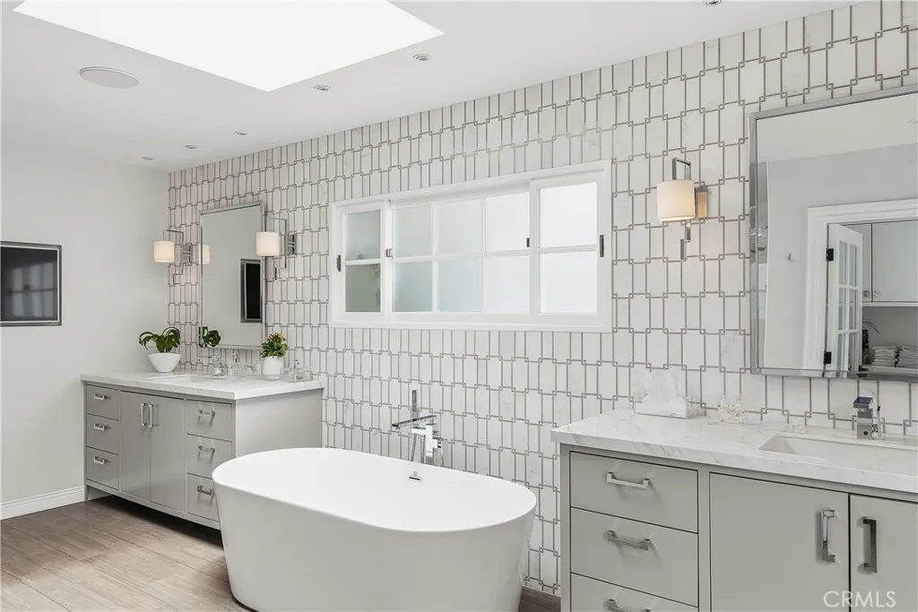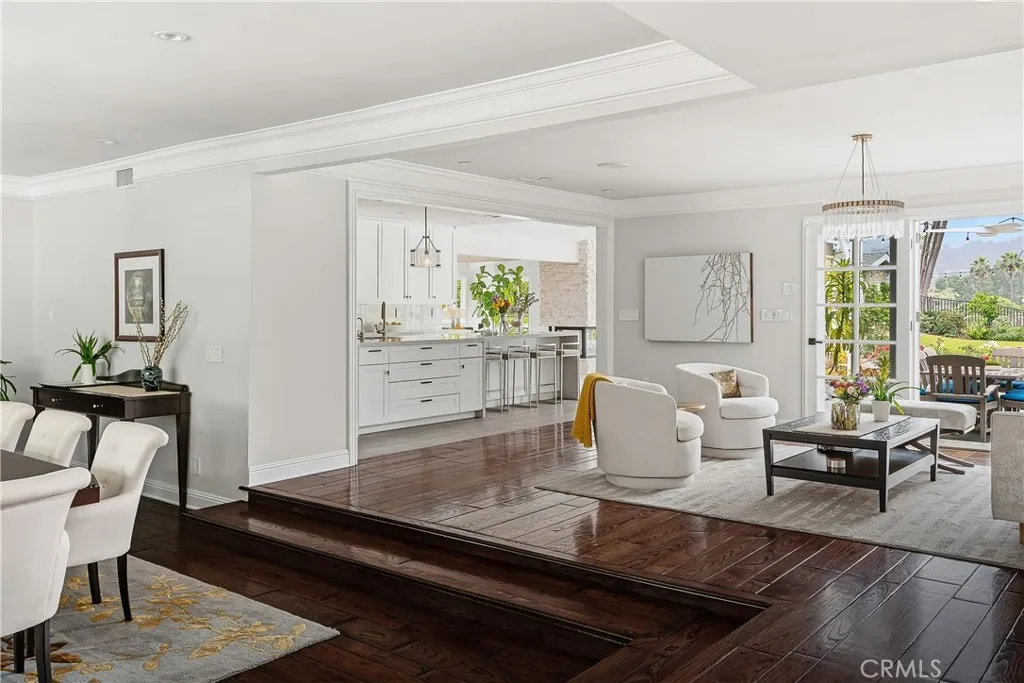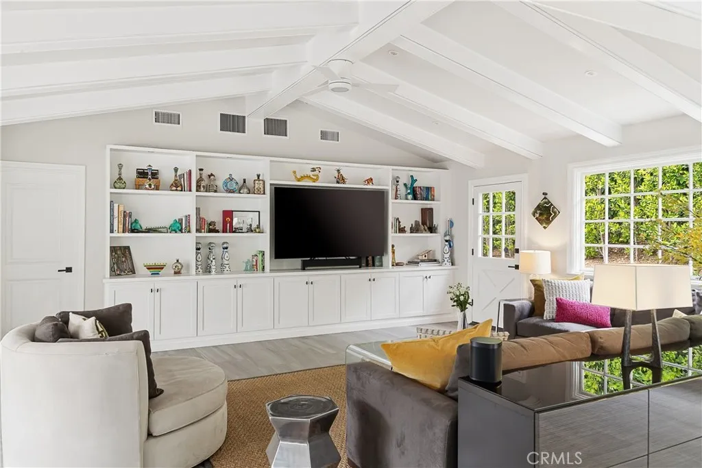 Set on a quiet Encino street, this expansive single-story estate offers approximately 4,600 sq ft including a 584 sq ft detached guest house. Positioned on a rare, flat lot of nearly 18,000 sq ft, the property offers privacy and hillside views. Light-filled interiors feature skylights and French doors that open directly to the backyard, creating a natural connection between indoor and outdoor spaces. Formal living and dining rooms flow into an open kitchen and family room centered around a double-sided fireplace, making the layout especially well suited for both everyday living and entertaining. The kitchen is updated with quartzite waterfall countertops and backsplash, custom cabinetry, a large island, and a full suite of Miele appliances. The primary bedroom suite includes a sitting area, fireplace, and direct outdoor access, along with a spacious bath featuring a soaking tub, dual vanities, and custom closets. Additional bedrooms offer en-suite baths. The backyard is a highlight of the property, private and well laid out, with a pool and spa, grassy yard, pergola-covered patio, and multiple seating areas. The detached guest house offers added flexibility, complete with a kitchenette, its own HVAC, and space well suited for guests, a home office, or extended living. Additional features include a solar system, newly installed roof (2026), dual-zone HVAC, integrated Sonos audio, a monitored security system, and a well-equipped guest house with updated systems. Located just minutes from Ventura Blvd dining and shopping, and close to award winning and highly coveted private and public schools.