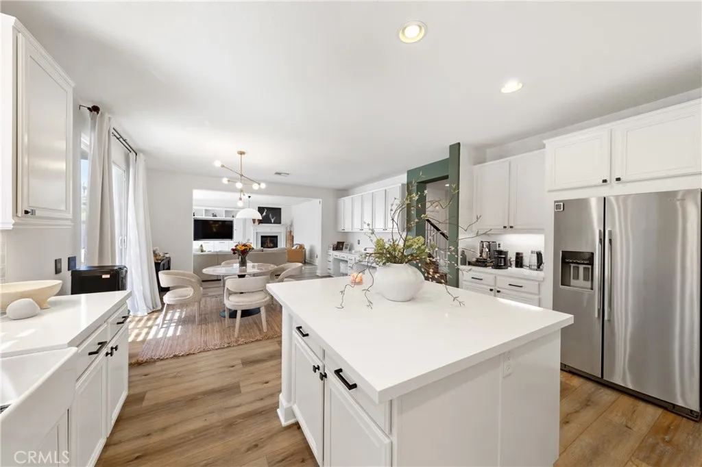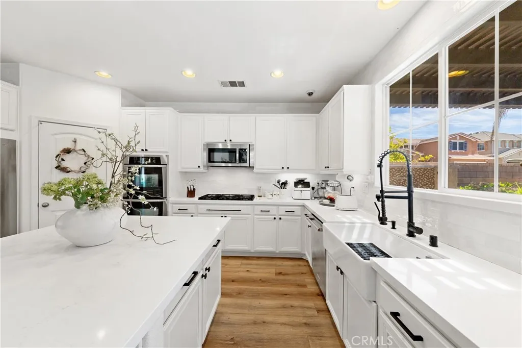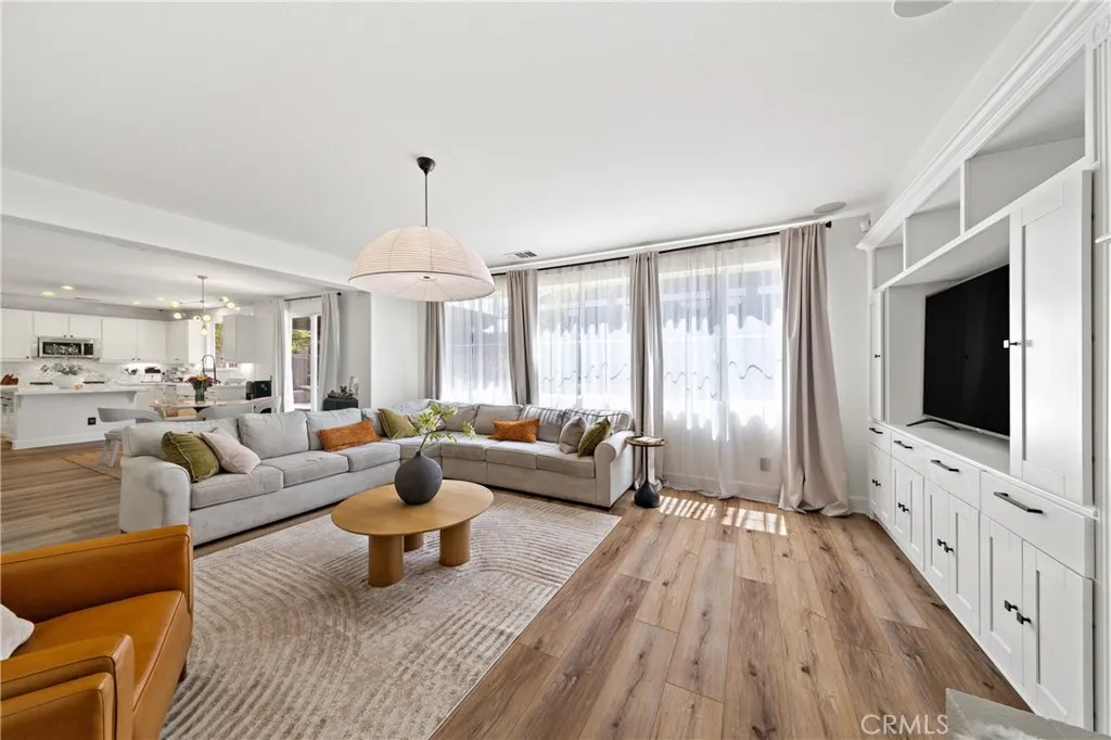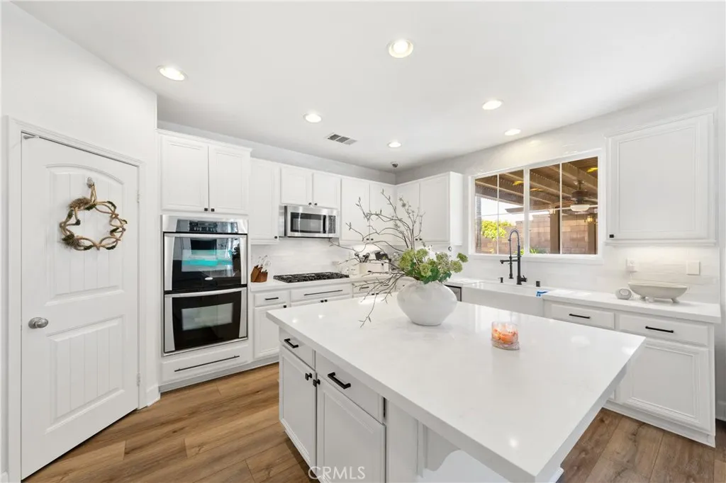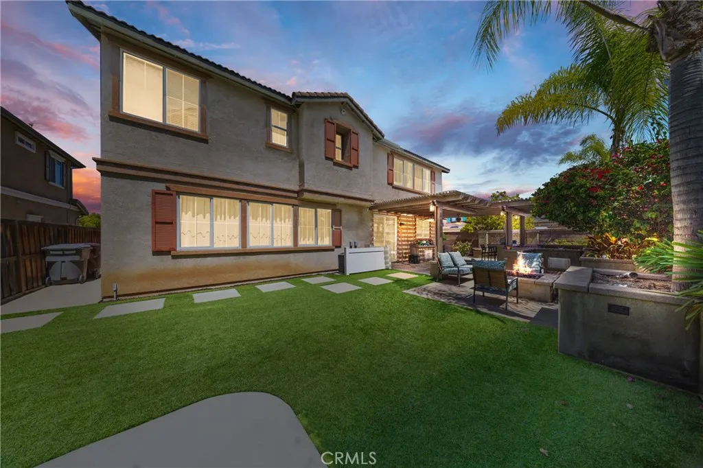 Welcome to a show-stopping 5-bedroom, 4-bath, 3,808 sq ft corner-lot masterpiece that perfectly blends luxury, space, and an unbeatable location—just moments from top-rated restaurants, premier shopping, scenic parks, Temecula’s renowned wine country, movie theaters, and with quick, effortless freeway access for commuters. From the instant you arrive, this home commands attention with its expansive layout, main-floor bedroom for ultimate flexibility, and a stunning newly remodeled chef’s kitchen featuring gleaming quartz countertops, a statement island, and seamless flow into the inviting family room with custom built-ins and a beautifully upgraded fireplace. Every inch of this home has been designed to impress and elevate everyday living. The open-concept design creates a bright, airy atmosphere ideal for both entertaining and relaxing, while thoughtful details and modern upgrades add style and convenience throughout. Upstairs, an oversized loft provides the perfect space for a media room, game lounge, or additional living area, surrounded by four generously sized bedrooms. The crown jewel is the MASSIVE primary suite—an extraordinary retreat complete with dual closets and ample space to create your own private sanctuary. Step outside and prepare to be amazed—this backyard is truly magazine-worthy and built for unforgettable gatherings. Enjoy a fully equipped outdoor kitchen with a built-in BBQ, refrigerator, running water, sleek countertops with seating, water feature and a custom fire pit that sets the perfect ambiance for evenings under the stars. With a spacious 3-car garage, Alexa-enabled smart outlets, and pre-wiring for a security system, this home delivers cutting-edge convenience alongside timeless comfort. Situated in the highly sought-after Murrieta School District, this is more than just a home—it’s a rare opportunity to own a lifestyle of luxury, entertainment, and everyday ease.