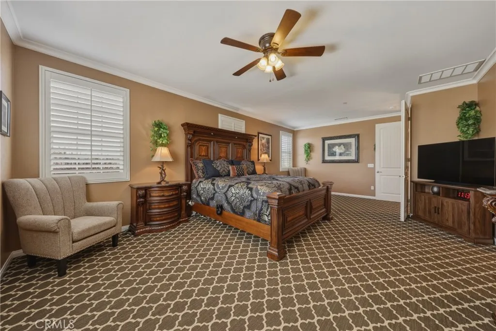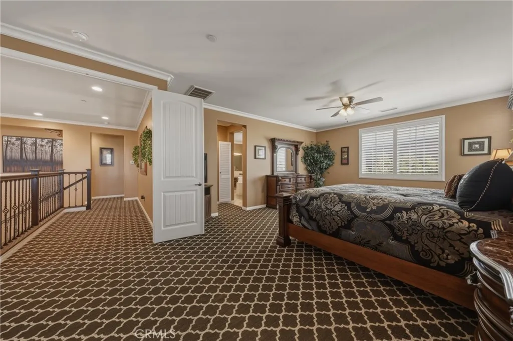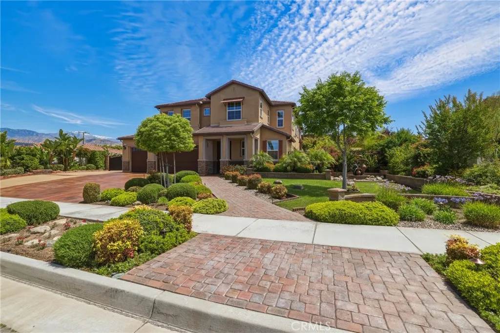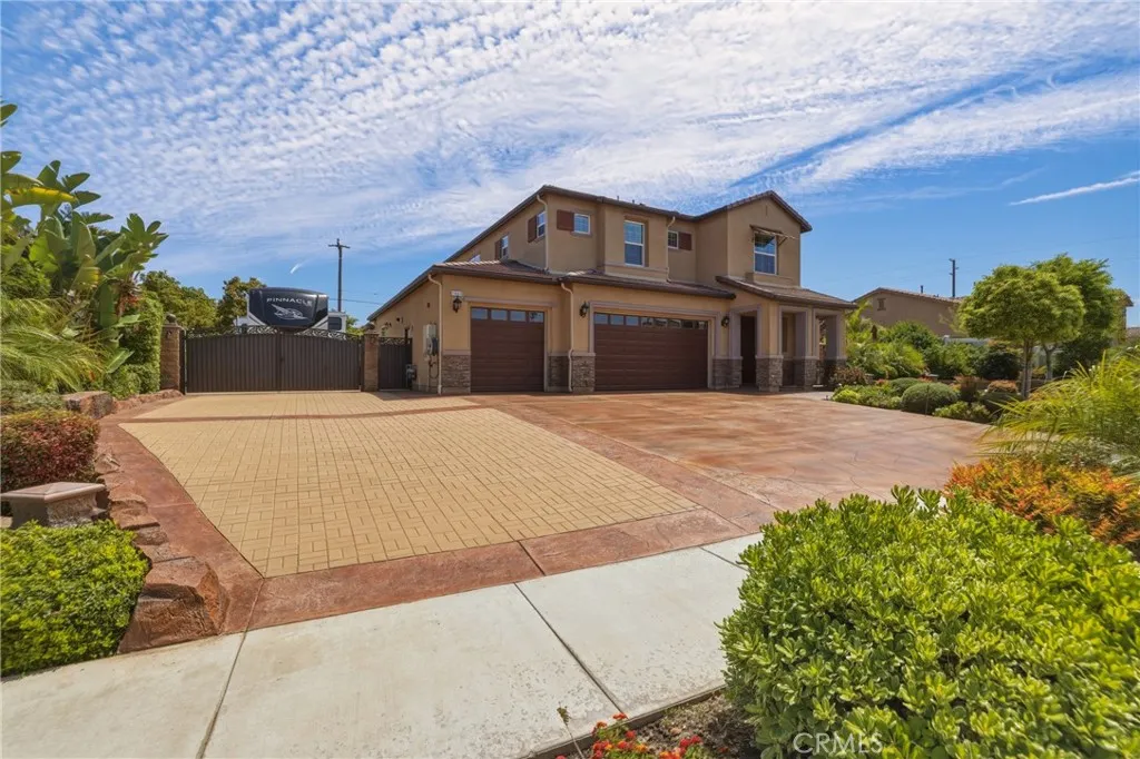 A true gem within the highly sought-after North Ranch community of Redlands, this fully upgraded Signature Series by Diversified Pacific Communities offers a seamless blend of modern luxury, thoughtful design, and everyday functionality, all with the rare benefit of no HOA. Built in 2019, this impressive two-story residence spans approximately 3,361 square feet and sits on a sprawling 14,025 square foot lot. Framed by breathtaking sunset views and the scenic backdrop of the San Bernardino Mountains, the setting delivers both beauty and a sense of peaceful privacy. Designed for versatility, the home features four spacious bedrooms, four bathrooms, and an upstairs loft ideal for additional living, entertainment, or relaxation space. The open-concept floor plan is elevated by crown moulding, wood shutters throughout, and an abundance of natural light, creating a refined yet comfortable atmosphere. The gourmet kitchen serves as a true centerpiece, showcasing quartz countertops, stainless steel appliances, lots of cabinetry, and a layout perfectly suited for both daily living and entertaining. Extensive upgrades are evident throughout the home, offering a move-in-ready experience with elevated finishes at every turn. Step outside to a resort-inspired backyard where a sparkling pool / water feature invites both relaxation and recreation. An oversized covered patio provides the perfect setting for outdoor dining and entertaining, while the expansive yard offers space to unwind, play, and enjoy the Southern California lifestyle. Additional highlights include a five-car garage, oversized RV parking with custom pavers and full hookups, and energy-efficient solar for reduced utility costs. The generous lot size and thoughtfully spaced neighboring homes enhance the sense of openness and privacy. Located in the heart of Redlands, North Ranch is known for its convenient access to quality schools, parks, shopping, dining, and major commuter routes. This is a rare opportunity to own a newer, fully upgraded pool home that effortlessly combines comfort, style, and resort-style living in one of the area’s most desirable communities. Schedule your private tour today!