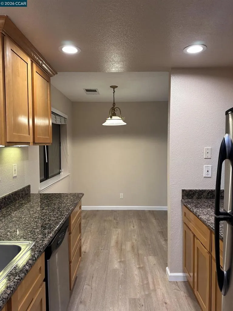 Very nice condo in highly sought after Galindo Wood with move-in condition. New floor and new paint. Stainless Steel Appliance, solid wood kitchen cabinet, granite counter top, motor-driven awning, in-unit washer and dryer. Community pool and spa. Walk to BART and easy highway access. Very motivated seller.