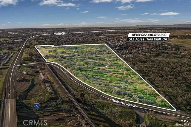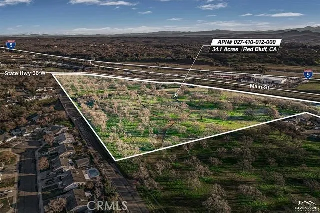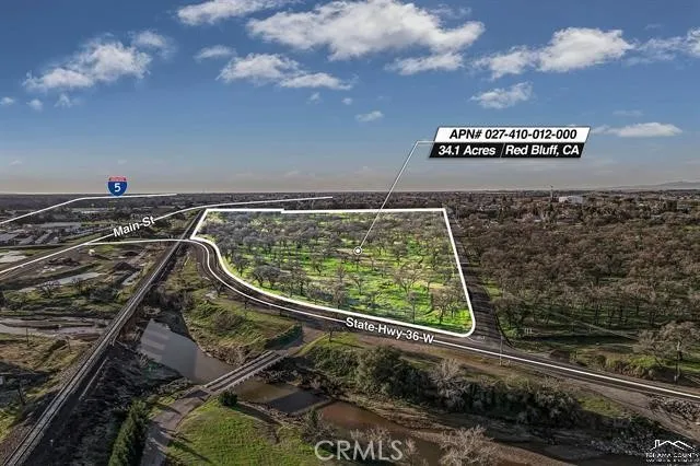 34 Oak-studded acres, currently zoned Residential R-1. Some acres are rolling hills with huge Heritage oak trees and views of Lassen and Shasta. Some flat acreage and some gently rolling. Last tentative map had city approval for 90 residential lots. Property is located off North Main St. and State Hwy 36W, and could have commercial opportunities as well. It's across the road from Home Depot, AM-PM, Holiday Inn, and U-Haul Moving & Storage. The north end of the property fronts on Hwy 36W and has Interstate-5 visibility, along with easy freeway access either north or southbound.