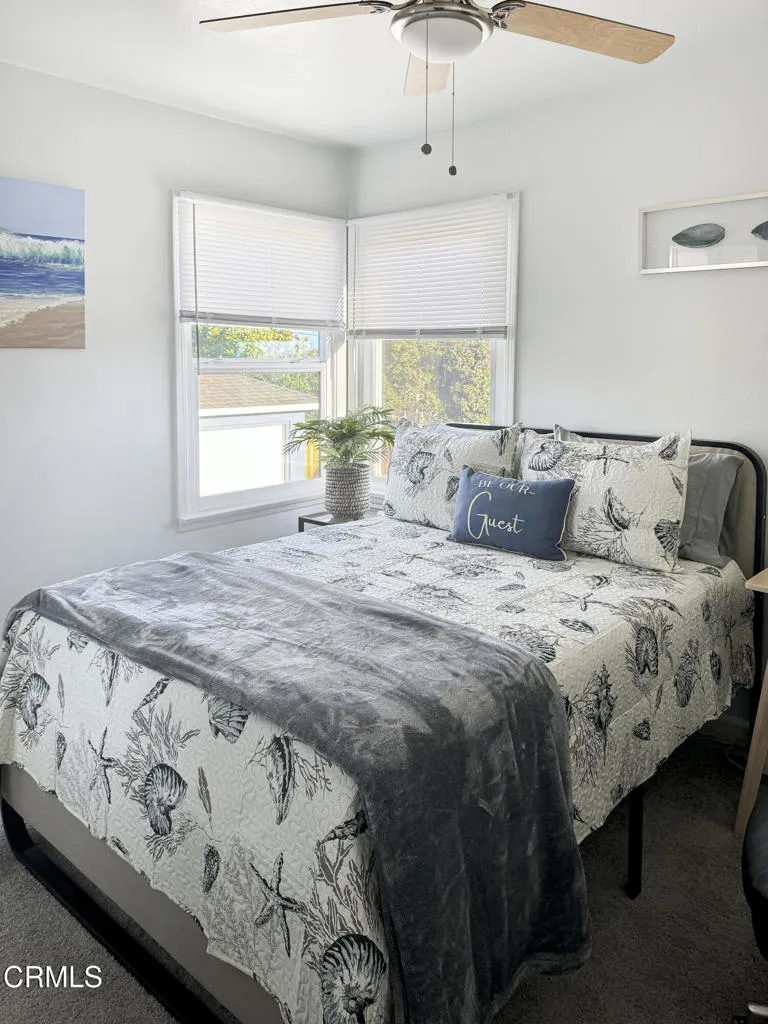 Discover this charming and thoughtfully renovated 3-bedroom home, ideally located in one of Ventura's most desirable and quaint neighborhoods. With freshly painted interiors, new laminate kitchen flooring, stylish new bathroom tiles, and plush carpeting throughout, this updated Mid-Century Modern residence offers a tranquil, move-in-ready retreat.Enjoy distant views of the Channel Islands and glimpses of the ocean on clear days, all from your front porch! Meanwhile, the expansive backyard, set on a generous lot, features a flourishing orange and avocado tree, as well as ample room for outdoor living. The yard is also spacious enough to build an ADU, offering excellent potential for additional living space or rental income.This property is currently a licensed and permitted vacation rental under professional management and can be sold fully furnished (furnishings are NOT included in the listing price and will be sold separately from the sale of the house,) making it a turn-key investment opportunity or a perfect starter home with cash flow potential!A newly paved concrete driveway leads to a detached, two-car garage, providing both convenience and ample parking, while the home's prime location offers easy access to shopping, dining and major freeways such as Hwy 101 and Hwy 126.Don't miss this incredible opportunity to purchase this unique property--Schedule a showing today!