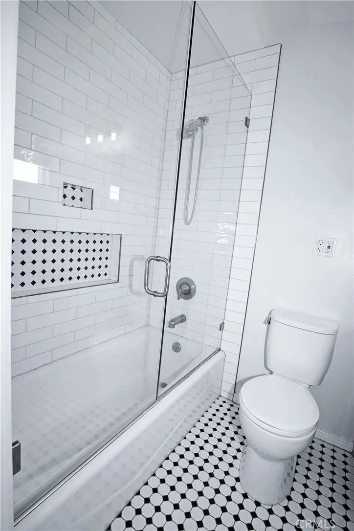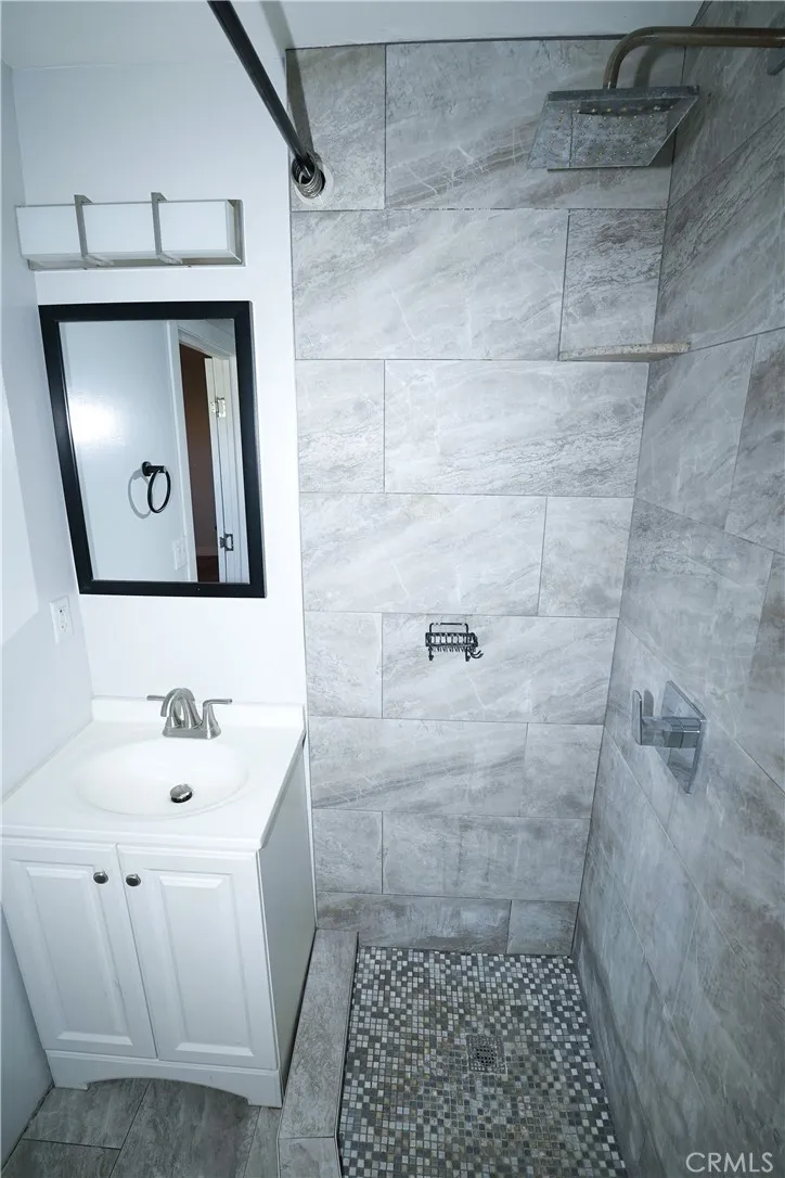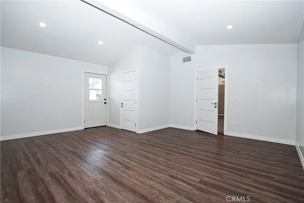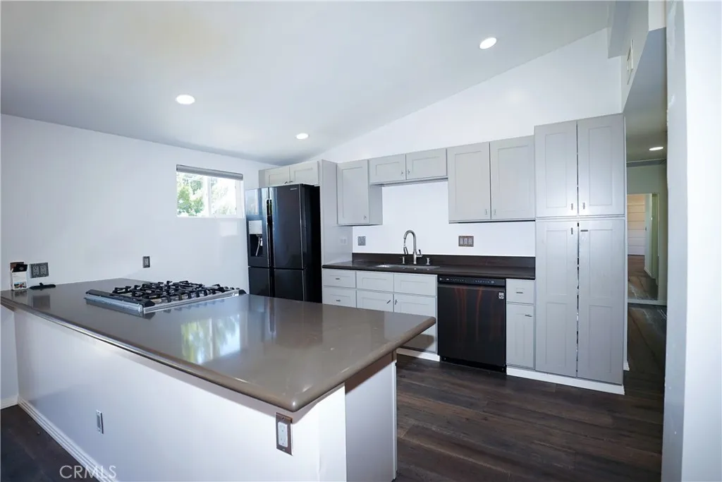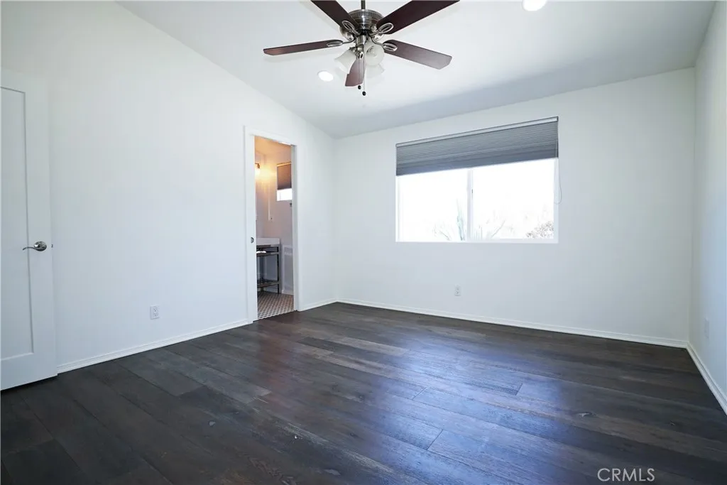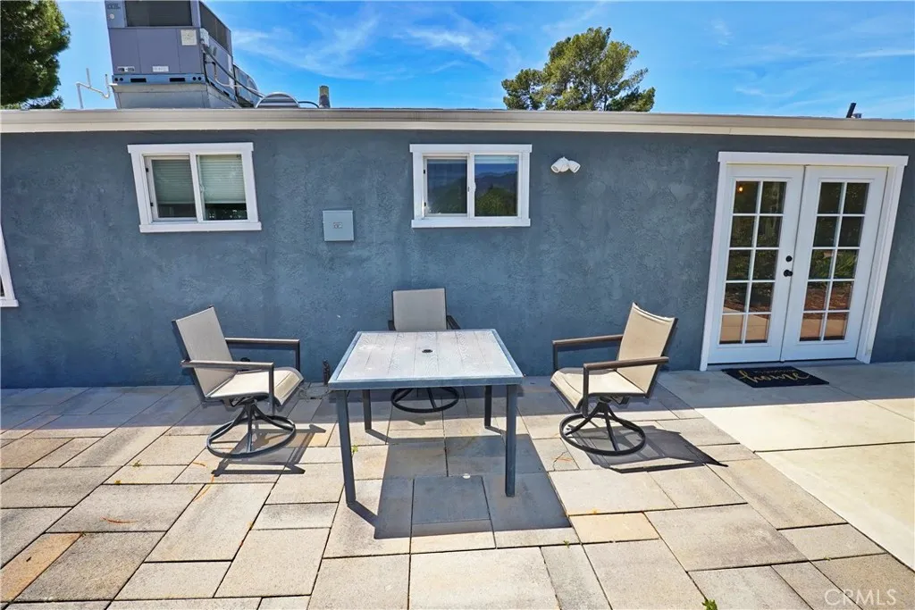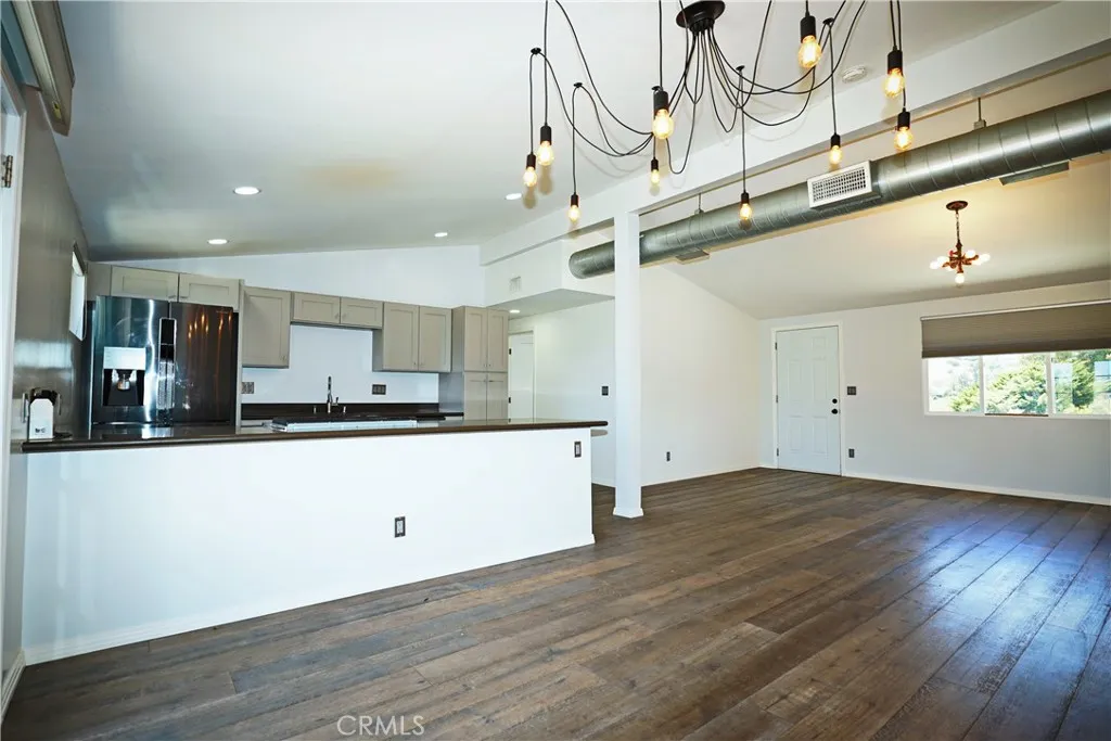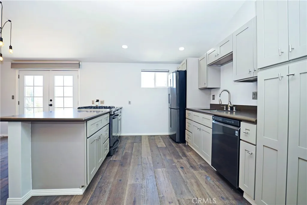 Beautifully updated single-story 4 bedroom, 2.5 bathroom home in Granada Hills featuring a bright open floor plan and modern finishes throughout. The interior showcases wide-plank dark wood-style flooring that adds warmth and contrast to the clean, contemporary design. The kitchen offers white shaker-style cabinetry, sleek countertops, and stainless steel appliances, including a refrigerator, a dishwasher and a gas stove, creating a fresh and modern look. A sleek exposed duct detail adds a subtle industrial tough, while the unique modern light fixture brings character and warmth to the space. The hallway is efficiently laid out, providing easy access to all rooms and additional storage. One of the larger bedrooms offers direct access to the backyard patio - perfect as a primary suite or guest retreat.. The bathrooms have been updated with a modern aesthetic - highlighted by a beautifully tiled walk-in shower with large-format stone tiles, a rainfall showerhead, and mosaic flooring for a spa-like feel. Additional bathrooms feature tile flooring and contemporary vanities. Living spaces are filled with natural light. The living area features elegant French doors that open directly to the backyard patio, creating a seamless indoor-outdoor flow and filling the space with natural light. Step outside to a landscaped yard designed for low maintenance and relaxation, featuring drought-tolerant landscaping with mature cacti tree design, and a spacious paved patio area (private backyard) with scenic hillside and mountain views - ideal for outdoor seating, entertaining and gatherings. No Garage. Laundry unit outside. Conveniently located near freeways, shopping, and dining.