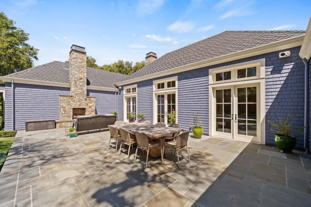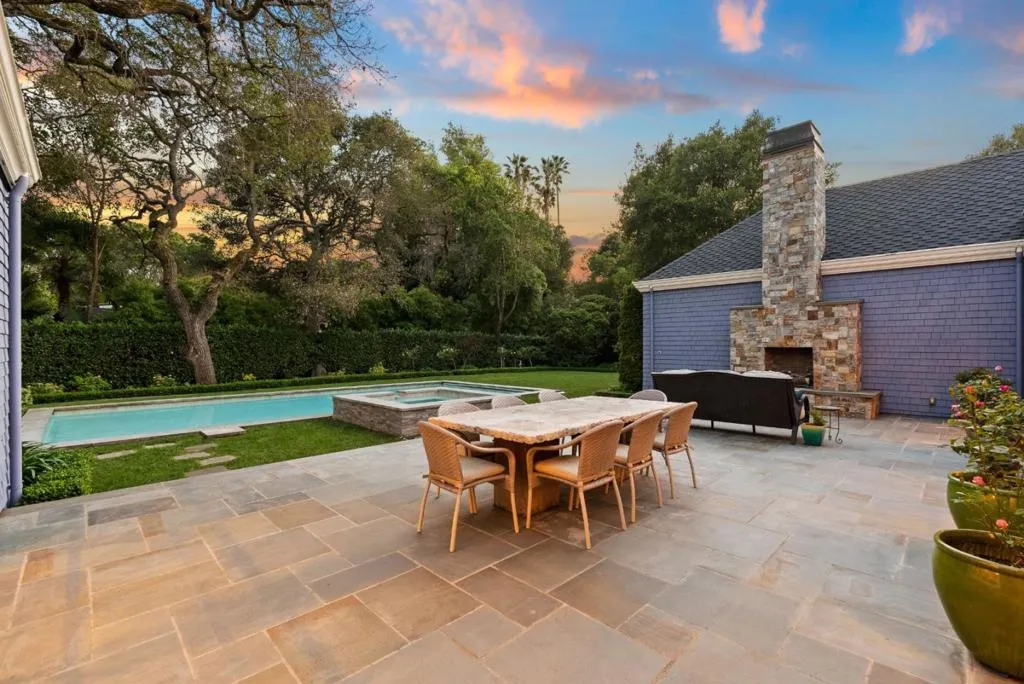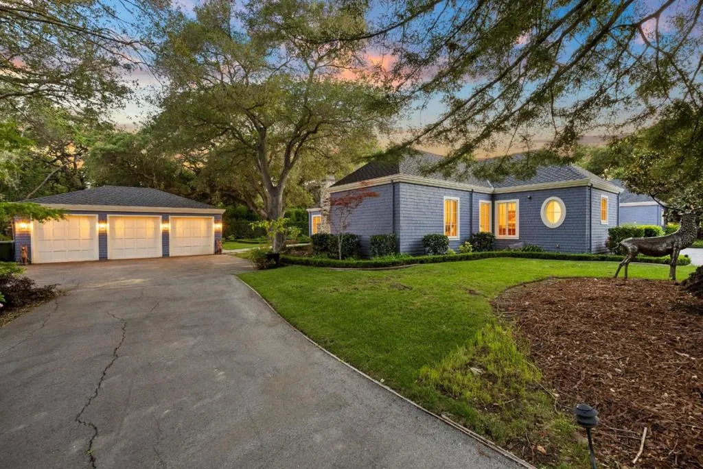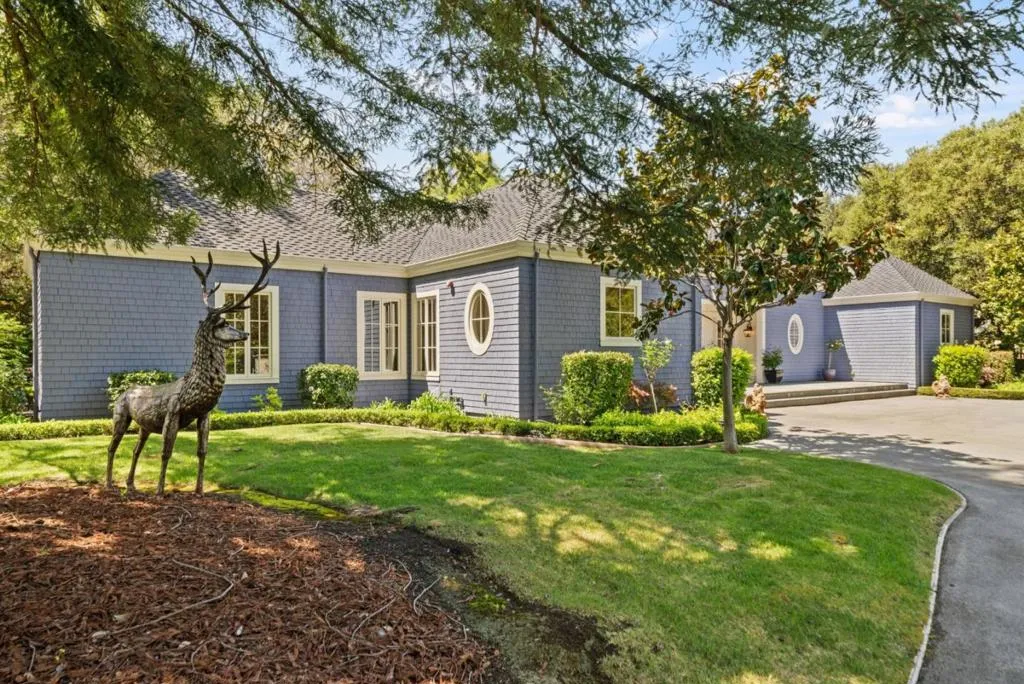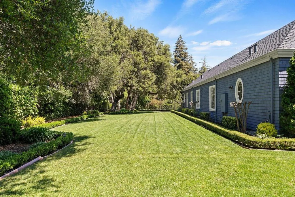 Graceful single-level estate in Atherton's coveted Lindenwood, blending East Coast Nantucket-inspired elegance with California ease. Built in 2012 & designed by Bob Glazier, this refined home exudes quiet sophistication: shingle exterior, crisp white millwork & balanced symmetry. The home is grounded & deliberate, allowing the architecture to settle naturally into the landscape. Inside, open-concept, light-filled interiors showcase soaring tray/coffered ceilings, a soft palette & rich oak floors, delivering warmth & timeless appeal. Offering four bedroom suites & two half-baths, the home is designed for effortless everyday living & elevated entertaining. A chef's kitchen w/top-end appliances, travertine counters & island anchors the home. Expansive windows/doors blur indoor-outdoor living, opening to a terrace w/fireplace & composed pool/spa. Set on nearly an acre, the whimsical grounds are curated yet effortless: boxwood hedges, hydrangeas, crepe myrtle, mature oaks & layered gardens offering privacy & serenity. An exquisite 1-bed guest house & 3-car garage add flexibility & convenience. A home of lineage & restraint. Where every line, material & proportion feels considered, measured & enduring. Elegant without excess. Refined without rigidity. Sophistication without compromise.