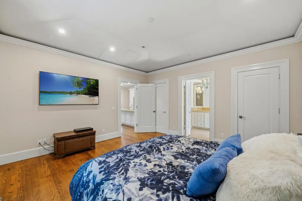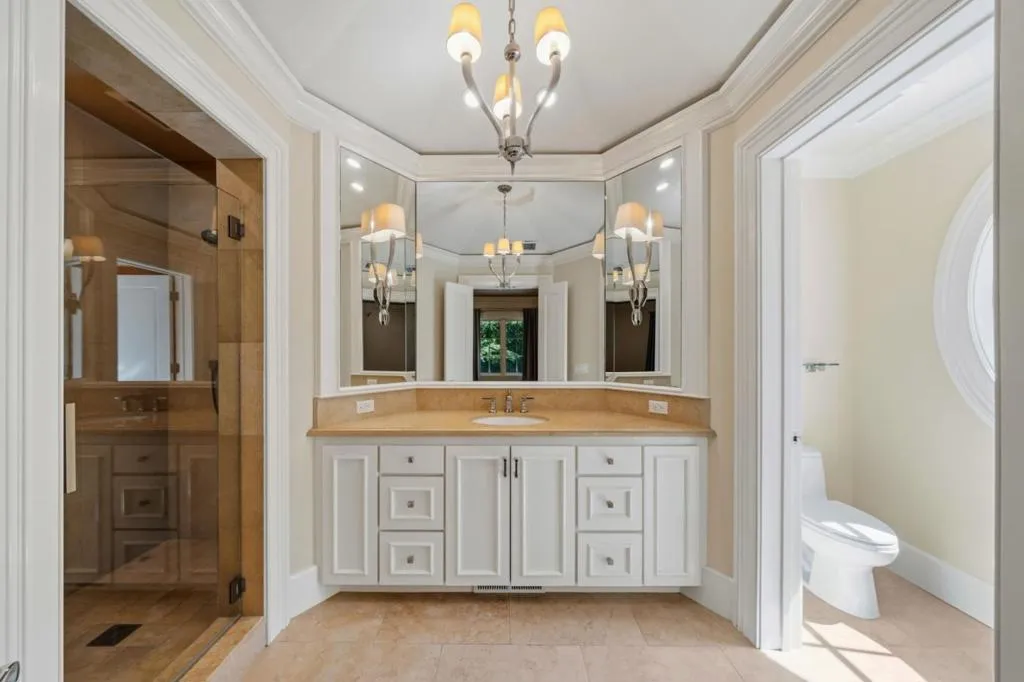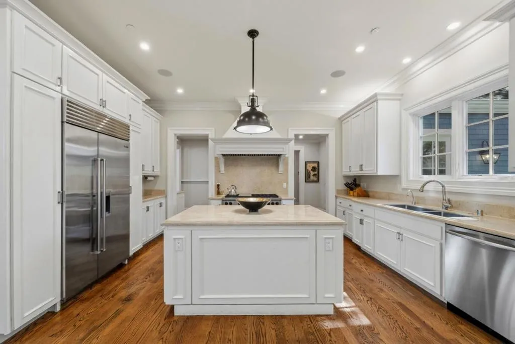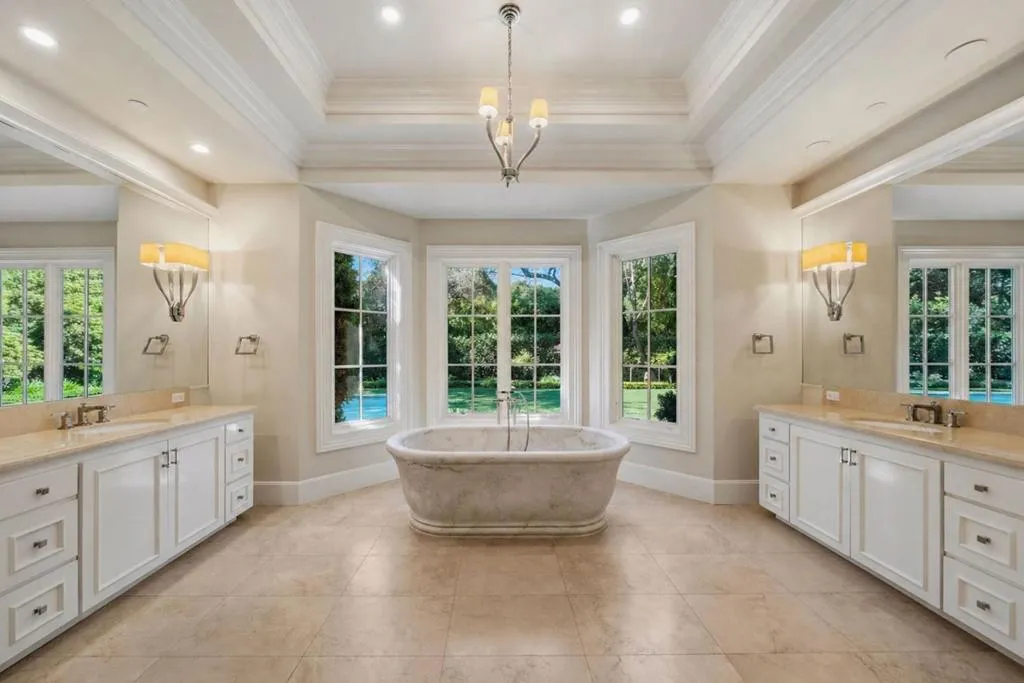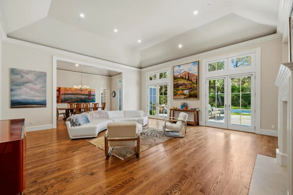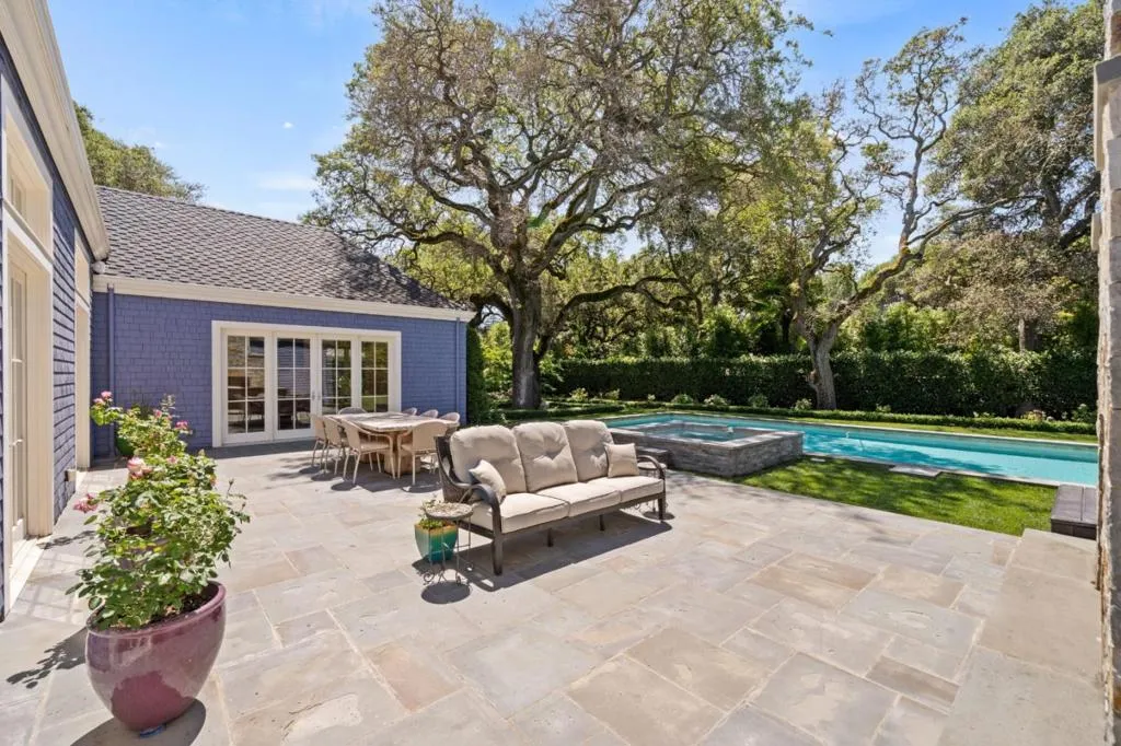 Graceful single-level estate in Atherton's coveted Lindenwood, blending East Coast Nantucket-inspired elegance with California ease. Built in 2012 & designed by Bob Glazier, this refined home exudes quiet sophistication: shingle exterior, crisp white millwork & balanced symmetry. The home is grounded & deliberate, allowing the architecture to settle naturally into the landscape. Inside, open-concept, light-filled interiors showcase soaring tray/coffered ceilings, a soft palette & rich oak floors, delivering warmth & timeless appeal. Offering four bedroom suites & two half-baths, the home is designed for effortless everyday living & elevated entertaining. A chef's kitchen w/top-end appliances, travertine counters & island anchors the home. Expansive windows/doors blur indoor-outdoor living, opening to a terrace w/fireplace & composed pool/spa. Set on nearly an acre, the whimsical grounds are curated yet effortless: boxwood hedges, hydrangeas, crepe myrtle, mature oaks & layered gardens offering privacy & serenity. An exquisite 1-bed guest house & 3-car garage add flexibility & convenience. A home of lineage & restraint. Where every line, material & proportion feels considered, measured & enduring. Elegant without excess. Refined without rigidity. Sophistication without compromise.