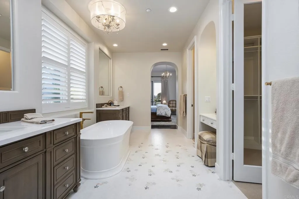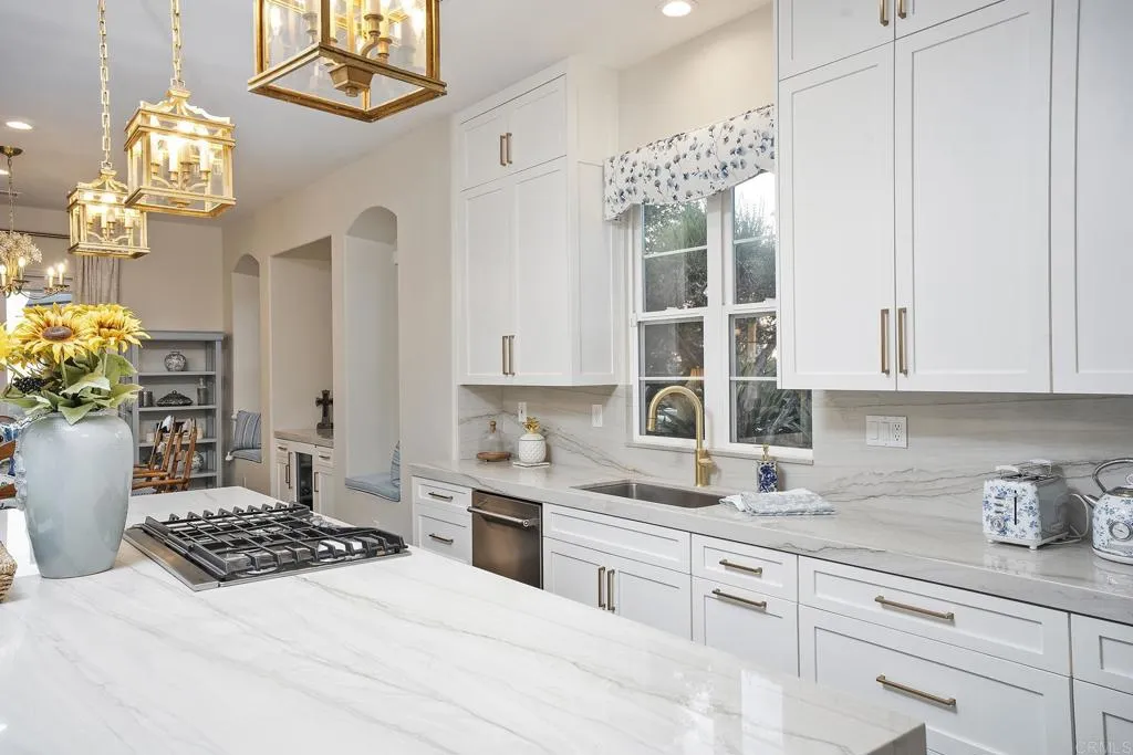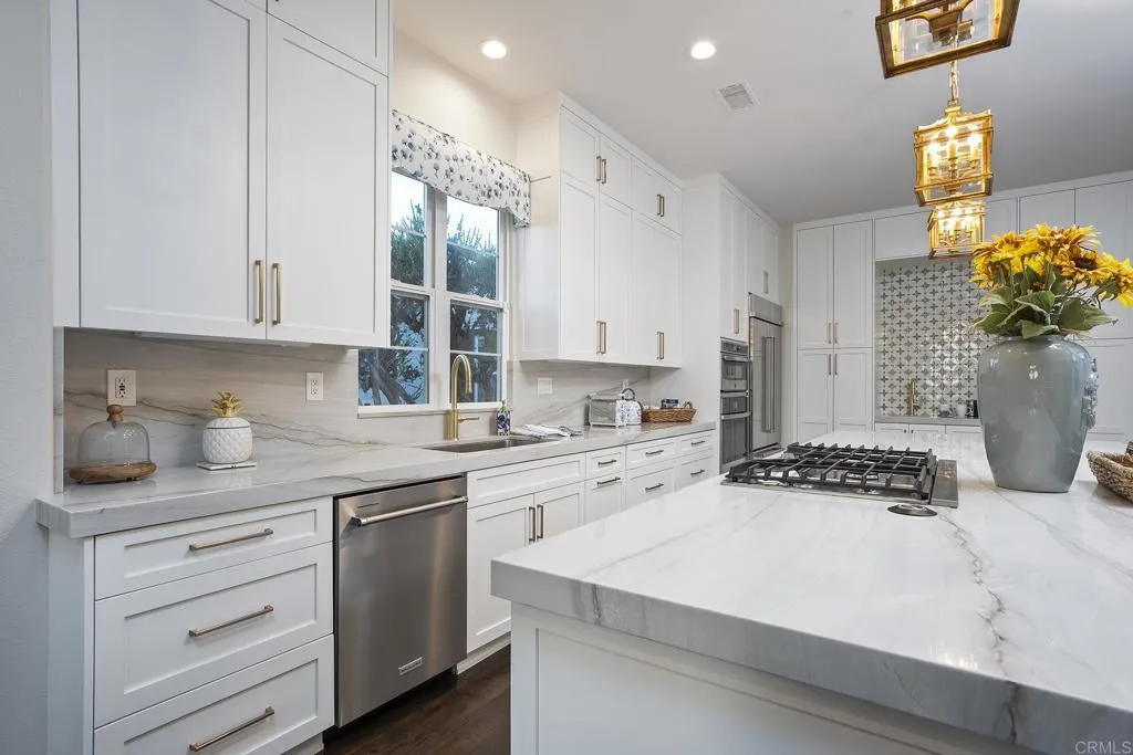 NESTLED WITHIN THE PRESTIGIOUS GATED ENCLAVE OF SANTALUZ, THIS EXCEPTIONAL SANTLUZ CASITA OFFERS THE PERFECT BLEND OF LUXURY, PRIVACY, AND REFINED DESIGN. THIS BEAUTIFULLY APPOINTED 3 BEDROOM, 3 BATH SINGLE STORY HOME HAS BEEN RECENTLY REMODELED WITH IMPECCABLE ATTENTION TO DETAIL, SHOWCASING A SOPHISTICATED PROFESSIONALLY CURATED INTERIOR. FROM THE MOMENT YOU ENTER, YOU ARE GREETED BY SOARING HIGH CEILINGS, RICH WOOD FLOORING, AND ELEGANT CUSTOM WOOD BUILT-INS AND TRIM THAT CREATE A WARM YET ELEVATED LIVING EXPERIENCE. THE THOUGHTFULLY DESIGNED FLOOR PLAN CENTERS AROUND A CENTER COURTYARD AREA ALONG WITH MULTIPLE PATIO AREAS TO ENJOY. EVERY ELEMENT HAS BEEN CAREFULLY SELECTED, FROM THE TIMELESS FINISHES TO THE TASTFUL DECOR, MAKING THIS PROPERTY TRULY MOVE-IN READY FOR THE MOST DISCERNING BUYER. PLANTION SHUTTERS ADD BOTH CHARM AND FUNCTIONALITY, WHILE THE OVERALL DESIGN REFELECTS A PERFECT BALANCE OF COMFORT AND UPSCALE LIVING. LOCATED WITHIN THE EXCLUSIVE SANTALUZ 24 HR GUARD GATED GOLF COURSE COMMUNITY, RESIDENTS ENJOY A SERENE SETTING SURROUNDED BY ROLLING HILLS, LUSH LANDSCAPES, AND WORLD-CLASS AMMENITIES. THIS IS A RARE OPPORTUNITY TO OWN A TURN-KEY LUXURY HOME IN ONE OF SAN DIEGO'S MOST SOUGHT-AFTER NEIGHBORHOODS.