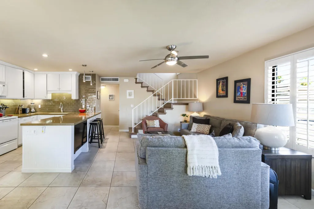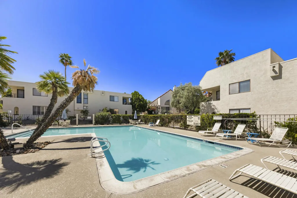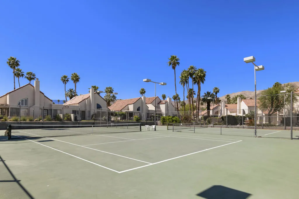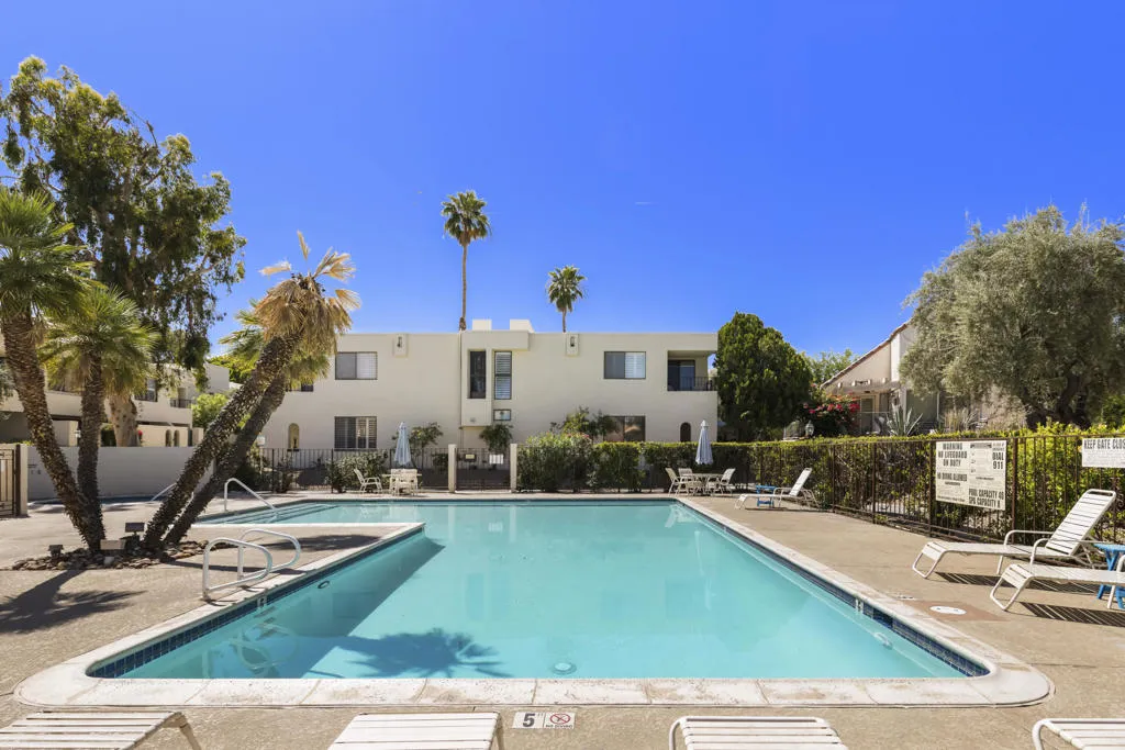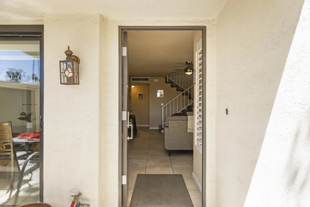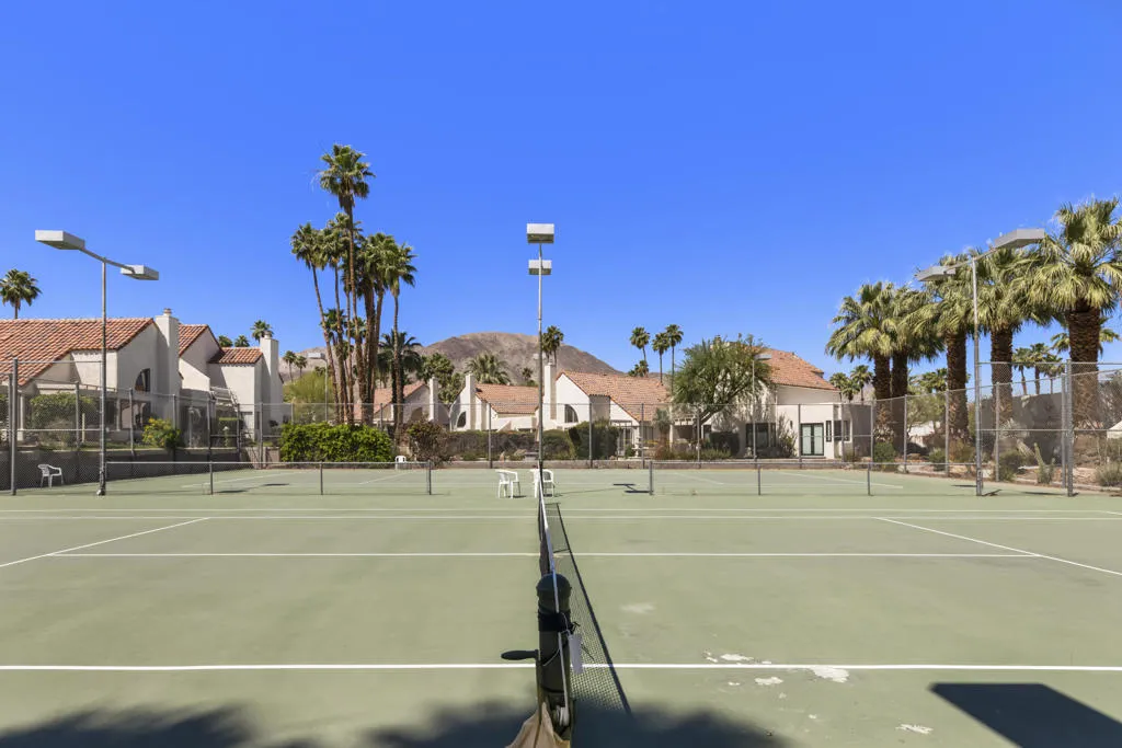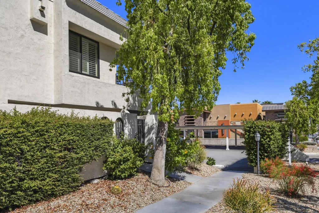 Welcome to this beautifully and fully renovated condo in the heart of Palm Desert, just steps from the iconic El Paseo. This is a rare opportunity to own a move-in ready residence in one of the most walkable and desirable locations in Palm Desert, where luxury shopping, dining, and desert lifestyle all come together. Perfectly suited for short term rental or personal use, the property has a proven STR history and offers strong income potential. Guests and owners are drawn to the easy access to restaurants, boutiques, and entertainment just steps away. The interior features a thoughtful layout with modern finishes throughout. The upstairs bathroom is spacious, refreshed and designed to serve both bedrooms comfortably. A stacked washer and dryer is conveniently located on the bedroom level. Outdoor living is a highlight with a private walled front patio, perfect for dining, BBQ or relaxing in privacy. And take in great views from the balcony off the bedroom. Enjoy resort style amenities, including a sparkling pool, spa, tennis courts and a community game room, creating lifestyle and vacation/rental appeal. Located just minutes from Palm Springs International Airport, world class golf and entertainment venues including Acrisure Arena and the McMalluum, this home offers exceptional convenience in the Coachella Valley. Perfect income producing investment, serene desert escape or full time residence, this condo offers effortless Palm Desert living in one turnkey package.