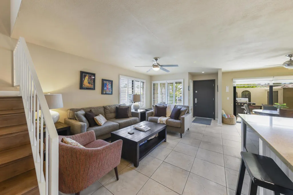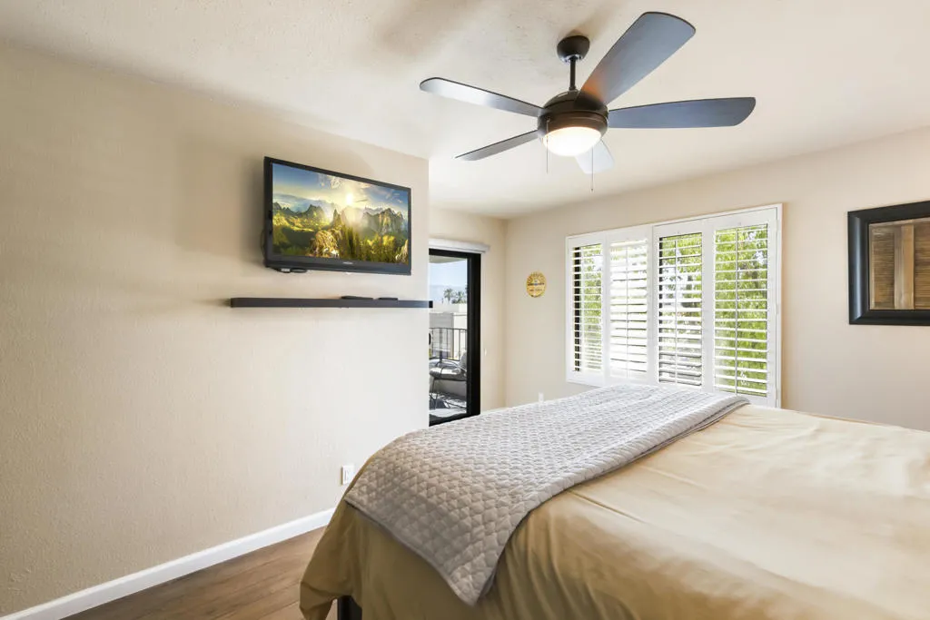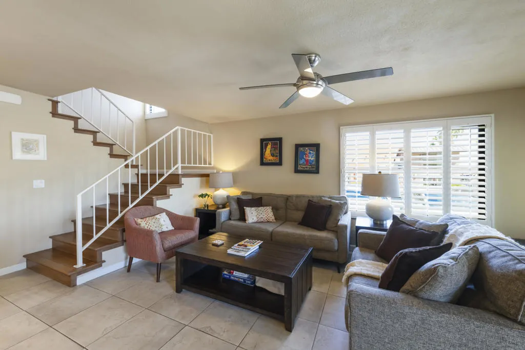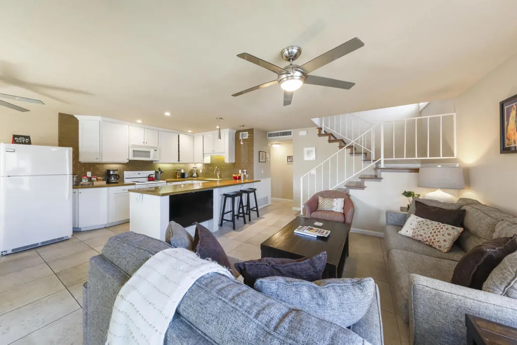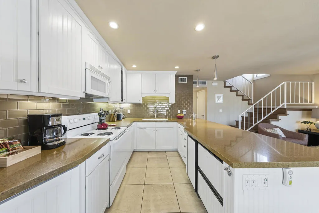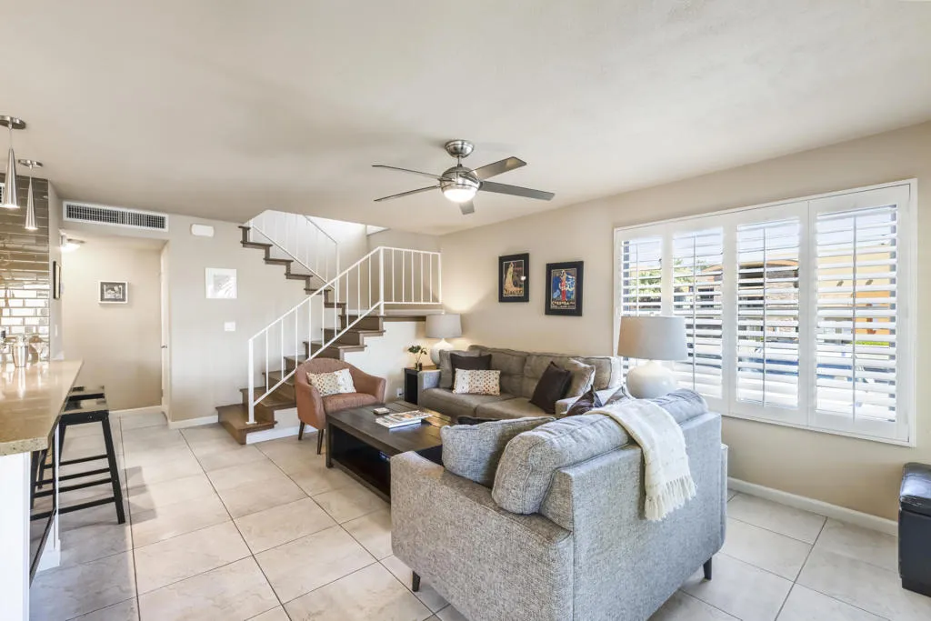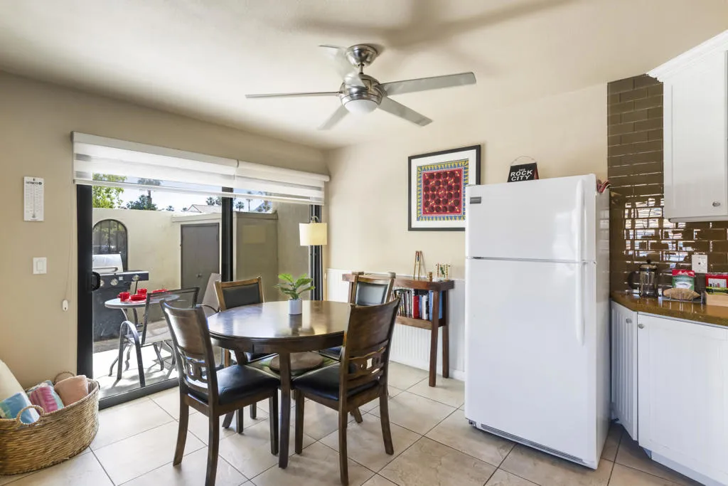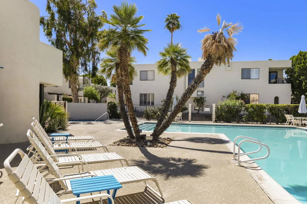 Welcome to this beautifully and fully renovated condo in the heart of Palm Desert, just steps from the iconic El Paseo. This is a rare opportunity to own a move-in ready residence in one of the most walkable and desirable locations in Palm Desert, where luxury shopping, dining, and desert lifestyle all come together. Perfectly suited for short term rental or personal use, the property has a proven STR history and offers strong income potential. Guests and owners are drawn to the easy access to restaurants, boutiques, and entertainment just steps away. The interior features a thoughtful layout with modern finishes throughout. The upstairs bathroom is spacious, refreshed and designed to serve both bedrooms comfortably. A stacked washer and dryer is conveniently located on the bedroom level. Outdoor living is a highlight with a private walled front patio, perfect for dining, BBQ or relaxing in privacy. And take in great views from the balcony off the bedroom. Enjoy resort style amenities, including a sparkling pool, spa, tennis courts and a community game room, creating lifestyle and vacation/rental appeal. Located just minutes from Palm Springs International Airport, world class golf and entertainment venues including Acrisure Arena and the McMalluum, this home offers exceptional convenience in the Coachella Valley. Perfect income producing investment, serene desert escape or full time residence, this condo offers effortless Palm Desert living in one turnkey package.