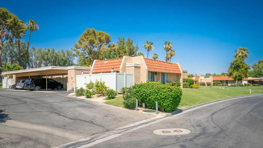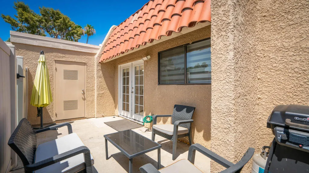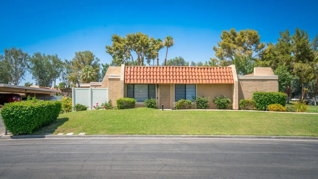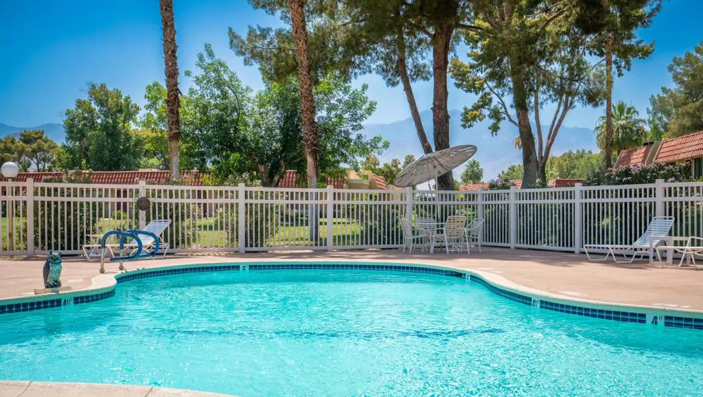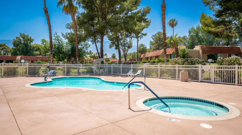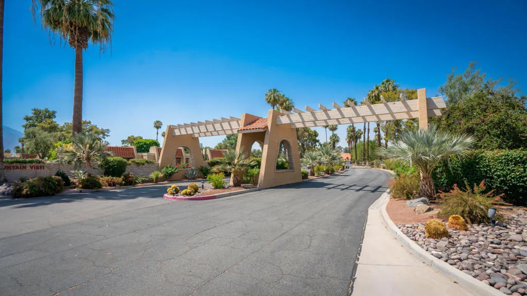 This charming condominium is located in a picturesque gated community. Features three bedrooms and two bathrooms, and you OWN THE LAND! The living room displays a gorgeous view of the surrounding mountains. This end unit has green belts and is a perfect space for quiet, comfortable living. Just steps away from the community pool. It also offers an enclosed private patio with access to two assigned parking spaces. Remodeled master bathrooms with dual sinks and a shower. The condo is being offered furnished, including a refrigerator, washer, and dryer. The community holds many possibilities in terms of fun activities. It provides multiple pools with spas and tennis courts for the active person. For those who prefer more luxurious options, this condo is near the restaurants, stores, and a movie theater in The River outdoor mall. This is the perfect place to call home!
