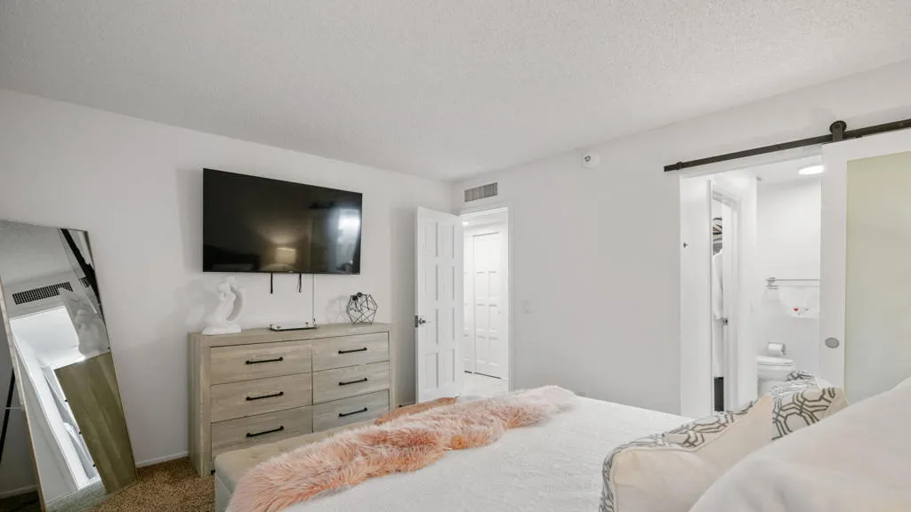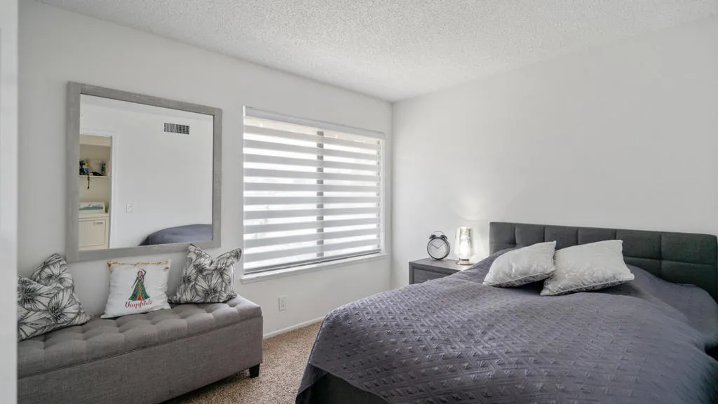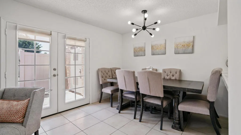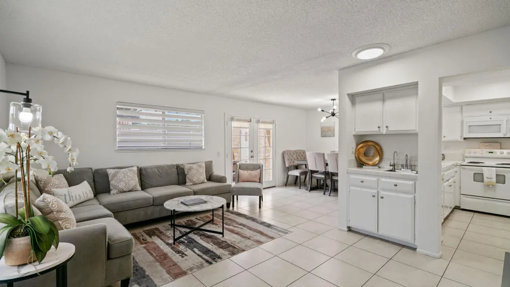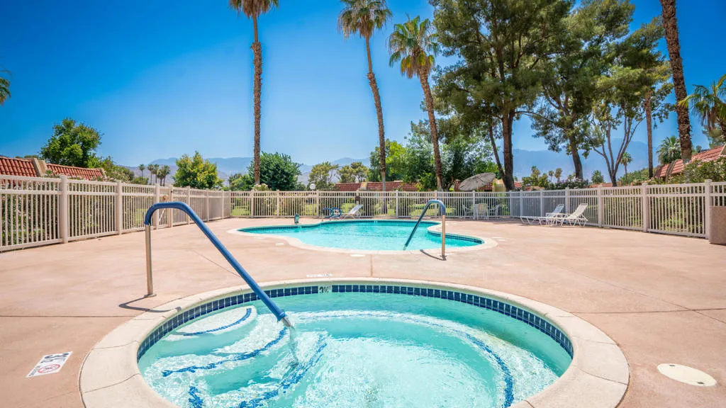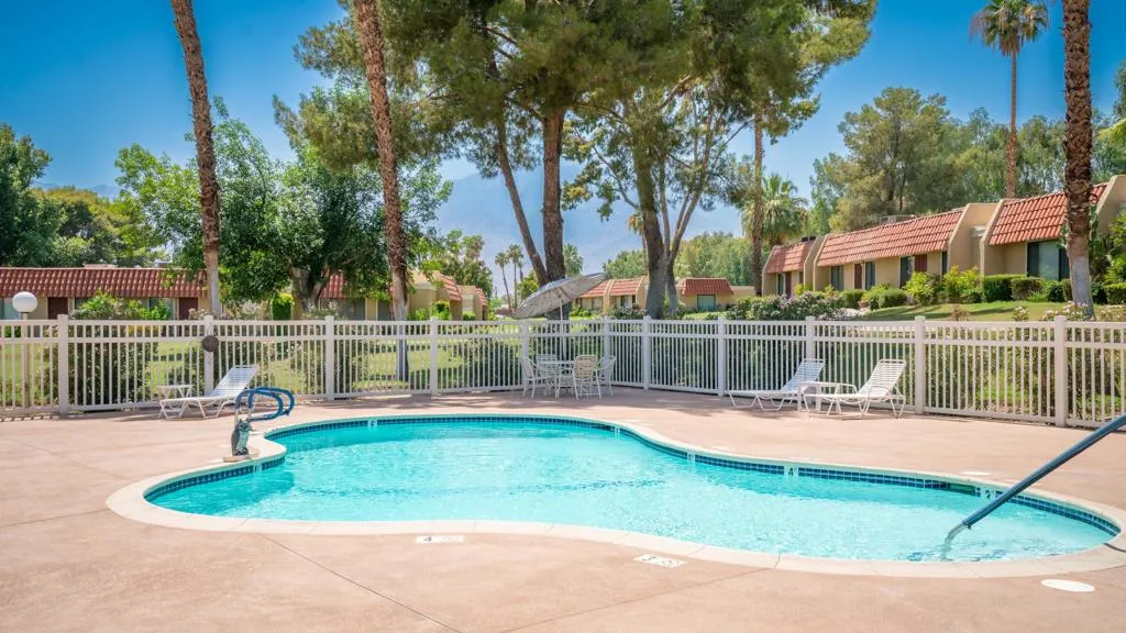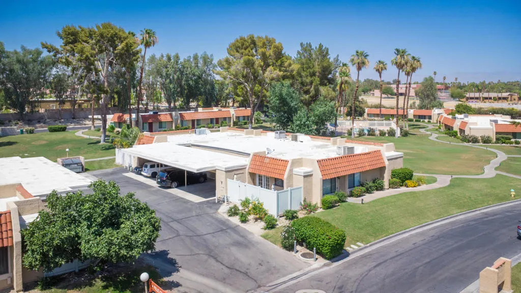 This charming condominium is located in a picturesque gated community. Features three bedrooms and two bathrooms, and you OWN THE LAND! The living room displays a gorgeous view of the surrounding mountains. This end unit has green belts and is a perfect space for quiet, comfortable living. Just steps away from the community pool. It also offers an enclosed private patio with access to two assigned parking spaces. Remodeled master bathrooms with dual sinks and a shower. The condo is being offered furnished, including a refrigerator, washer, and dryer. The community holds many possibilities in terms of fun activities. It provides multiple pools with spas and tennis courts for the active person. For those who prefer more luxurious options, this condo is near the restaurants, stores, and a movie theater in The River outdoor mall. This is the perfect place to call home!