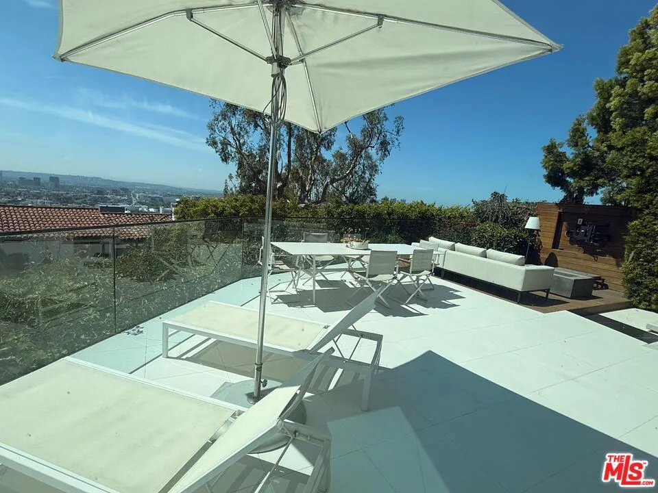 Nestled at the end of a quiet cul-de-sac just moments from Sunset Boulevard, this exceptional furnished summer lease offers a rare blend of privacy, sophistication, and sweeping panoramic views. Revamped in 2019 with impeccable attention to detail, the residence captures breathtaking vistas of the city skyline, Pacific Ocean, and Hollywood Hills from nearly every room. Designed for effortless indoor-outdoor living, dramatic floor-to-ceiling glass walls open to a resort-style pool and spa, creating a seamless flow for relaxing and entertaining. Above, an expansive rooftop deck with a full outdoor kitchen and gas fire pit provides the ultimate setting for sunset dining and warm summer nights under the stars. The sleek Italian-designed kitchen is appointed with premium German appliances and opens to airy living and dining spaces centered around a striking fireplace, offering both style and comfort. The primary suite is a true private sanctuary, featuring spectacular views, a personal balcony, fireplace, spa-like bath with soaking tub and oversized steam shower, and a custom walk-in closet.Additional features include smart home technology, a high-security system, artistic stairwell lighting by Nara, a built-in office with panoramic city views, a bonus room, and a two-car garage. Set just minutes from premier dining, shopping, luxury hotels, and entertainment, this one-of-a-kind residence offers an elevated summer lifestyle in one of Los Angeles' most desirable settings. Property is available from May thru August.