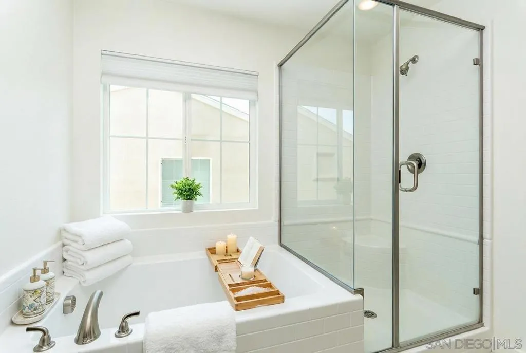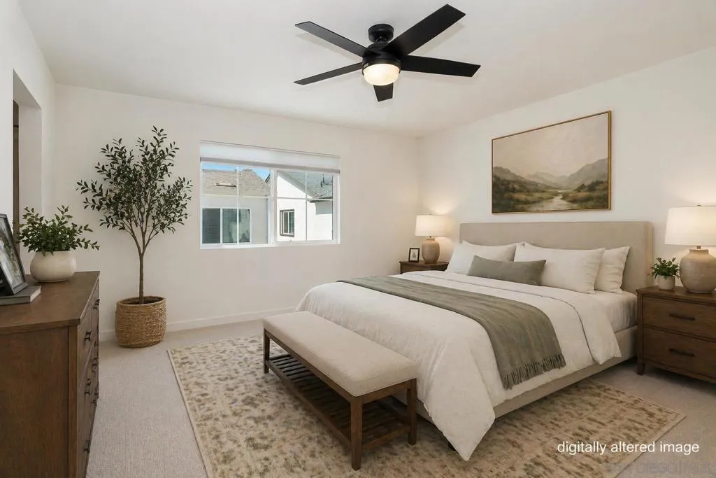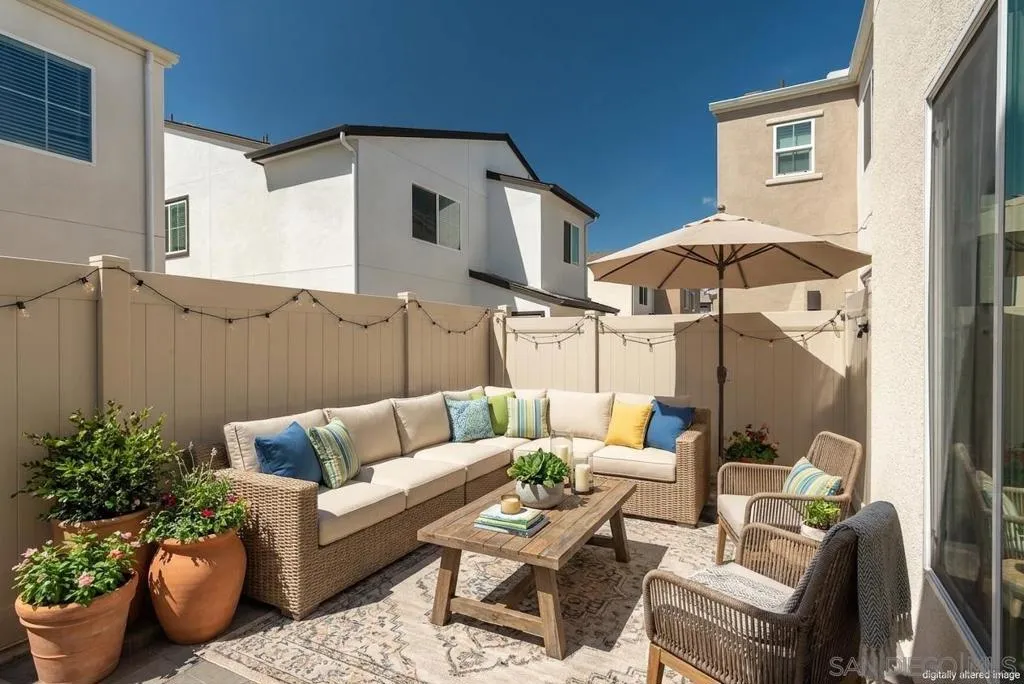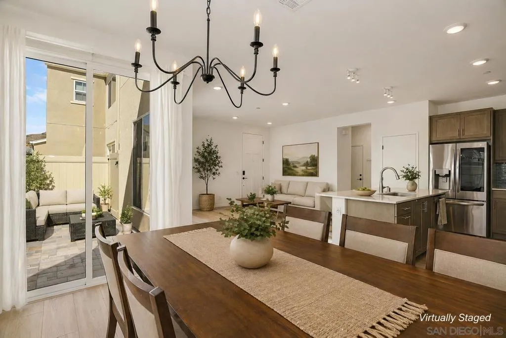 Welcome to Citro, one of North County’s most vibrant and thoughtfully designed newer communities. Built in 2023, this stunning floor plan is one of the largest models available with 1668 sqft of living space, offering more space, functionality, & flexibility than other homes in the community. This home truly lives like new, showcasing pride of ownership with its excellent condition throughout, giving buyers the feel of new construction without the wait, added costs, or builder timelines. Step outside to your private backyard, where the seller has installed beautiful pavers, creating a clean, low maintenance outdoor space that’s perfect for entertaining, relaxing, or enjoying San Diego’s year round weather without the upkeep of traditional landscaping. Inside, you’ll find a thoughtfully designed layout featuring 4 spacious bedrooms & 2.5 bathrooms, ideal for both everyday living & hosting guests. The primary suite includes a walk in closet, giving you ample storage & organization space, something buyers highly value for both comfort & functionality. The 2 car garage adds convenience with a Tesla EV charger & valuable storage space as well. This home is equipped with smart home technology, offering added convenience, security, & efficiency, along with owned solar, helping reduce monthly energy costs & protect against rising utility rates over time. The tankless water heater is another modern upgrade, providing energy efficiency & endless hot water while saving space. Living in Citro means enjoying resort style amenities including a pool, spa, clubhouse, & dog park, all designed to enhance your lifestyle & create a true sense of community. In addition, the area features scenic walking trails & parks, perfect for staying active & enjoying the natural surroundings. Location is key, & this home offers easy freeway access, making commuting more convenient while still enjoying the peaceful setting of the community. With its modern construction, premium upgrades, & access to incredible amenities, this home offers the perfect blend of comfort, efficiency, & lifestyle.