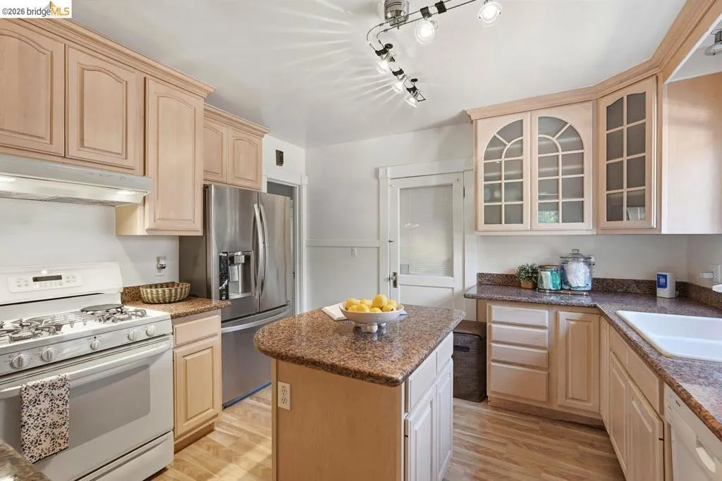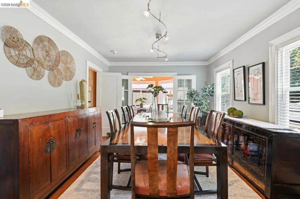Nestled in the sought-after Crocker Highlands neighborhood, is an exceptional home at 1134 Chatham offers timeless charm, generous space, and an unbeatable location—all attractively priced at $1.149M. With over 1,800 square feet, this residence blends classic character with comfortable living, just moments from Lakeshore Avenue, Lake Merritt, and Grand Avenue. From the moment you enter, you’re welcomed by a stunning staircase that serves as the architectural centerpiece of the home, connecting the main and upper levels with elegance. Natural light pours through the stairwell window, illuminating the expansive landing that leads to three bedrooms, a dedicated office, and a spa-inspired bathroom. This luxurious bath features custom stonework, a sunken jetted soaking tub, and a separate shower with an element of steam shower creating a serene, luminous retreat. Upstairs, the thoughtful layout offers the potential for a bathroom-to-bedroom configuration change, allowing for added flexibility and customization to suit your needs. All the bedrooms are spacious and bright. The master bedroom has a custom designed dressing closet parlor to add to the original closet. The main level is designed for both comfort and entertaining. A gracious, sun-filled living room flows seamlessly into the formal dining room, while a charming breakfast nook provides an inviting space for casual meals and easy access to the outdoor patio area. The kitchen serves as the heart of the home, complete with stone countertops, a central island, ample cabinetry, and well-maintained appliances. Just off the kitchen, a convenient quarter bathroom adds extra functionality for guests and everyday living. Step outside to a beautiful travertine patio coupled with fireplace is perfect for relaxing or hosting gatherings. The area is fenced in making cozy and private Combined with its prime walkable location and classic appeal, this Crocker Highlands gem is a rare opportunity not to be missed.