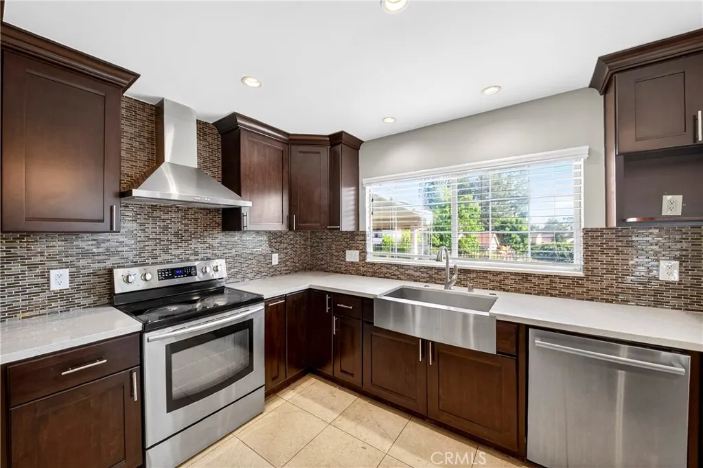 Experience the perfect blend of comfort and style in this beautifully upgraded William Lyon Plan 5 home, located in the highly desirable Westbluff community of Fullerton. Surrounded by mature trees and set in a peaceful, natural setting, this exceptional split-level residence offers quality upgrades and a warm, inviting atmosphere. Featuring 4 bedrooms and 2.5 bathrooms, the home offers soaring ceilings, an open-concept layout, and abundant natural light. The inviting living room flows into a step-down family room with an upgraded fireplace—ideal for everyday living and entertaining. The spacious kitchen is well-appointed with quartz countertops, a custom backsplash, upgraded cabinetry, stainless steel appliances, and a breakfast bar. A formal dining area overlooks the serene backyard, perfect for gatherings. Wood and tile flooring enhance the main level and staircase, while the bedrooms feature brand-new laminate flooring. The primary suite includes a walk-in closet, enclosed shower, peaceful tree-lined views, and beautiful sunset vistas. All three bathrooms have been tastefully updated. Additional features include crown molding, recessed lighting, new light fixtures, plantation shutters, scraped ceilings throughout, and security cameras. Enjoy professionally landscaped grounds and a private backyard with stone accents and a large custom covered patio with recessed lighting—ideal for relaxing or entertaining. Additional highlights include direct access to a 2-car garage and access to resort-style community amenities, including pools, spas, tennis courts, basketball courts, playgrounds, and RV parking. Conveniently located near top-rated schools (Fern Drive Elementary, Parks Junior High, and Sunny Hills High), as well as shopping, dining, golf courses, and parks. A rare opportunity to lease a highly upgraded home in one of Fullerton’s most sought-after communities.