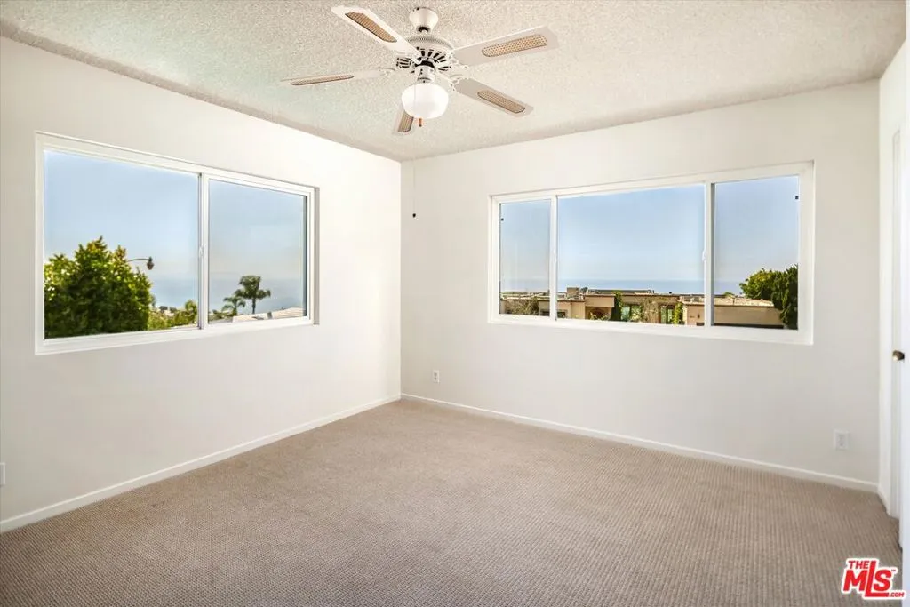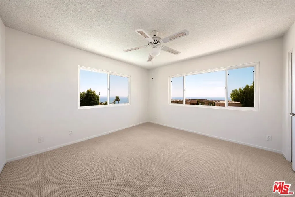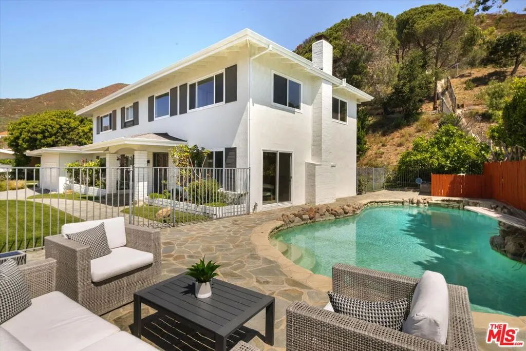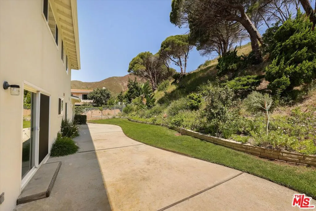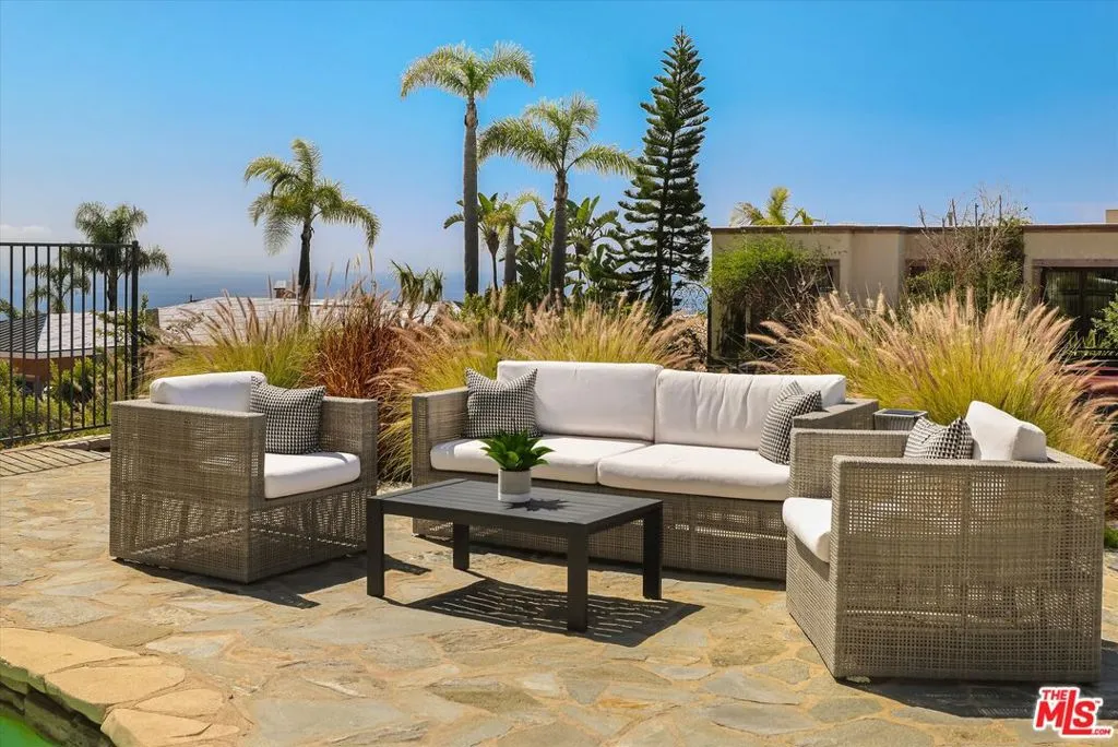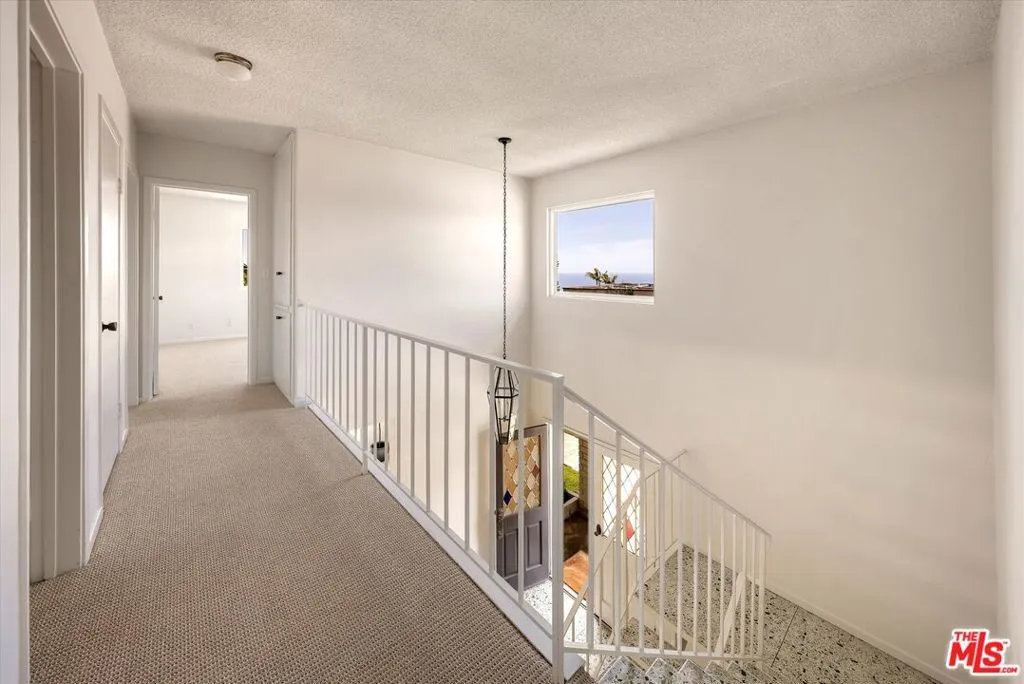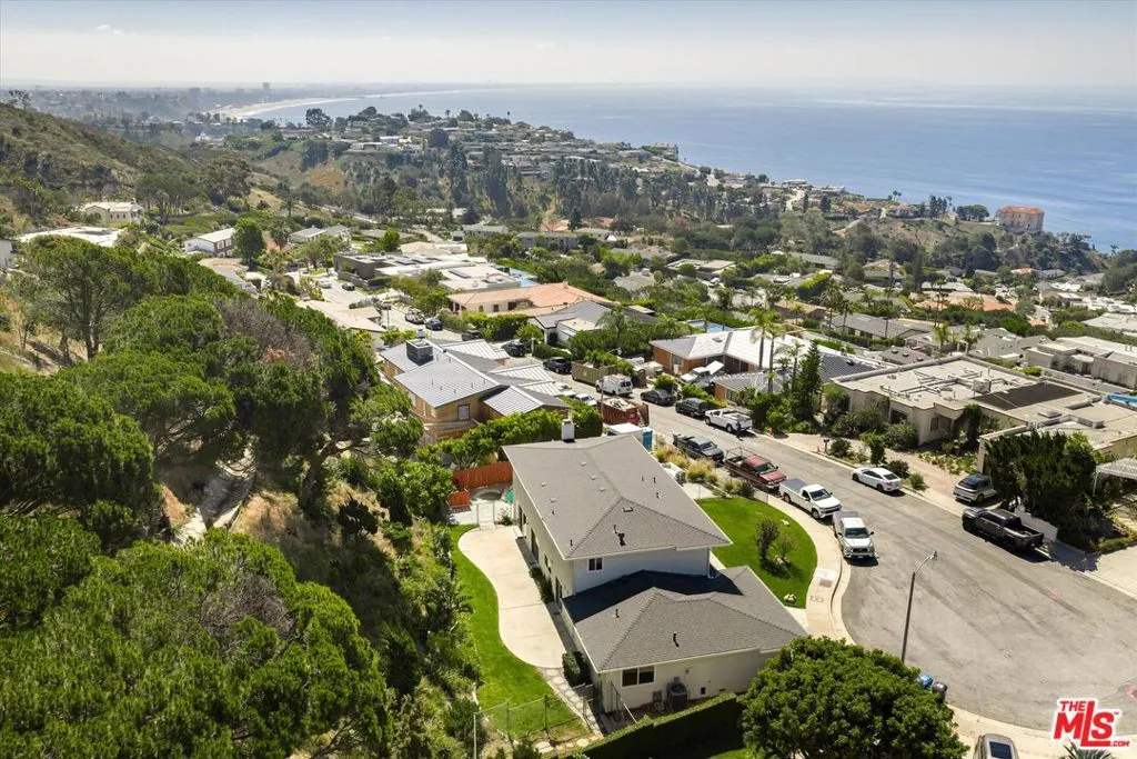 A beautiful setting, wonderful ocean views, a new roof and gutter system and an enhanced presentation make this a unique opportunity in the sought-after Pacific View Estates neighborhood. Located on a flat cul-de-sac less than a mile from the beach, this lovely 5 bedroom, 3.5 bath Traditional with pool and spa is approximately 3,158 square feet and is situated on a lot of about 25,574 square feet. The lower level includes a living room with fireplace, formal dining room, spacious kitchen, laundry room, two baths and a large bedroom that can serve as a family room or fifth bedroom. Terrazzo floors and steps lead to the upper level which includes 4 bedrooms and 2 baths, including two bedrooms with serene ocean views. The rear and side yards are spacious, and the pool and spa area is ideal for outside entertaining. This property presents a rare offering for an owner who appreciates a substantial home on a large lot and enjoys the privacy and serenity this exclusive area of the Palisades has to offer.