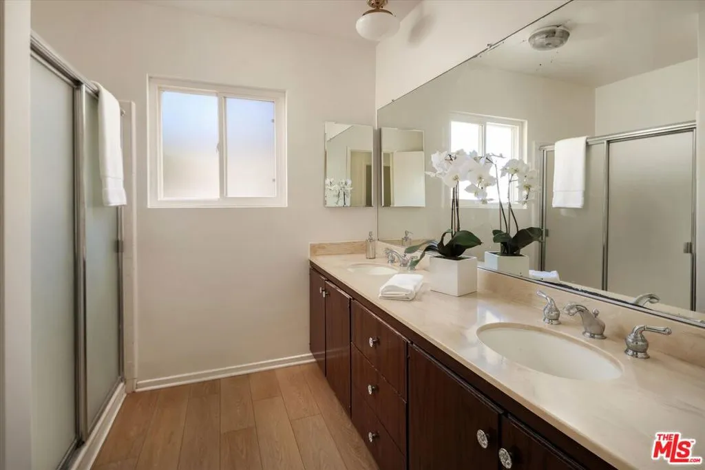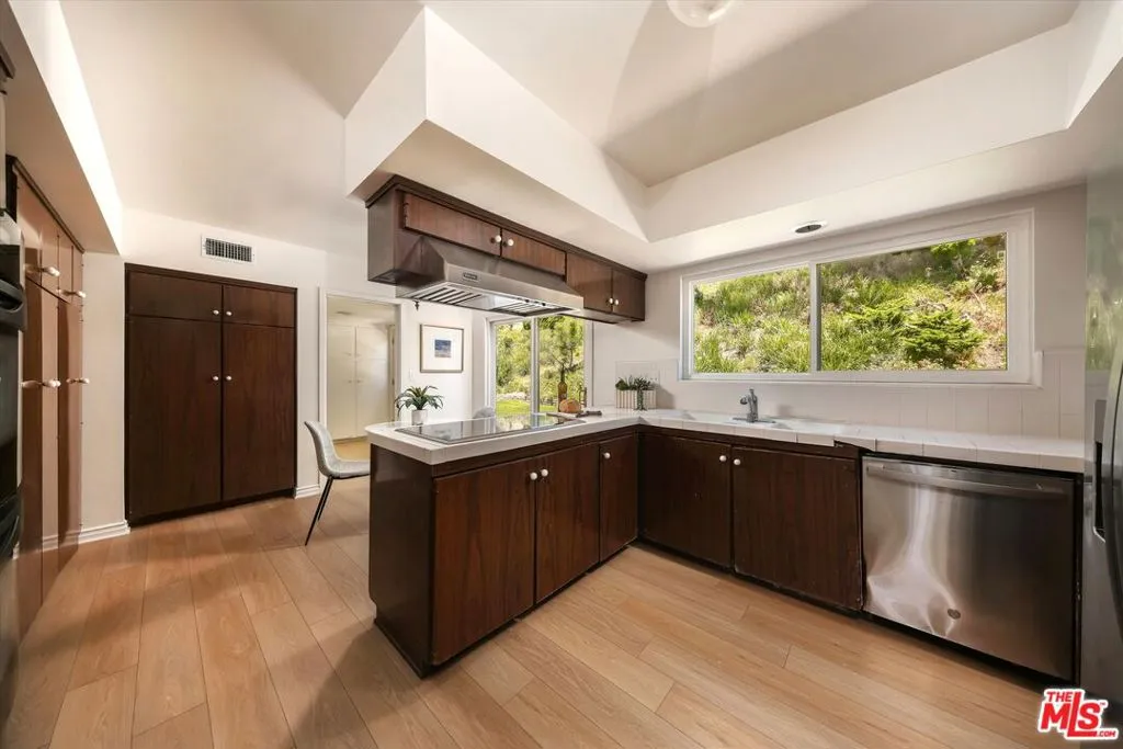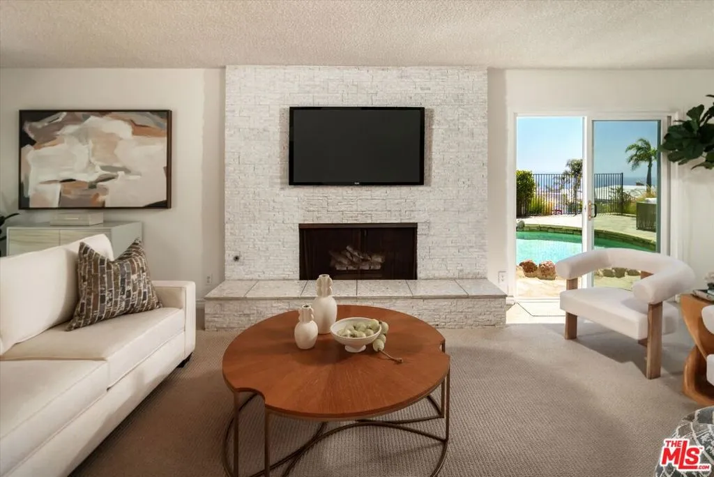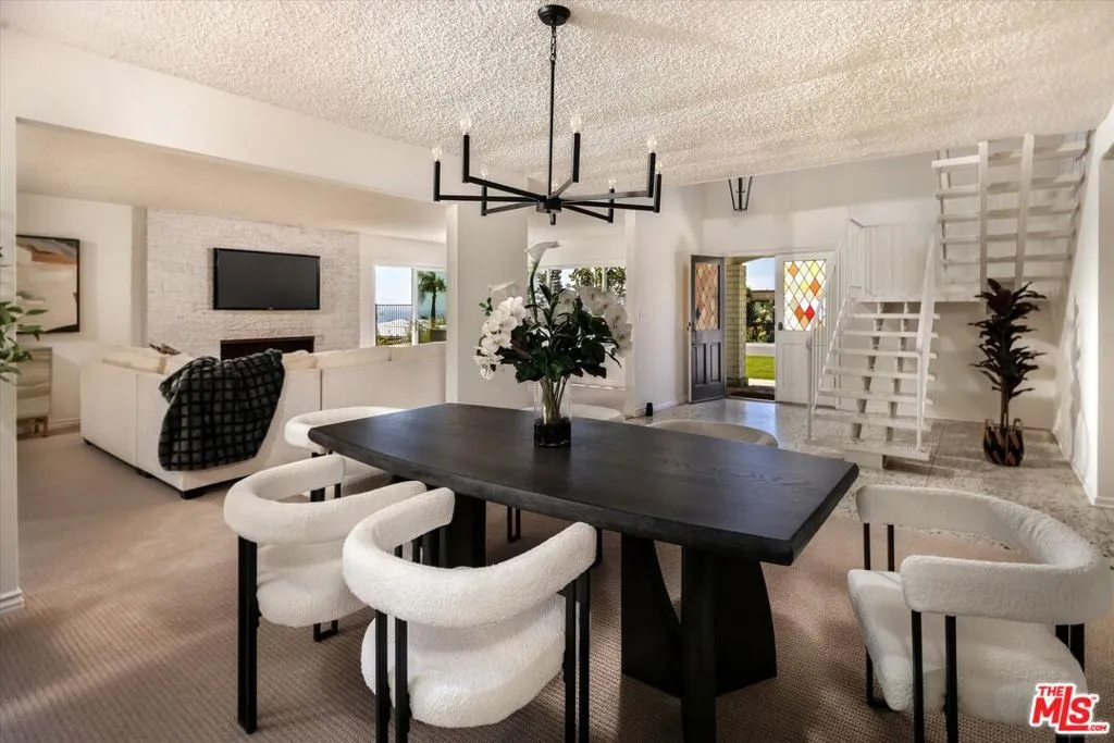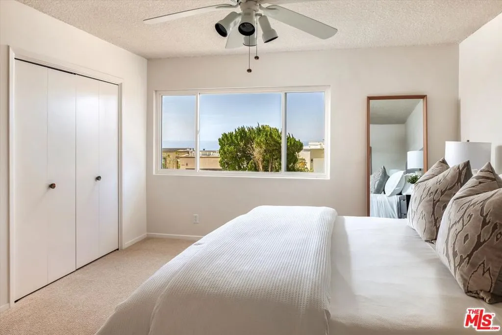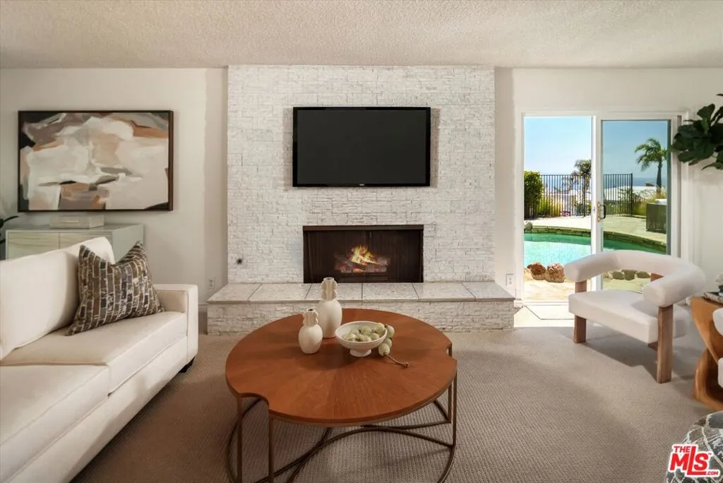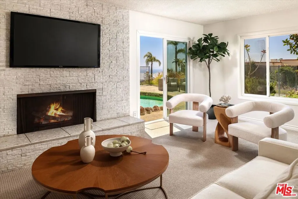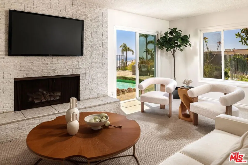 A beautiful setting, wonderful ocean views, a new roof and gutter system and an enhanced presentation make this a unique opportunity in the sought-after Pacific View Estates neighborhood. Located on a flat cul-de-sac less than a mile from the beach, this lovely 5 bedroom, 3.5 bath Traditional with pool and spa is approximately 3,158 square feet and is situated on a lot of about 25,574 square feet. The lower level includes a living room with fireplace, formal dining room, spacious kitchen, laundry room, two baths and a large bedroom that can serve as a family room or fifth bedroom. Terrazzo floors and steps lead to the upper level which includes 4 bedrooms and 2 baths, including two bedrooms with serene ocean views. The rear and side yards are spacious, and the pool and spa area is ideal for outside entertaining. This property presents a rare offering for an owner who appreciates a substantial home on a large lot and enjoys the privacy and serenity this exclusive area of the Palisades has to offer.