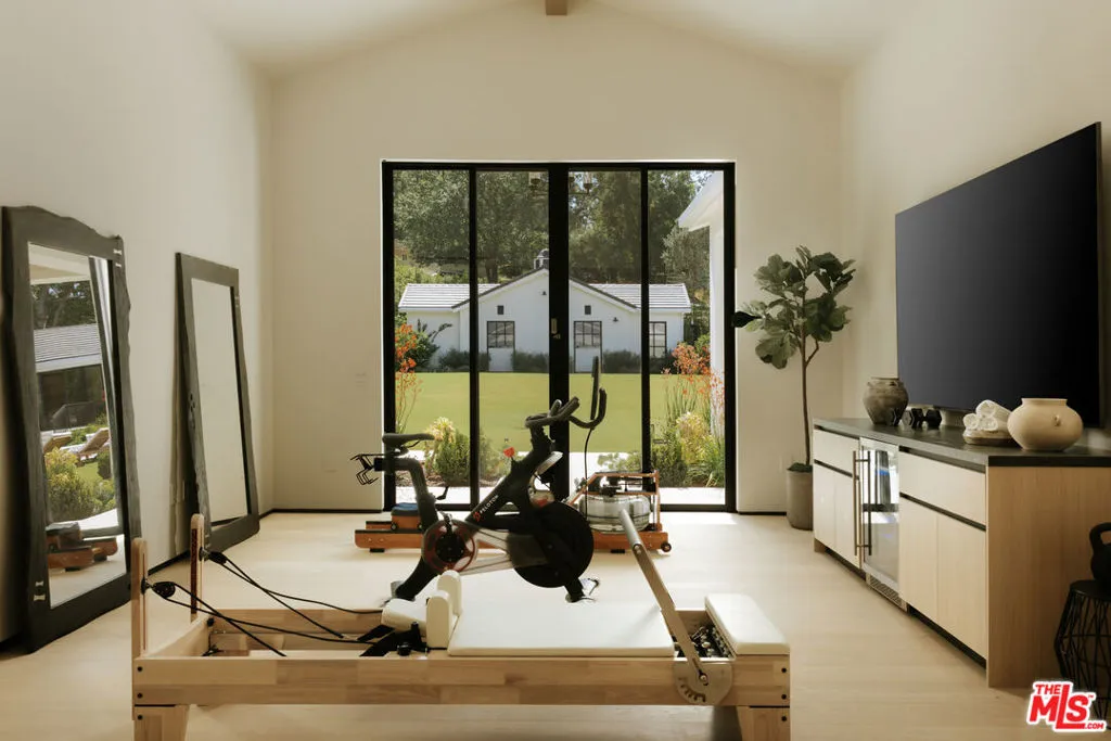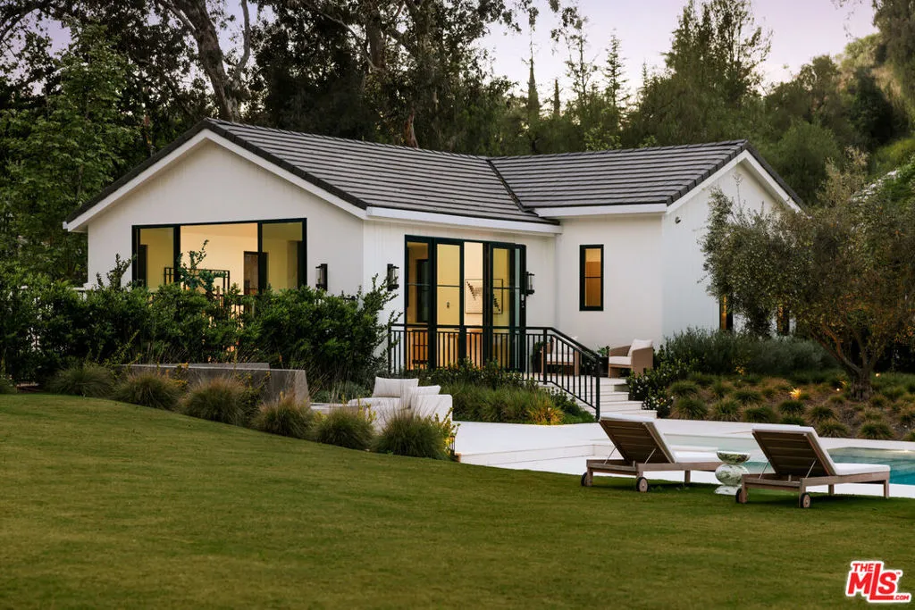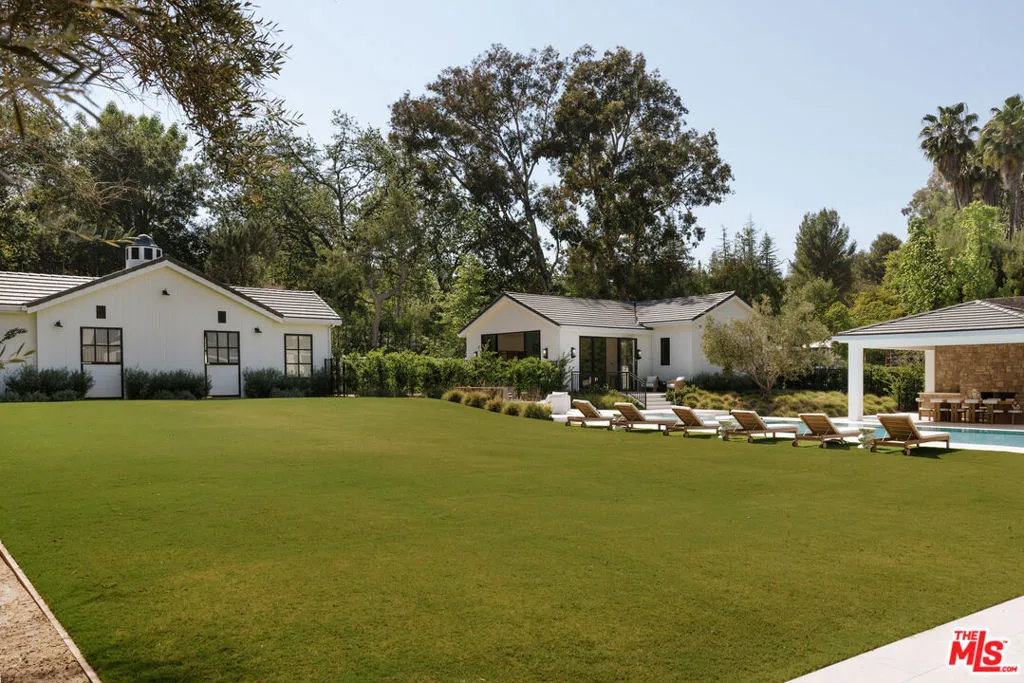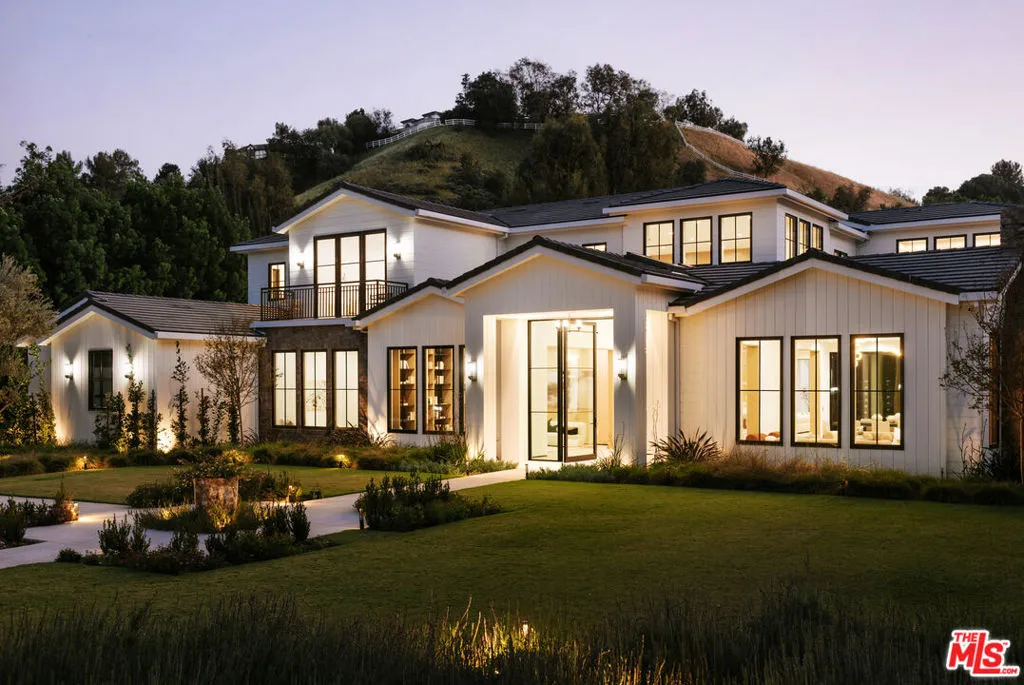 Within the coveted guard gated enclave of Hidden Hills, this newly constructed estate is a study in quiet luxury, where architectural elegance meets a refined modern sensibility. The residence unfolds with intention, offering 7 bedrooms and 8 baths in a layout that feels both grand and deeply livable. A striking double height entry introduces a sequence of light filled spaces defined by clean lines, soaring ceilings, and curated finishes. The formal living and dining rooms evoke a gallery like scale, while the family room is warm and inviting, seamlessly opening to a chef's kitchen of exceptional design. An oversized island, bespoke cabinetry, and a fully appointed prep kitchen create a culinary setting that is as beautiful as it is functional. Every element has been thoughtfully considered. A private office offers quiet focus and a wellness suite with gym and sauna provide spaces for restoration and retreat. Upstairs, the primary suite is expansive and serene, with dual spa inspired baths, generous dressing rooms, and a private terrace overlooking the grounds. The outdoor experience mirrors the home's refined aesthetic. Covered loggias, layered entertaining spaces, and a resort caliber pool and spa are surrounded by lush landscaping, creating an atmosphere that feels both elevated and effortless. An elevator, horse stables, four car garage, and beautifully appointed guest accommodations complete the offering. This is a home defined by nuance and restraint, designed for those who value craftsmanship, proportion, and the art of living well in one of Southern California's most exclusive communities. The annual HOA fee will be adjusted based on the sale price, at a rate of $0.0025 per dollar per year. Stable: 573.58 sq. ft. Garage: 1,104.6 sq. ft. ADU: 1,107.25 sq. ft. (Note: Stable, Garage, and ADU square footage, as well as ADU bedrooms and bathrooms, are not included in the total livable square footage.)
