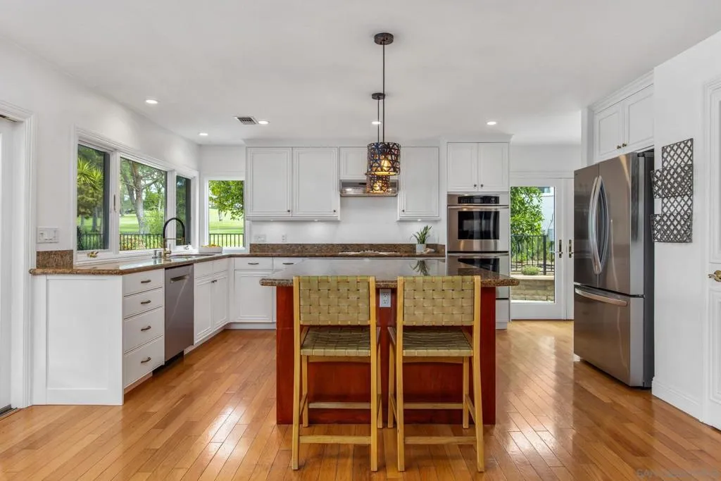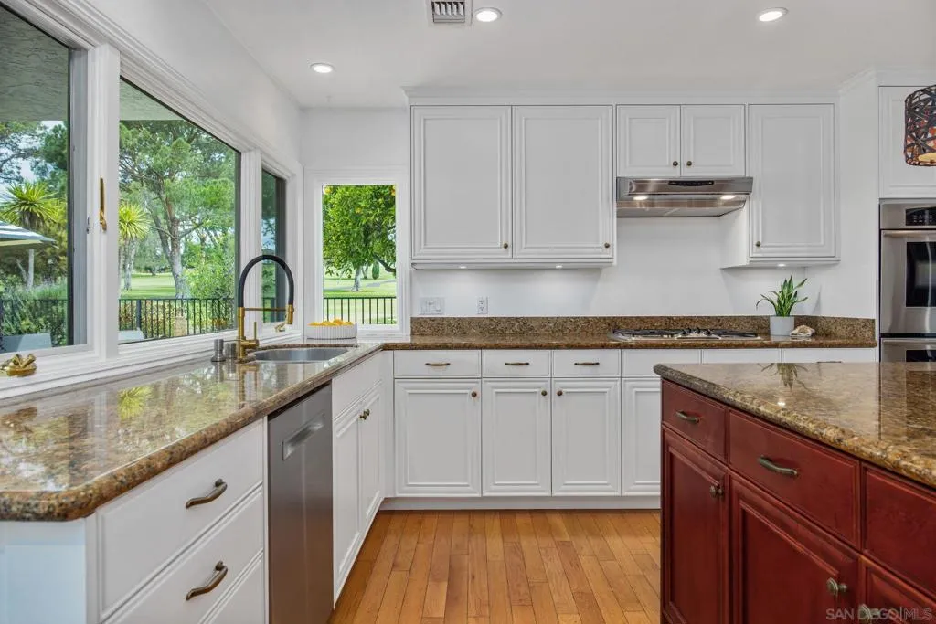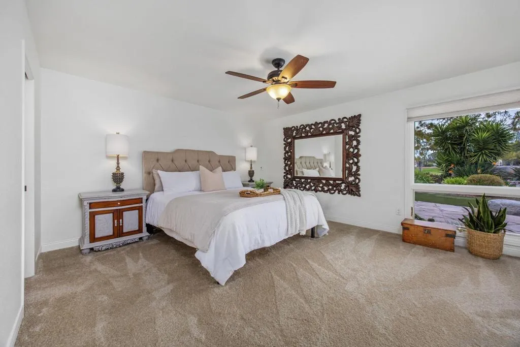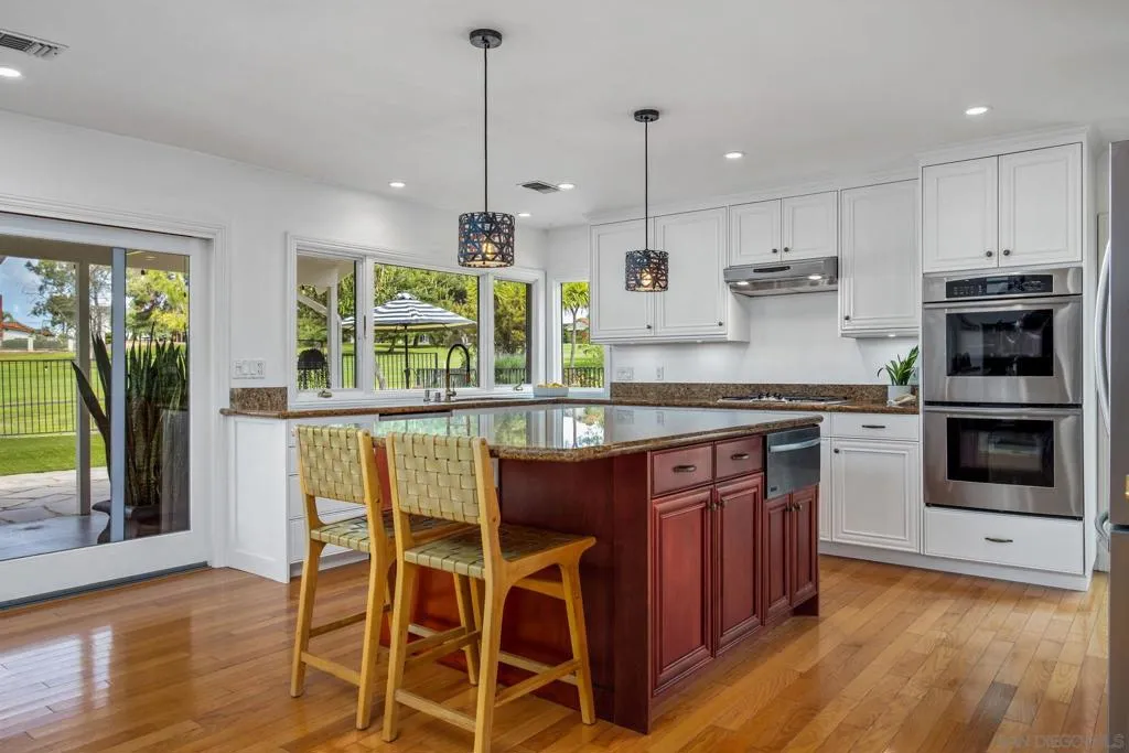 Don’t miss this beautiful 3-bed, 2-bath single-story home ideally located along side the highly sought-after Country Club of Rancho Bernardo! This is a rare opportunity to live on a perfectly situated, quiet street at the 14th tee of the private golf course. Enjoy peaceful and scenic fairway views from the magnificent backyard. Exceptionally landscaped exterior features drip irrigation, flagstone, artificial turf, & a covered patio ideal for relaxing as well as entertaining. A light and bright open-concept layout provides natural flow between the living room, dining area, and kitchen. This home has been meticulously maintained. Just some of many recent improvements include: new exterior paint, refinished kitchen cabinets, new carpet, updated lighting inside and out, expanded driveway for up to 6-car parking, fencing, and new water heater – reflecting pride of ownership throughout. Access to the Rancho Bernardo Swim & Tennis Club comes with numerous amenities: two swimming pools, 7 tennis and 8 pickleball courts, saunas, hot tubs, fitness center, playground, basketball court, racquetball courts, and more! Also conveniently located close to hiking trails, the Rancho Bernardo Inn, Bernardo Winery, and top-rated Poway Unified schools. This home offers tranquility, access to recreational fun, and a lovely sense of community in one of the most desirable locations.