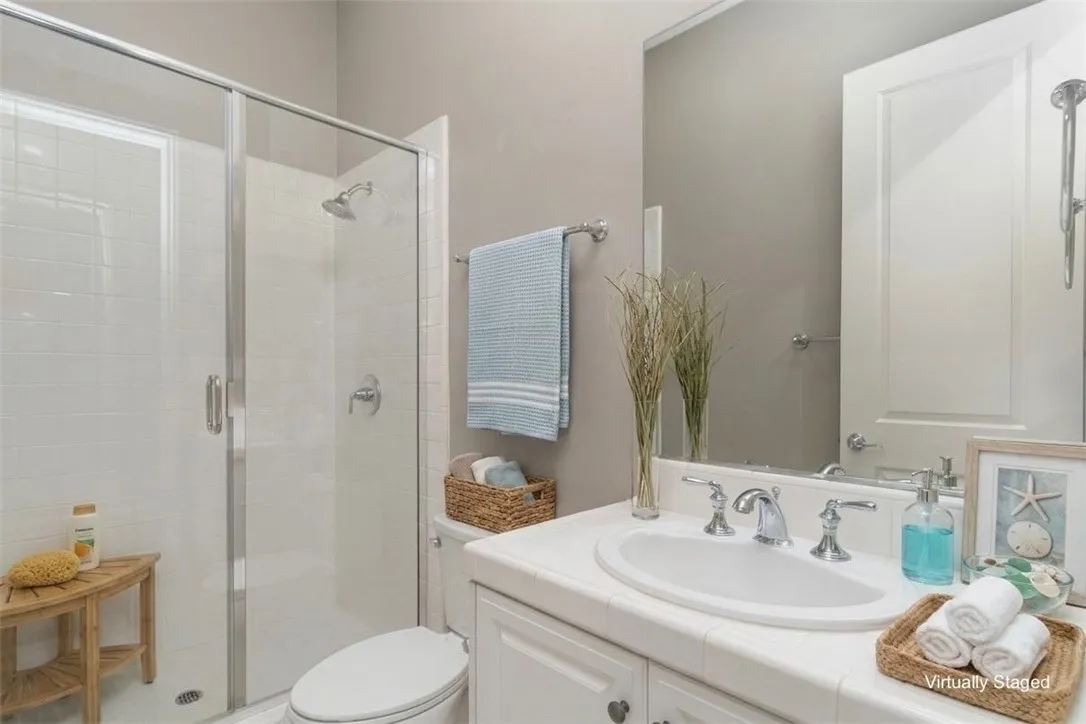 Experience seamless indoor-outdoor living in this coveted single-story residence, perfectly positioned on a premier lot adjacent to a tranquil greenbelt in Carlsbad’s Robertson Ranch. The open-concept floor plan is anchored by soaring ceilings and a sliding glass door system, designed for effortless entertaining and step-free movement throughout the home. Infused with natural light from the expansive windows and ceilings makes the open-concept great room the home’s centerpiece, seamlessly integrating lounging, dining, and culinary features with direct backyard access for the ultimate Southern California lifestyle. The kitchen boasts an oversized center island, professional 6-burner cooktop, built-in refrigerator, walk-in pantry, and a reverse osmosis water system. The primary suite offers a light-filled private retreat with trey ceiling, an ensuite bathroom with dual-sink vanity, an expansive walk-in shower with bench seating, and a custom-organized wardrobe closet. Two additional bedrooms each feature dedicated bathrooms providing privacy and comfort. The low-maintenance backyard provides a private outdoor oasis with professional landscaping, a travertine tile patio, and premium artificial turf. Interior upgrades include designer woodgrain flooring (no carpet), tailor-made window shades, and custom cabinetry in the laundry and dressing areas. Modern essentials include a whole-house water softener, dedicated laundry room, and a direct-access two-car garage. Residents of Robertson Ranch enjoy exclusive access to “The Oasis” featuring a multi-purpose room, large pool, spa, separate children’s pool, cabanas, and BBQ areas. The neighborhood is surrounded by walking trails, lush greenbelts, multiple parks and is minutes from Carlsbad Village, local beaches, Agua Hedionda Lagoon, and a variety of entertainment venues, shopping, and dining experiences.