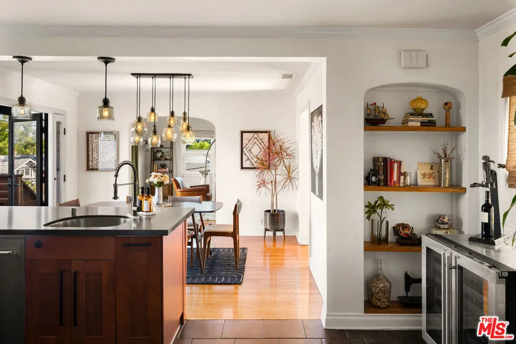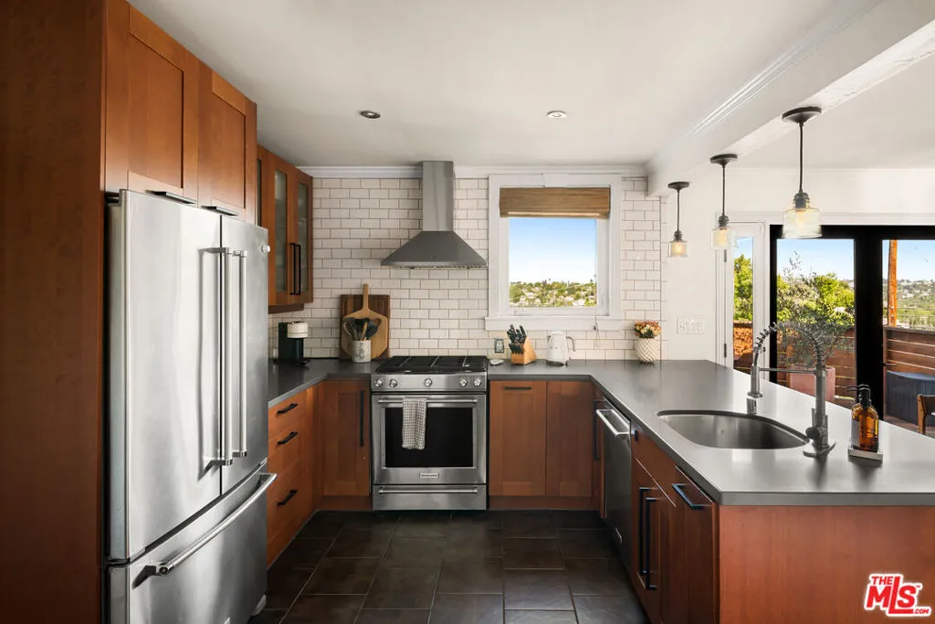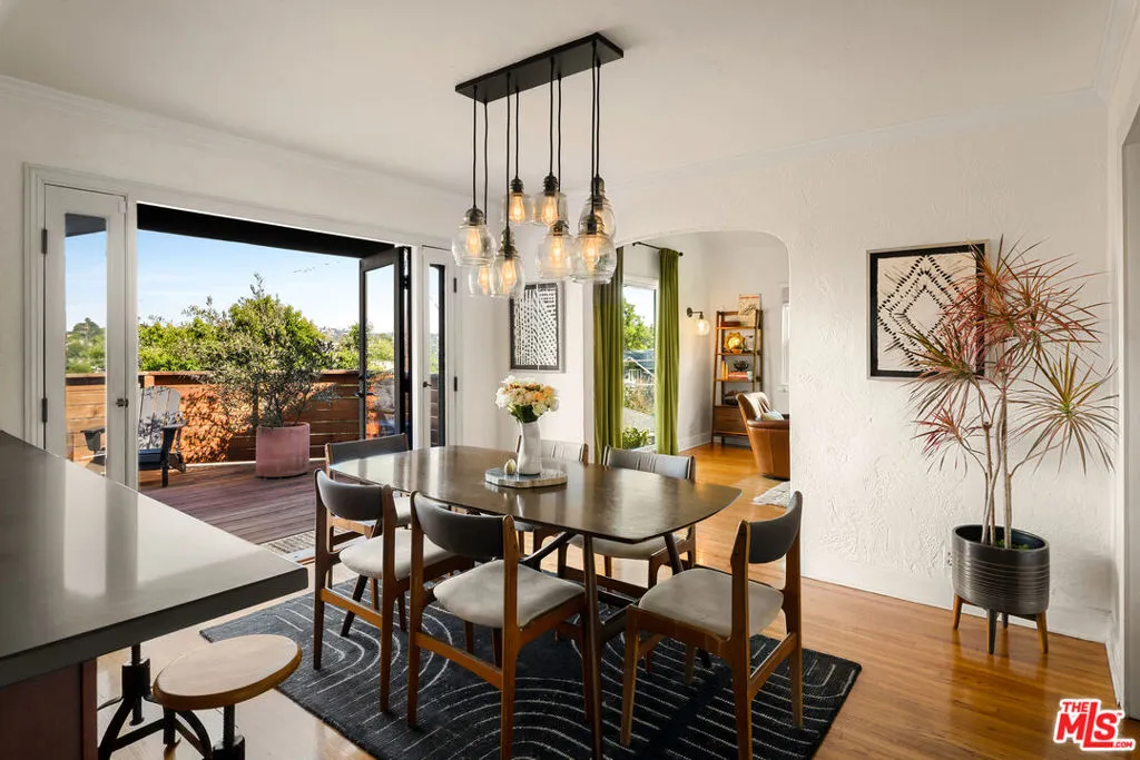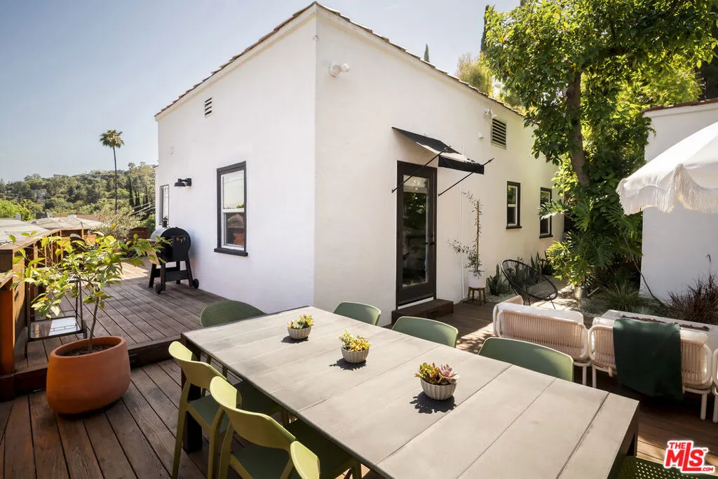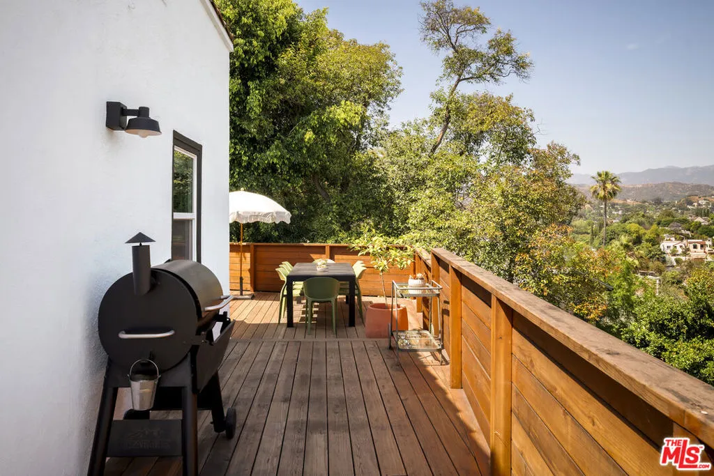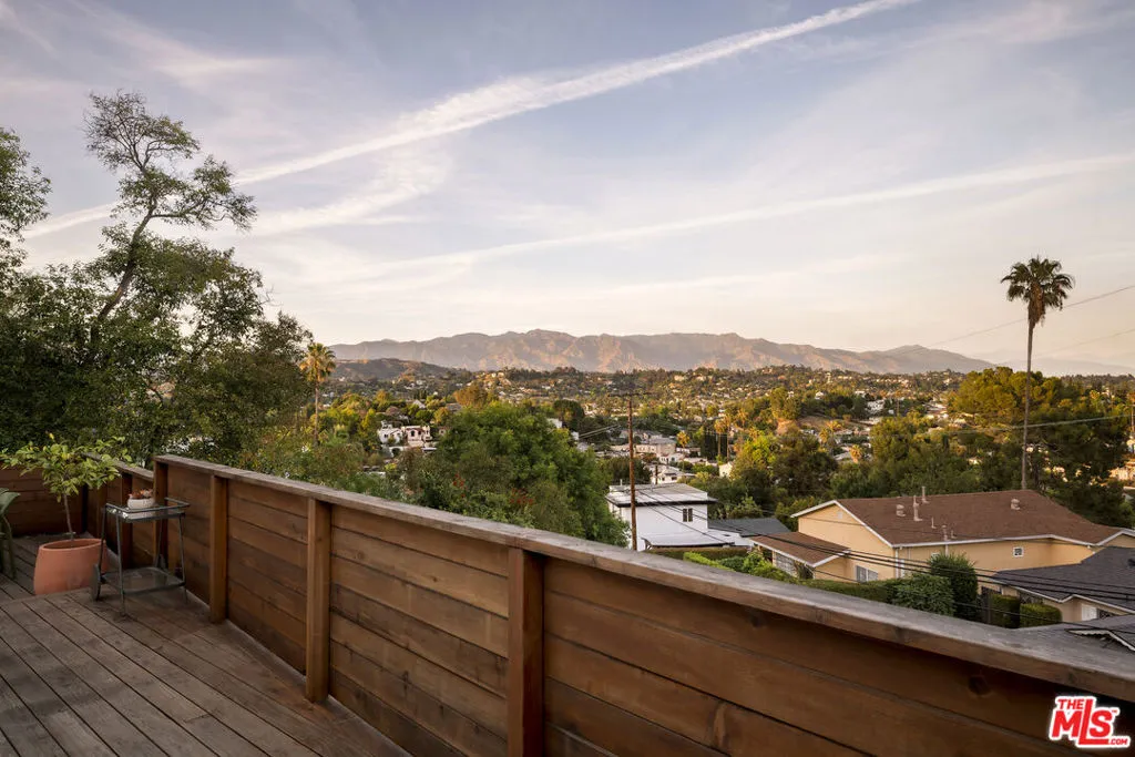 Perched in the hills of Mount Washington on a corner lot, this enchanting 2-bedroom, 2-bath home blends timeless Spanish character with thoughtful modern updates. Bathed in natural light, the home offers stunning views of the San Gabriel Mountains from nearly every room, creating a serene backdrop for daily living. Rich in classic Spanish charm, the residence features warm architectural details (hello arches), plus an inviting single level layout. A grand living room with cathedral style vaulted ceilings is anchored by a timeless fireplace. The updated kitchen is equipped with newer appliances and looks out on to both a breakfast bar and a true well sized dining room. The primary suite opens up to one of the many outdoor spaces, and boasts a brand new renovated en-suite bathroom perfectly styled with Zia tile and designed with original character in mind. Outdoor living is a true highlight, with approximately 600 square feet of decking with multiple seating areas, ideal for entertaining or simply soaking in the views. While the newly landscaped and enclosed yard creates a peaceful, usable outdoor retreat. New expertly engineered retaining walls plus new fencing and electronic entry gates provide structure, elevated curb appeal and privacy. A detached one car garage completes the home offering a great storage option, or even an opportunity for a future ADU or studio. Set within the highly sought-after Mount Washington school district, this home delivers a rare combination of charm, upgrades, and location. A true hillside gem that captures the essence of California living.
