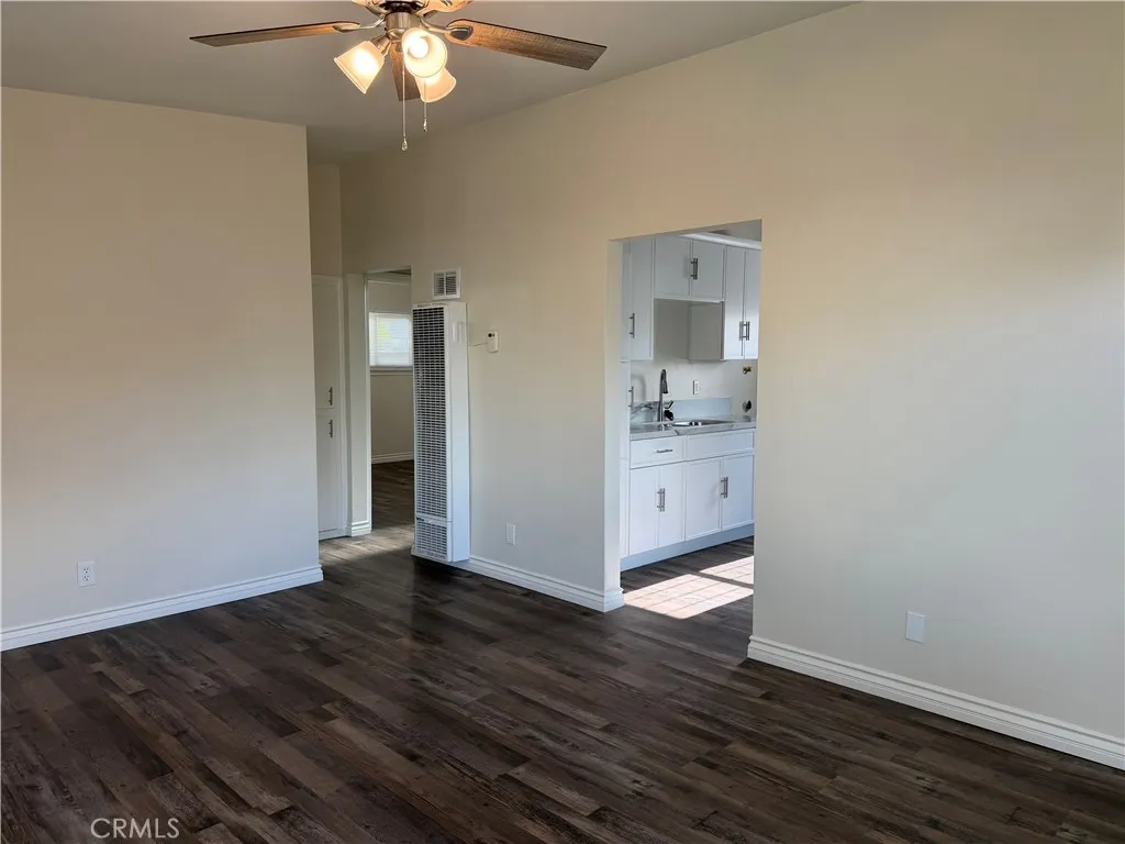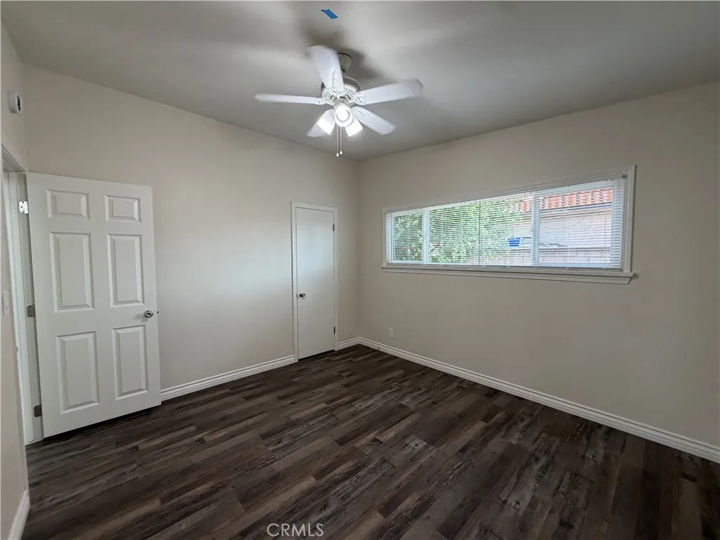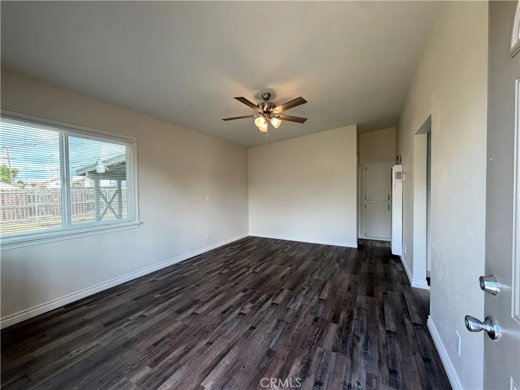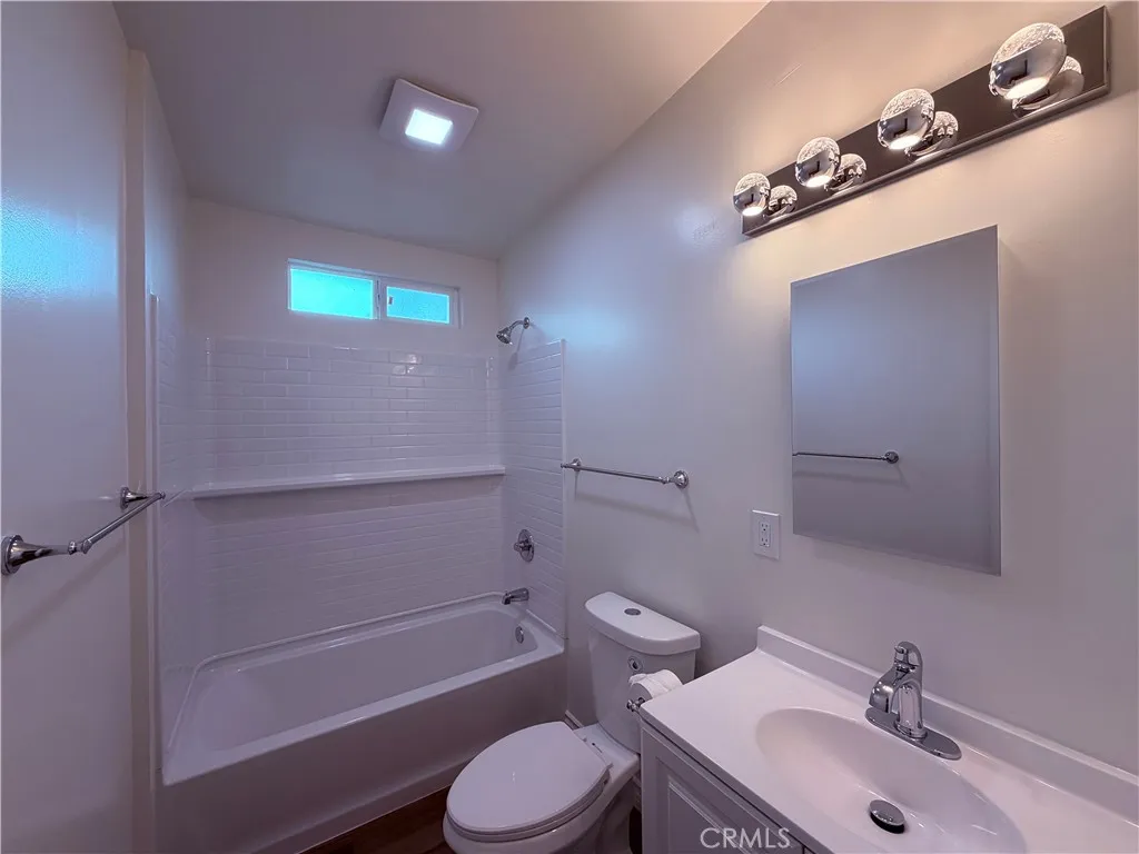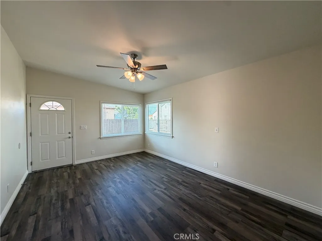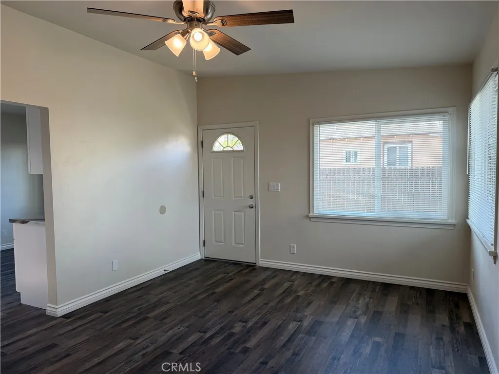 Newly renovated back house available for rent on a shared lot with two homes. This private 2-bedroom, 1-bath unit has been fully updated with modern finishes throughout. The home features a spacious kitchen with brand-new cabinets, countertops, stove, refrigerator, sink, disposal, and faucet—perfect for everyday cooking and entertaining. The bright living room offers recessed lighting and a ceiling fan for added comfort. Both bedrooms include ceiling fans and new blinds, while the entire home is finished with new laminate flooring and dual-pane windows for energy efficiency. The bathroom has been completely remodeled with a new tub/shower, toilet, vanity, fixtures, and lighting—everything is brand new. Additional amenities include washer and dryer hookups ready for a stackable unit, a carport with space for two vehicles, and water and trash services included in the rent. A clean, modern, and move-in-ready home—ideal for comfortable living.
