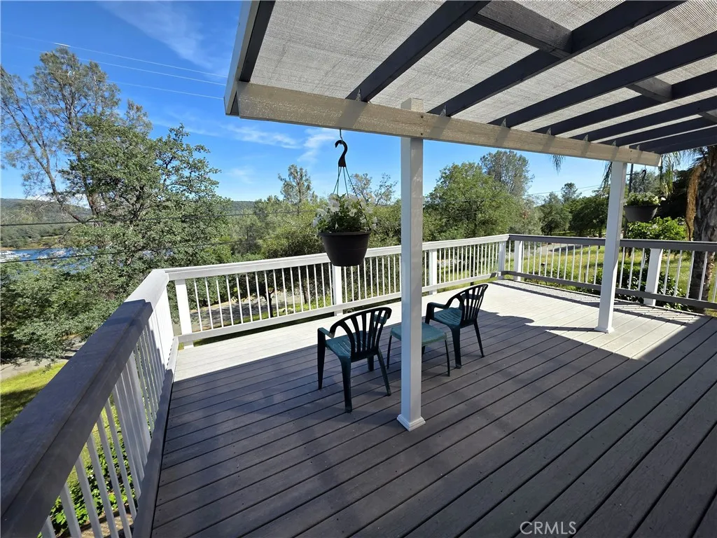 Beautifully upgraded custom home located on the lakeside of Kelly Ridge, offering stunning views of Lake Oroville. This spacious 3-bedroom, 2-bathroom home features approximately 2,132 sq ft of living space with an expanded floor plan that enhances the kitchen, formal dining room, and bedrooms for added comfort and functionality. The primary suite includes a large walk-in closet along with a walk-in tub and separate shower. Situated on a .27-acre lot bordering Lake Oroville State Park, the property offers privacy, scenic surroundings, and a quiet setting on a shared driveway with only a few neighboring homes. The oversized 22x28 garage includes wheelchair-accessible entry to the home, and the property also features RV parking plus additional parking spaces. Inside, the home has been thoughtfully updated with granite countertops and backsplash, waterproof vinyl flooring, a pellet stove, and a spacious pantry with utility sink behind stylish barn doors. Energy efficiency is enhanced with added insulation, a solar system, and a Heat Shield attic treatment. Additional features include a Generac backup generator, walk-in tub (installed 2025), and well-maintained HVAC system. Outdoor living is just as impressive with a large Trex deck and sunshade, terraced landscaping with retaining walls, drip irrigation for fruit trees and shrubs, and a fully fenced perimeter with deer fencing. Recent improvements include gutter leaf guards and RoofMaxx treatment for extended roof life. This property combines comfort, functionality, and incredible lake views, ideal for full-time living or a peaceful retreat. Buyers to verify any and all information to their satisfaction.