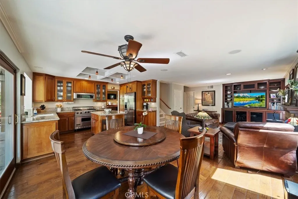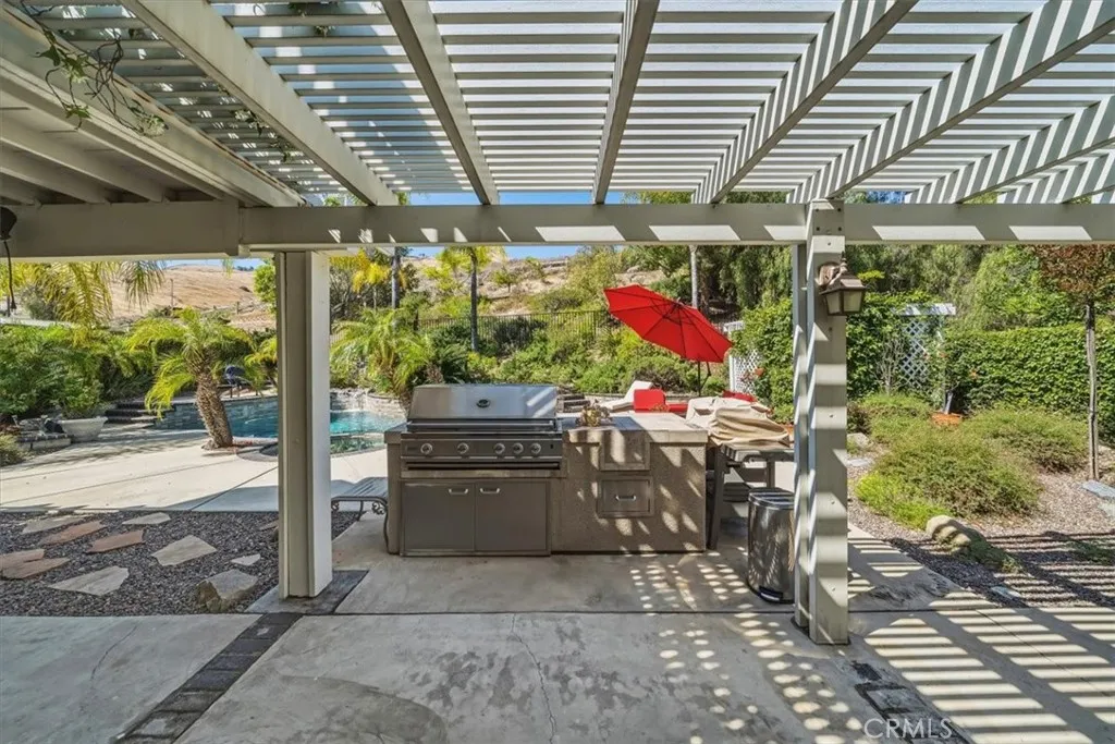16701 Lake Knoll Parkway, Located in the desirable Lake Hills community in the foothills above Riverside, this beautifully updated and maintained 4-bedroom, 2 ½-bath home offers wonderful views, numerous upgrades, and a backyard that feels like a private resort! Over 2200 square feet of gracious living! Huge lot! Plus, you get a paid-off electric generating solar system and lovingly cared-for water-wise landscaping to help save you money! From the moment you arrive, the home’s charm is undeniable. Enter through the front door to find soaring ceilings and an open formal living room and formal dining room. Perfect for entertaining! The inviting family room features a built-in bookcase with room for a flat-screen TV and a cozy fireplace with a beautiful mantel. Off the family room is a gourmet kitchen with rich wood cabinetry, granite countertops, a center island, upgraded appliances, including a Viking stove, and a picture window overlooking the backyard! There’s a spacious dining nook area with room for a table of six. An upgraded powder room and large laundry room complement the downstairs. Gleaming hardwood floors run throughout the downstairs! The seller is leaving the refrigerator, washer, and dryer, too! Walk up the stairs to the large primary suite with its vaulted ceiling, walk-in closet with organizers, and a bathroom to die for! The bathroom is highly upgraded with an oversized walk-in shower, a jacuzzi-style soaking tub, and a large vanity with a granite countertop. Off the primary suite is your own private patio deck, perfect for watching sunsets! There are 3 other wonderful bedrooms upstairs, plus a hall bath with its own tub/shower. Step outside to your own private oasis featuring a Waterfall feature, stunning black bottom pool and spa, built-in barbecue island, a showpiece outdoor fireplace, and a patio that runs across the entire back of the house. The upper yard offers additional space for a future sun deck with dramatic views! There is water-wise landscaping front and back, with automatic sprinklers. The 3-car garage has roll-up doors with an automatic opener. This home is a short distance away from the freeway, the Metrolink station, and LOTS of shopping. The property has a small HOA fee, no Mello-Roos, and the community offers plenty of family amenities! There is SO much more! This home perfectly combines comfort, efficiency, and outdoor beauty. An exceptional opportunity in one of Riverside’s most sought-after neighborhoods!!