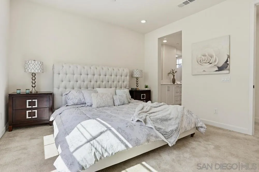 Experience the pinnacle of coastal-suburban living in the premier gated community of St. Cloud in Ocean Ranch. This rare, end-unit townhouse was built in 2021 and feels brand new, offering a sophisticated blend of modern design and functional luxury. The versatile floor plan features four spacious bedrooms and 3.5 bathrooms, highlighted by highly coveted dual master suites. The first floor offers a full bedroom and en-suite bath. Upstairs, the main living level is an entertainer’s dream, featuring an open-concept great room flooded with natural light from oversized windows. The chef-inspired kitchen boasts premium appliances, crisp cabinetry, and an expansive island that overlooks the dining and living areas. You’ll also find the primary sanctuary with a walk-in closet and spa-like bath. On the third level, two additional full bedrooms and a full bath are perfect for guests, a home office, or multi-generational living. Residents enjoy resort-style amenities: a sparkling pool, spa, fitness center, clubhouse, and BBQ areas. Located just minutes from Highway 76 and 78, you are a short drive from Oceanside’s iconic beaches, the Pier, and downtown’s vibrant dining scene. Modern, private, and turnkey—this is the home you’ve been waiting for!