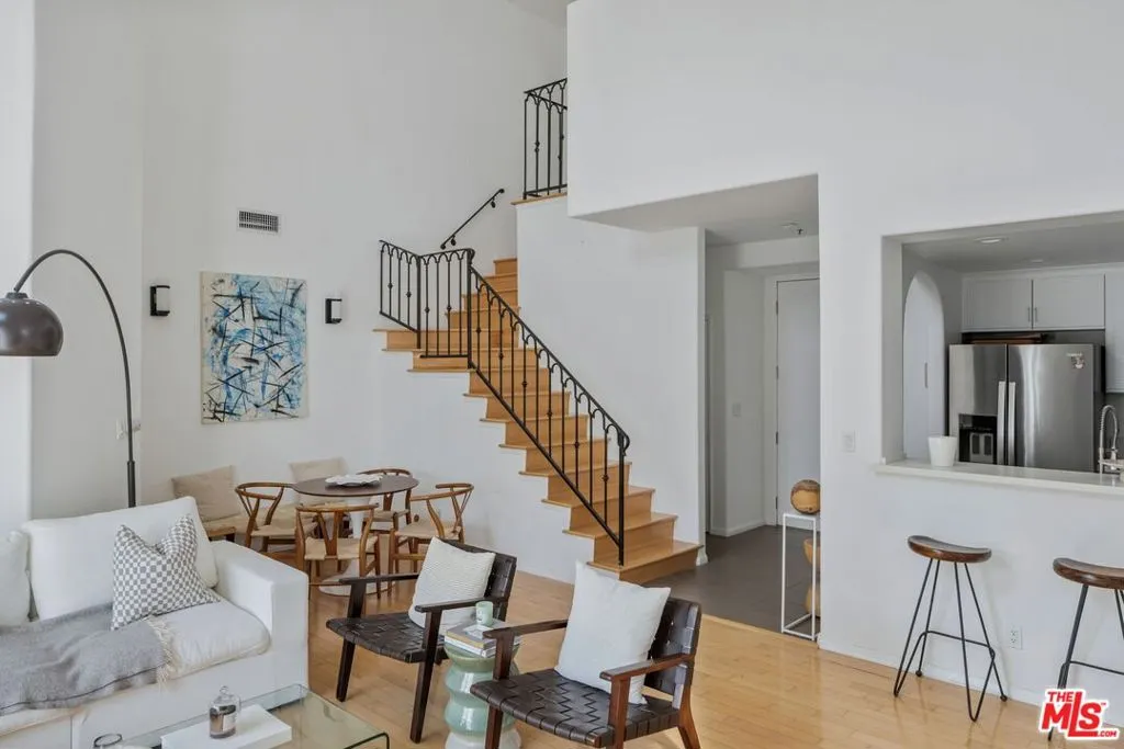GORGEOUS TWO-STORY TOP-FLOOR UNIT WITH A PRIVATE ROOFTOP DECK IN THE EXCLUSIVE 930 N. DOHENY DRIVE. Beautifully updated 2-bedroom, 2.5-bath residence with dramatic double-height ceilings, abundant natural light, and an open-concept floor plan ideal for modern living and entertaining. Bedrooms are thoughtfully separated for privacy; the primary suite features a walk-in closet and a spa-inspired bath with soaking tub, while the second bedroom functions well as a guest suite or secondary primary. Upstairs, a flexible loft space is perfect for a home office, den, or additional lounge area and opens to a spacious private rooftop deck. Full-service building amenities include 24-hour security, doorman, resort-style pool and spa, fitness center, sauna, steam room, conference facilities, EV charging, and gated side-by-side parking with dedicated storage. Additional highlights include in-unit laundry. Prime location just moments from premier dining, shopping, and entertainment in West Hollywood.