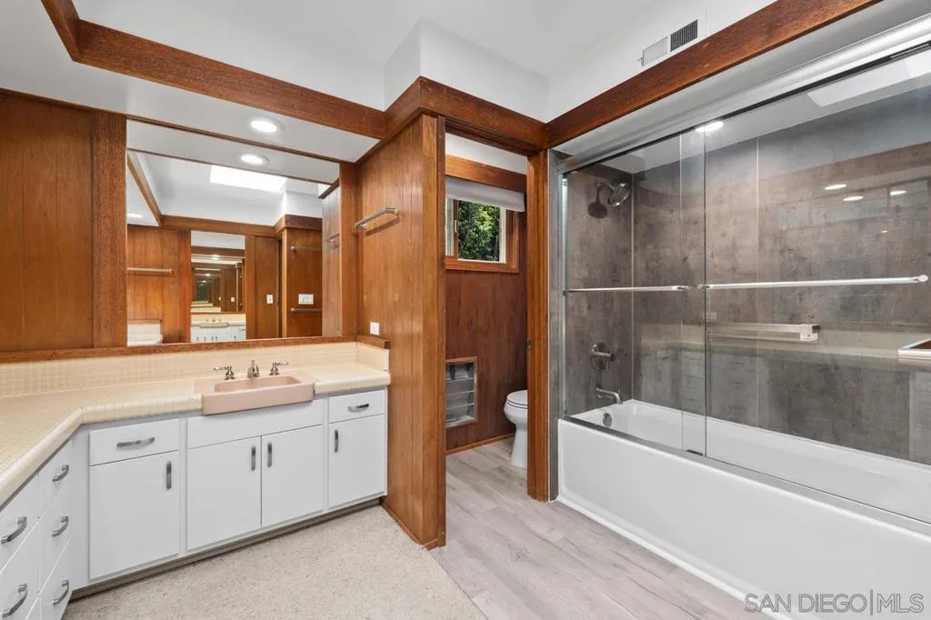 A Sanctuary on a private, wooded 15,200 sq. ft. lot in the coveted La Jolla Farms area, this single-level retreat captures partial ocean views and a rare sense of serenity. This expansive four-bedroom, three-bath home is filled with natural light, thanks to walls of windows that blur the line between indoors and out. The residence showcases a nostalgic Mid-Century Modern vibe—evoking the charm and character of the 1950s and 60s—while offering a canvas ready for your personal vision. At the heart of the property, a large swimming pool invites relaxed afternoons and effortless entertaining, all surrounded by mature landscaping that enhances privacy and tranquility. The generous floor plan provides flexibility for modern living, whether you choose to enjoy its retro appeal or reimagine it into a contemporary coastal masterpiece. Recent improvements include solar, updated A/C systems, water heater, and electrical panel (buyer to verify all details), offering a head start toward comfort and efficiency. A long private driveway leads to a spacious two-car garage with additional parking and room for hobbies, gardening, or creative space. Located on desirable Ellentown Road—a quiet residential street near University of California San Diego and the iconic Torrey Pines Gliderport—this home places you moments from world-class beaches, surfing, hiking trails, and the vibrant coastal lifestyle of La Jolla Shores. This is more than a home—it’s an opportunity to create something truly special in one of La Jolla’s most sought-after enclaves. Buyers are encouraged to verify all property data A SANCTUARY***** with partial Pacific Ocean views with this home, is nestled on a large private wooded lot around 15,200 sf in The Farms area of La Jolla. Expansive 4 bedroom 3 bath one level home, lots of windows, large swimming pool, with many opportunities. Home has newer Solar & roof (age unknown) , updated A/C's, hot water tank, power panel (ages unknown) . The home has a retro (Mid Century Modern) 1950's & 60's look and feel. Very private! The kitchen and baths have had been update but not sure of the year it was updated. Long driveway and large two car garage with extra parking, work area for crafts and gardening. There are so many opportunities to make this a dream home just the way you want it. This is considered The Farm area but Buyers need to verify all records and history. This SPECIAL Ellentown Road is a residential street in the La Jolla/Torrey Pines area, walking distance to UCSD's northern campus edges and Torrey Pines. It's not a major thoroughfare but appears on local maps in the vicinity of La Jolla Farms Road, Torrey Pines Scenic Drive, N Torrey Pines Road, and areas close to UCSD facilities like Torrey Pines Center South/North. Shopping, beaches, surfing, Glider port, La Jolla Shores close by are all apart of this package! ***The Sale will be AS IS! ****ADU possibilities with approvals & permits. (Buyer and agents to verify). SEE CC&R'S & VIRTUAL TOUR
