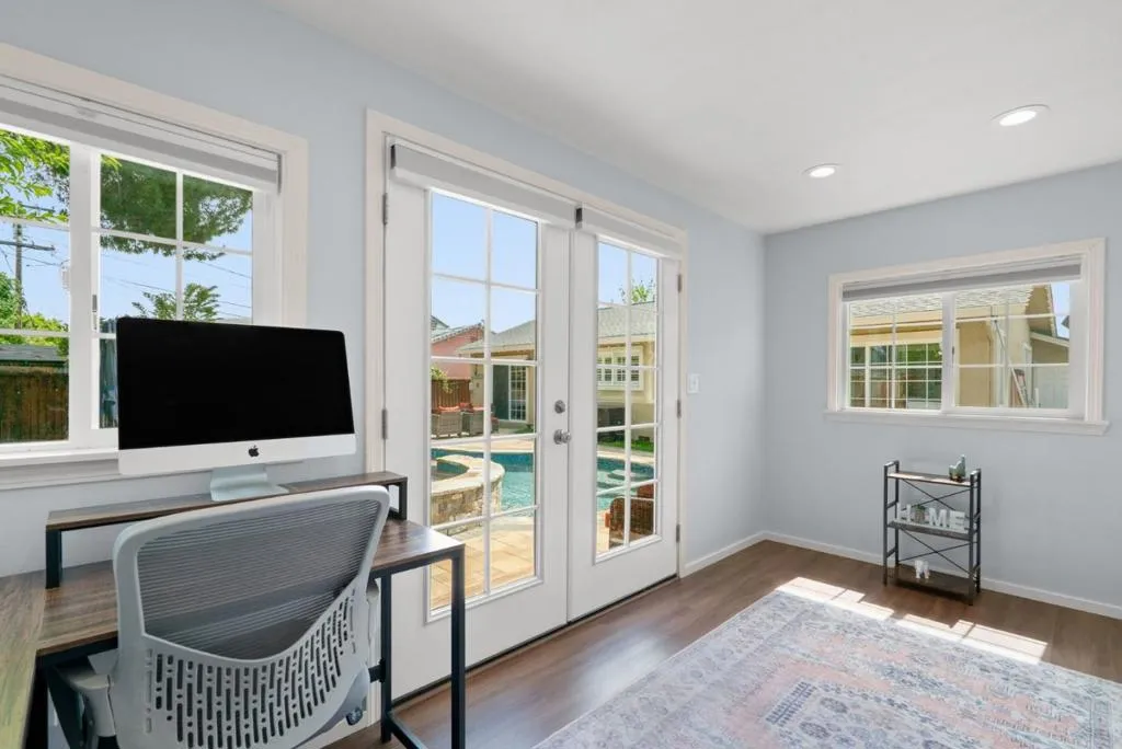 Fabulous Cambrian home loaded with extras! Move-in ready and appointed with 2 bonus rooms - perfect for multiple home office solutions or for guests! Enjoy brand new laminate flooring in the main living area that includes an elegant gas fireplace and sliding doors that open to an incredible backyard oasis! Outfitted with a custom designed pool and spa, this is the entertaining space you have longed for! Easy maintenance with elegant stone pavers and drought resistant lawn. An 8x15 fully finished studio sits to the side and includes full electrical, laminate flooring and a split A/C system for all of your comfort needs. Inside the main home, enjoy 3 ample sized bedrooms including a primary suite + an upgraded kitchen with stainless appliances and a charming dining area. The former garage area has been smartly converted to extra living space with gleaming wood floors and plenty of space to relax and unwind. A separate laundry area + a bonus room allow for even greater flexibility in how you can make use of this amazing space! Energy efficient with owned solar, a newer roof, a tankless water heater and an electric vehicle charger. Located in the heart of Cambrian with top Union schools, including Oster, Dartmouth and Leigh High School! This home has it all and is not to be missed!