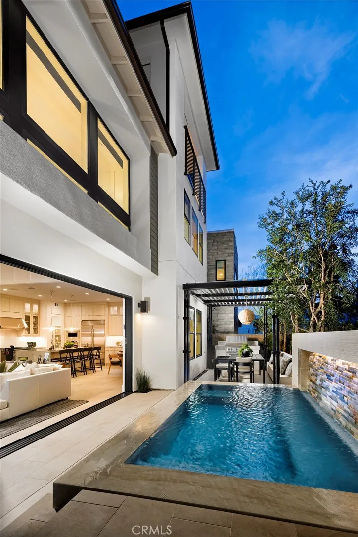 Welcome to Elevate at Great Park Neighborhoods, Irvine — a luxury Toll Brothers community. A rare opportunity to own a fully designed Toll Brothers model home—available for a Spring 2027 closing. This exceptional Avelina model home offers 3,411 sq. ft., 5 bedrooms, and 5 baths, showcasing bright, open concept living with elevated designer finishes throughout. Fully furnished and professionally designed, this model home is sold complete with all upgrades, custom furnishings, and landscaped backyard with grill and water feature. An expansive entry with 28’ vaulted ceiling sets the tone, complemented by 24”x48” beige Pietra Italia tile flooring throughout the main level. The chef’s kitchen features Wolf® & Sub-Zero® appliances, walk-in pantry, White Lux quartzite countertops, and a statement waterfall island. The spa-inspired primary suite includes a custom walk-in closet and a luxurious bath with a floor-to-ceiling polished marble tile shower. Designed for flexibility and entertaining, the home offers a third-floor loft with dry bar, private deck with fireplace, bedroom, and full bath—ideal as a retreat or guest suite. Paid-off solar adds lasting value. Located near top-rated schools including Cadence Park School (K–8) and Portola High School, with convenient access to Great Park amenities, trails, and shopping.