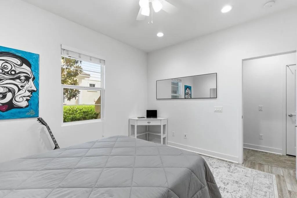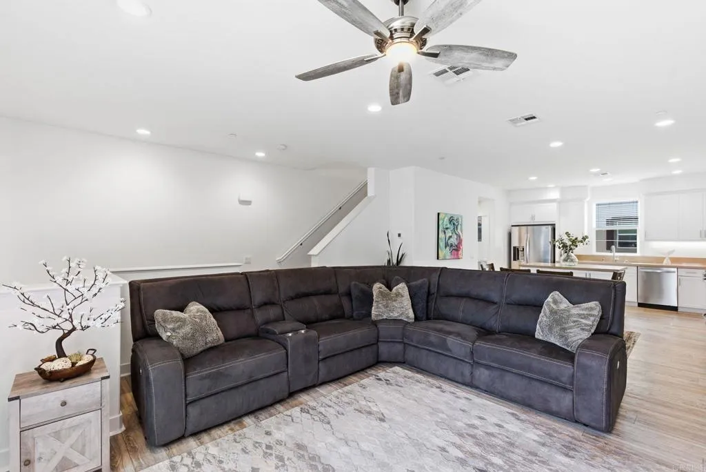 Modern 3 bedroom, 3.5 bathroom tri-level home for lease in the gated St. Cloud community at Ivey Ranch / Rancho Del Oro. Built in 2021, this well-maintained home offers approximately 1,724 sq ft with a functional and flexible layout. The first floor includes a private bedroom and full bathroom with direct access to the attached 2-car garage, ideal for guests, roommates, or a home office. The second floor features the main living space with an open kitchen, dining area, living room, private balcony, laundry room, and a half bath. Upstairs, both bedrooms are en-suite, including a spacious primary suite with a walk-in closet. The home includes upgraded vinyl flooring, recessed lighting throughout, and in-unit laundry. Located in a gated community with access to pool, spa, fitness center, clubhouse, playground, and maintained grounds. Conveniently located near Guajome Regional Park, Mission San Luis Rey, shopping, dining, and with easy access to CA-76 and I-5. Approximately 15–20 minutes to the beach. Zoned for Ivey Ranch Elementary, Martin Luther King Jr. Middle School, and El Camino High School, with nearby private schools and colleges including MiraCosta College, Palomar College, and Cal State San Marcos.