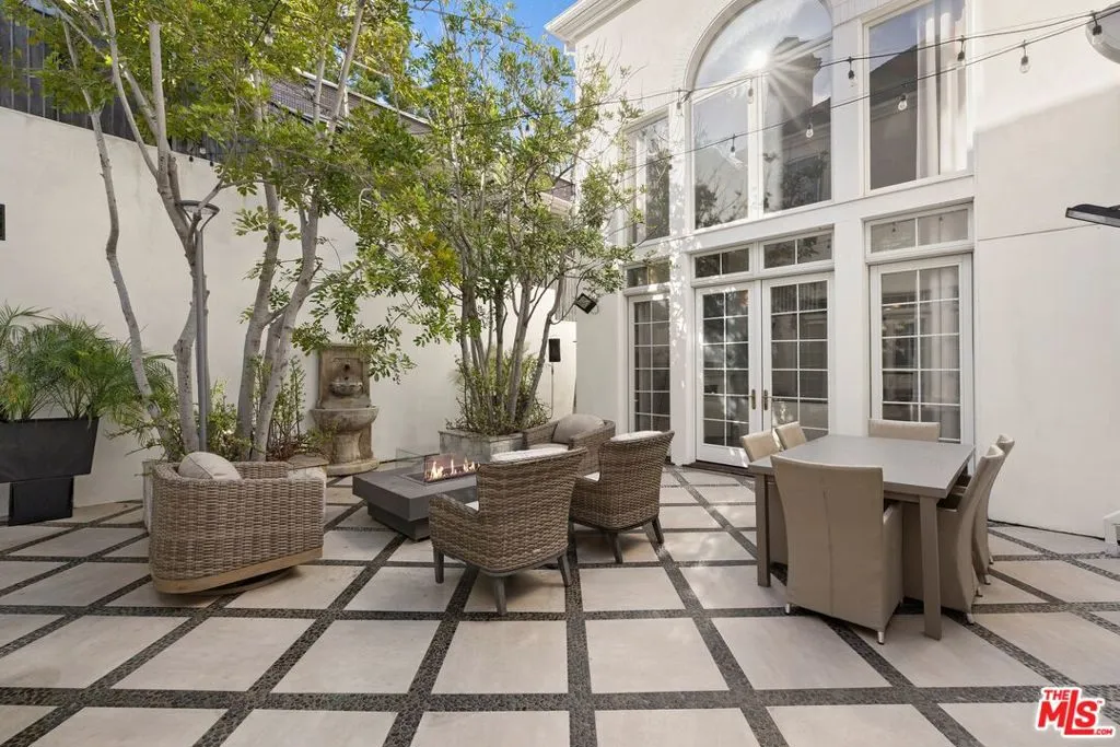 Rare offering in the coveted enclave of Little Holmby, this exceptional gated estate was masterfully reimagined in 2019, showcasing refined craftsmanship, bespoke finishes, and meticulous attention to detail throughout. A striking double-height entry sets the stage, leading to an elegant formal living room filled with natural light, where French doors open to a charming courtyard ideal for al fresco entertaining. Designed for both grand-scale gatherings and comfortable everyday living, the thoughtfully curated floor plan features a distinguished private office, a well-appointed guest suite with en-suite bath, powder room, impressive formal dining room, and an inviting family room anchored by a fireplace. The gourmet chef's kitchen is complemented by a sunny breakfast area and custom built-in bar, all flowing seamlessly through French doors to the private backyard retreat with a sparkling pool, spa, and generous entertaining areas. The upper level offers additional guest bedrooms along with a luxurious primary suite featuring a spacious bath and expansive walk-in closet. Additional highlights include a comprehensive security system, substantial three-car garage, and ample additional parking within the gated motor court. Located within the highly regarded Warner Avenue Elementary School district, this turnkey residence presents a rare opportunity to own a beautifully updated home in one of Los Angeles' most prestigious neighborhoods.