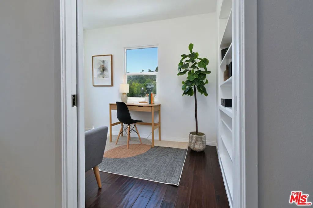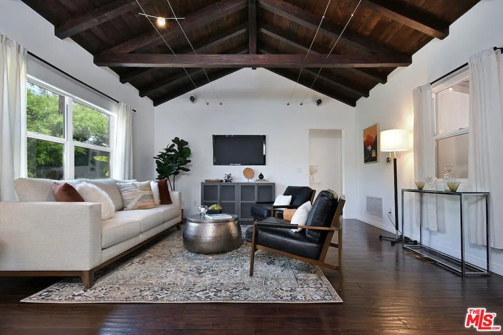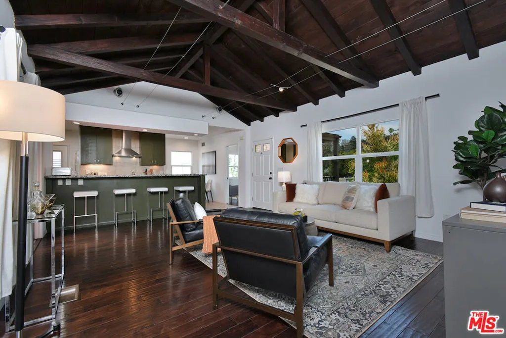 Located in the heart of Silver Lake, 1718 N Occidental Blvd is a super charming 1936 bungalow that perfectly blends vintage character with modern functionality. Set up off the street for enhanced privacy, the home opens into a stunning great room featuring high open-beamed ceilings, clean white walls, and engineered wood flooring. The interior boasts an updated, spacious kitchen with a breakfast bar and an adjacent flex room perfectly suited for a professional home office or a guest daybed. Double French doors lead from the living space to a covered porch and a flat, grassy backyard complete with turf and vegetable gardens, all while offering serene treetop and mountain views. The property's hillside location provides an extraordinary level of access to the best of Silver Lake. It is situated just steps from the Silver Lake Reservoir and Meadows and the local dog park, making it an ideal spot for outdoor enthusiasts. Residents are also just down the street from La Mill Coffee and the premier shops and restaurants on Sunset Boulevard. This home offers a private, serene retreat in one of the neighborhood's most desirable pockets, balancing 1930s traditional style with a prime urban lifestyle and at a great price!