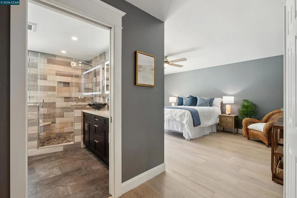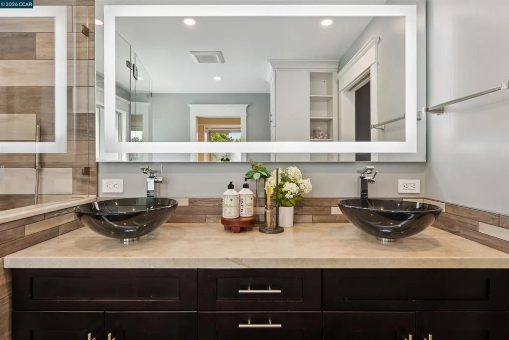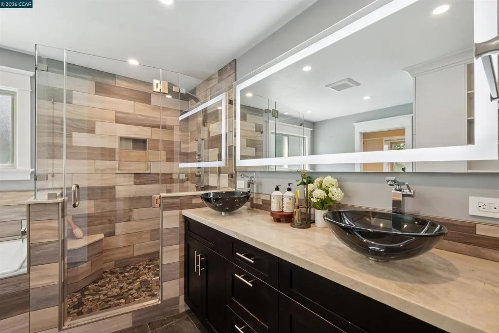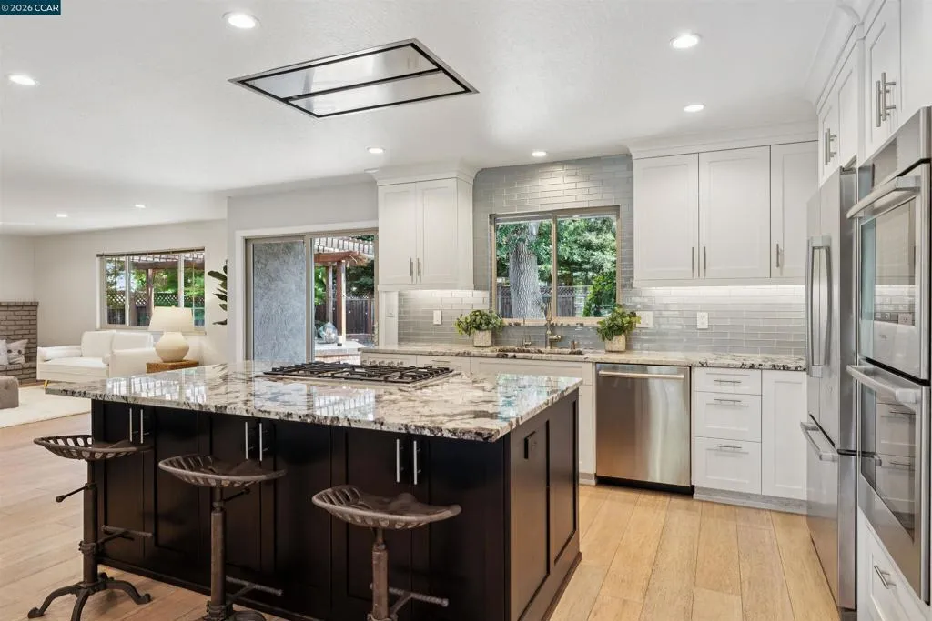 A lifestyle of luxury awaits in this breathtaking SINGLE LEVEL 4-bedroom, 2.5-bath turnkey dream home extensively updated in a prime location with elegantly designed living spaces, huge flat 0.27 acre lot, and more than $200,000 of upgrades in the past 2 years alone. Entertain guests in the large living room secluded behind a rolling barn door, or throw an expansive party utilizing the fabulous outdoor kitchen and inside open-concept Chef’s dream kitchen. The incredible kitchen features sleek modern lines, Bosch appliances, recessed luxe vent hood, wet bar, and oversized dine-in island. The fabulous Primary Suite offers a serene retreat with beautiful spa-inspired bath, soaking tub, double vanity, rainfall panel shower, walk-in closet, and outdoor access. Additional bedrooms and two living rooms add versatility and flexible living. The professionally landscaped backyard is designed for both relaxation and parties with multiple seating areas, mature trees, spectacular outdoor kitchen, gas firepit, sparkling pool with Solar heat & electric retractable pool cover, plus a pergola sheltered Hot Tub Ready corner along with enormous paved sideyard for possible RV, Boat, or Sport Court use. Conveniently located only a short distance to BART, shopping, downtown Walnut Creek, schools, restaurants, parks, trails and so much more. DON’T MISS see at OH Tu. 4/28 10am-1pm, Fri 5/1 5pm-7pm, & Sun 5/3 1pm-4:30pm