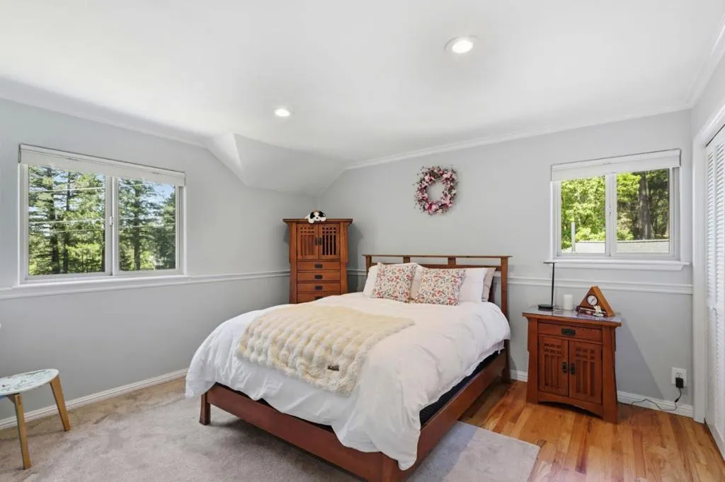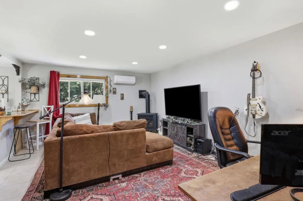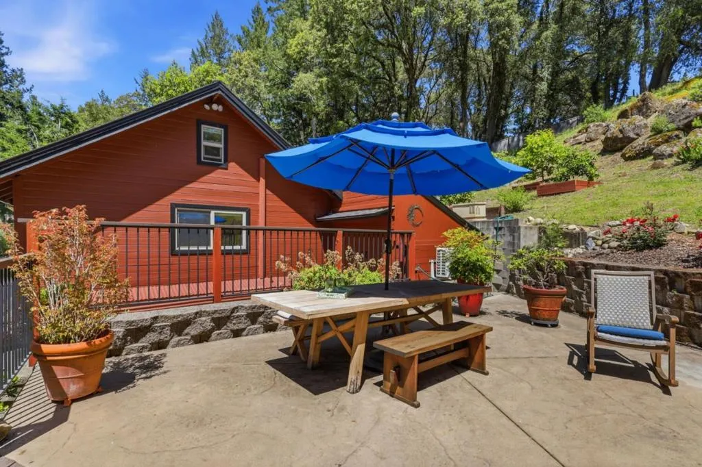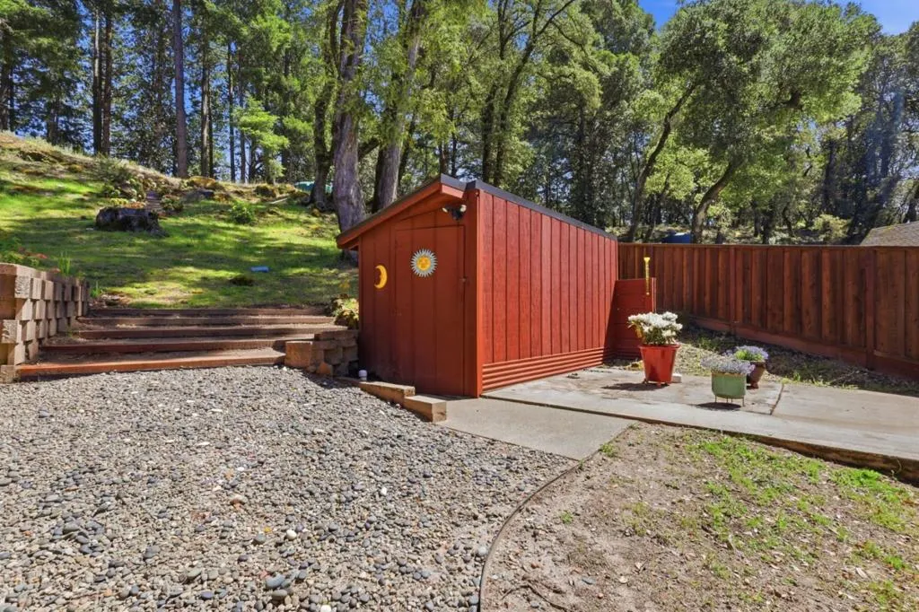Enjoy contemporary comfort and serene mountain living in this inviting Bonny Doon home. The bright living room features soaring 20-ft ceilings, a striking fireplace, hardwood floors, and expansive windows that fill the space with natural light. The kitchen offers granite countertops, skylights, ample cabinetry, and stainless steel appliances, flowing into an elegant dining area with built-in seating and framed hardwood flooring. Indoor-outdoor living shines with a spacious deck and patio ideal for relaxing or entertaining. The primary suite includes a private balcony with wooded views and a decadent primary bath with a walk-in shower and a radiant headed tile floor. A converted garage provides a flexible 1BR/1BA guest space. Additional highlights include a renovated lower-level bathroom, therapy spa, and a fully fenced yard suitable for pets. Fire-hardened features and a Firewise community enhance safety. Conveniently located near Bonny Doon Elementary, beaches, wineries, and Hwy 1, with easy access to UCSC. Surrounded by natural beauty, this property offers a peaceful setting with space to garden, unwind, or enjoy outdoor activities, making it a versatile retreat for a variety of lifestyles.