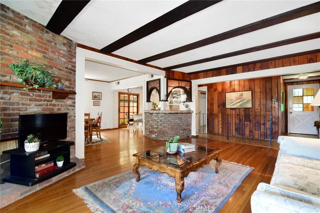 A home that can retain its original owners for nearly seven decades, affording them the opportunity to happily raise four children, must hold something very special indeed. Come harness all its’ positive energy to create a lifetime of happiness for you. Situated on a desirable quiet cul-de-sac where those same four children relished countless hours of frolic, cementing cherished childhood memories. Inside this warm wonderful abode, discover hardwood flooring throughout and a spacious living room with beautiful wood beam ceilings, classic brick fireplace and unique bar. An adjacent dining area also offers a charming brick fireplace. Large upper-level primary suite features a walk-in closet and private bathroom. Three bedrooms and two additional baths add to the appeal. Outside enjoy covered dining/entertaining and grassy area. Newer roof, newer water heater plus an extra-large driveway further enhance. Live in just the way it is or remodel to your hearts’ desire. In addition, your mere moments to Cedars/Tarzana medical center and just a short stroll to the Blvd. As an added bonus, all schools for this home are sought-after charter schools. Don’t miss!