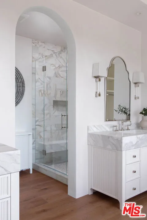 Gorgeous new construction in Montecito's sought-after MUS district, moments to the Montecito Club, walking trails, and both Upper and Lower Villages! Designed with clean lines and timeless finishes, the residence offers soaring ceilings, plaster walls, and wide-plank French oak floors. The flexible floor plan has four upstairs en suite bedrooms, including a sumptuous primary with an ocean-view terrace, as well as a main floor en suite bedroom. Living, dining, and kitchen spaces are distinct yet connected and open seamlessly to terraces, loggias, and a sunlit pool and spa. Three laundry areas add everyday convenience and an oversized ~1,500 sf ADU provides exceptional flexibility. Grounds include outdoor kitchen, dining areas, bocce court, fire pit, putting green, gardens, and citrus trees.