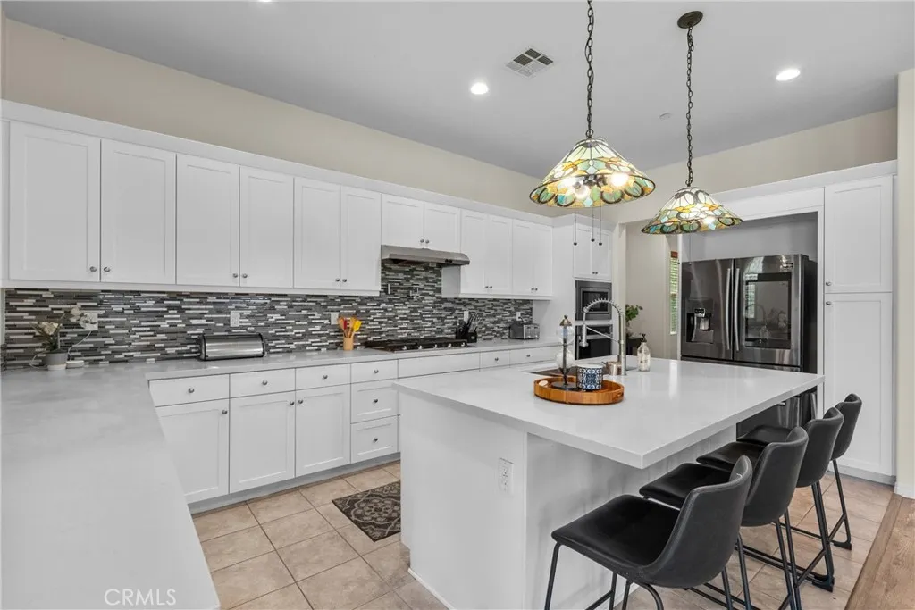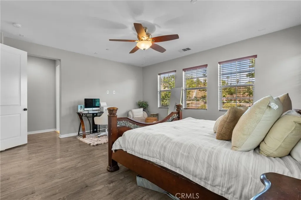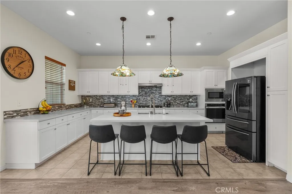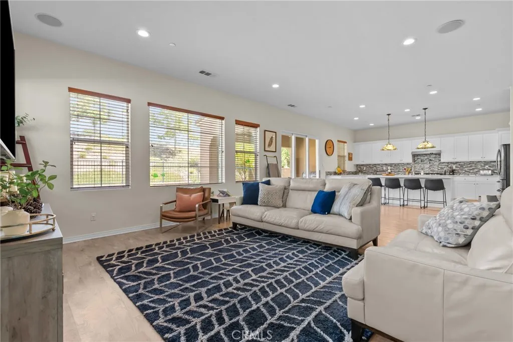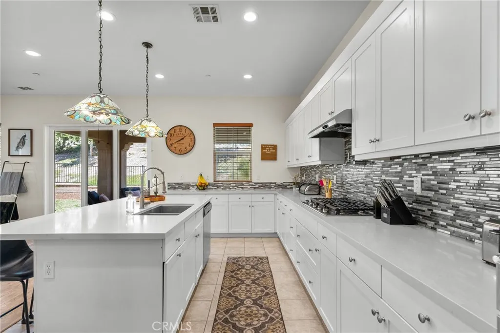 Welcome to a home that offers the space, comfort, and inviting atmosphere so many buyers are looking for. With 5 bedrooms, 3.5 bathrooms, 3,589 square feet, and a three-car garage, this newer home in a gated community is designed for both everyday living and special moments shared with others. From the moment you step inside, the layout feels warm, open, and functional. The main level includes a full bedroom and full bathroom downstairs, offering flexibility and convenience, along with a separate half bath for guests. The spacious dining room is ready for everything from casual weeknight dinners to holiday gatherings, while the huge walk-in pantry adds the kind of storage that makes daily life easier. At the heart of the home, the kitchen opens beautifully to the family room, creating a welcoming central space where everyone can feel connected. Large windows bring in natural light and frame views of the backyard and the lush hillside beyond. The trifold sliding glass door opens to the covered patio, making it easy to enjoy morning coffee outside, quiet evenings, or relaxed get-togethers. Upstairs, the enormous loft offers a private and versatile space that can be used for a second living area, media room, office, or whatever suits your lifestyle best. The primary suite feels like a retreat of its own, featuring a huge walk-in closet, a soaking tub, an oversized shower, and separate dual vanities designed for both comfort and convenience. Four bedrooms upstairs provide plenty of room to spread out. Beyond the home itself, the gated community offers amenities that add to the lifestyle, including a gorgeous clubhouse, pool, spa, sports courts, dog park, and walking trails. With modern features, generous space, and a setting that feels both peaceful and connected, this is a home that truly invites you to settle in and enjoy.