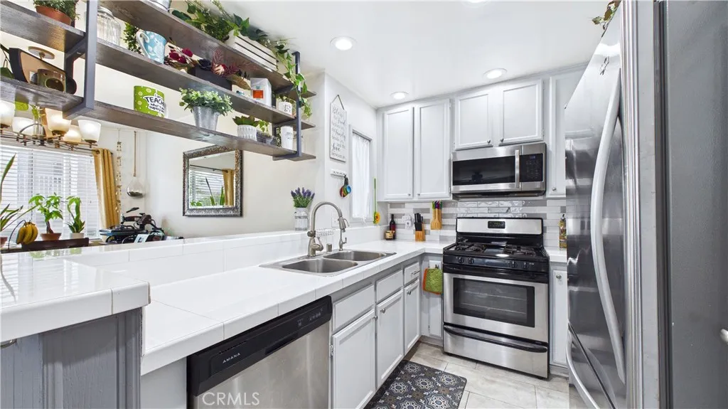 Located within a well kept gated community, this tastefully updated, two bedroom home makes exceptional use of every square foot of living space on offer. Stepping inside, you are greeted by a spacious living and dining area adjacent to the tastefully updated kitchen. The entire living area enjoys a flood of natural light afforded by the end-unit location, amplifying the space beautifully. The unit's location within the community means the pool and spa are literal steps from the front door, and the property includes its own garage space. With the 210 freeway mere moments away, getting around town - whether for work or play - is always a breeze!